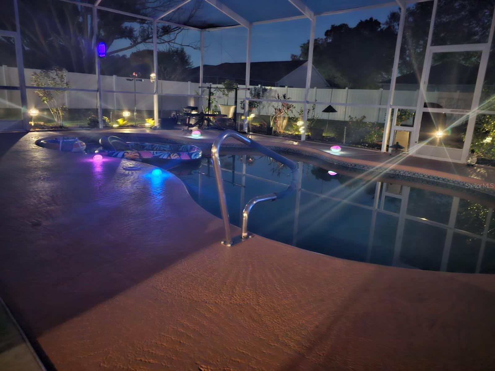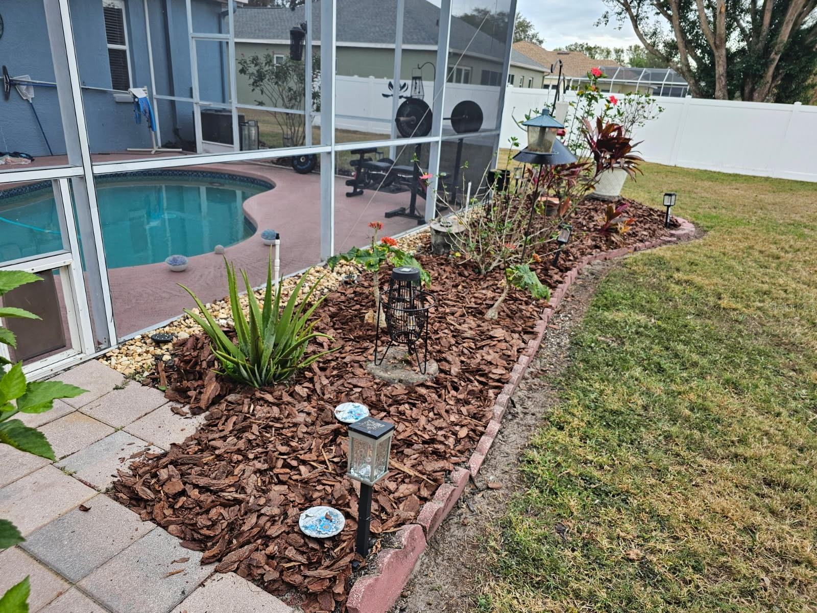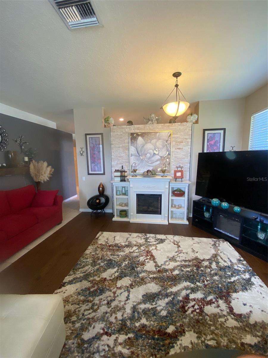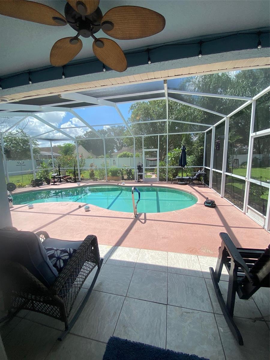 Welcome to this well-maintained 3-bedroom, 2-bath pool home with a 2-car garage in the highly desirable Hunters Ridge community. Situated on a peaceful, tree-lined street, this home features an open, split-bedroom floor plan with travertine flooring in the main living area, a built-in electric fireplace, and a versatile dining room currently used as a cozy family space. The kitchen offers stainless steel appliances (2 years old), an eat-in bar, and flows nicely into the living area—perfect for entertaining or everyday comfort. Step outside to your private, screened-in pool and lanai overlooking a large backyard with mature landscaping—ideal for gatherings, grilling, or simply relaxing. Major updates provide peace of mind, including a newer roof (2018), updated drainfield (2021), and a 2-year-old A/C system. The spacious primary suite includes dual sinks and a walk-in shower, making it a true retreat at the end of the day. Located just minutes from Lake Gibson schools, I-4, shopping, dining, medical facilities, and golf courses, this home offers the perfect blend of convenience and community. Don’t miss your chance to live in one of Lakeland’s most welcoming neighborhoods—schedule your private showing today! All information is deemed to be accurate but is not guaranteed.