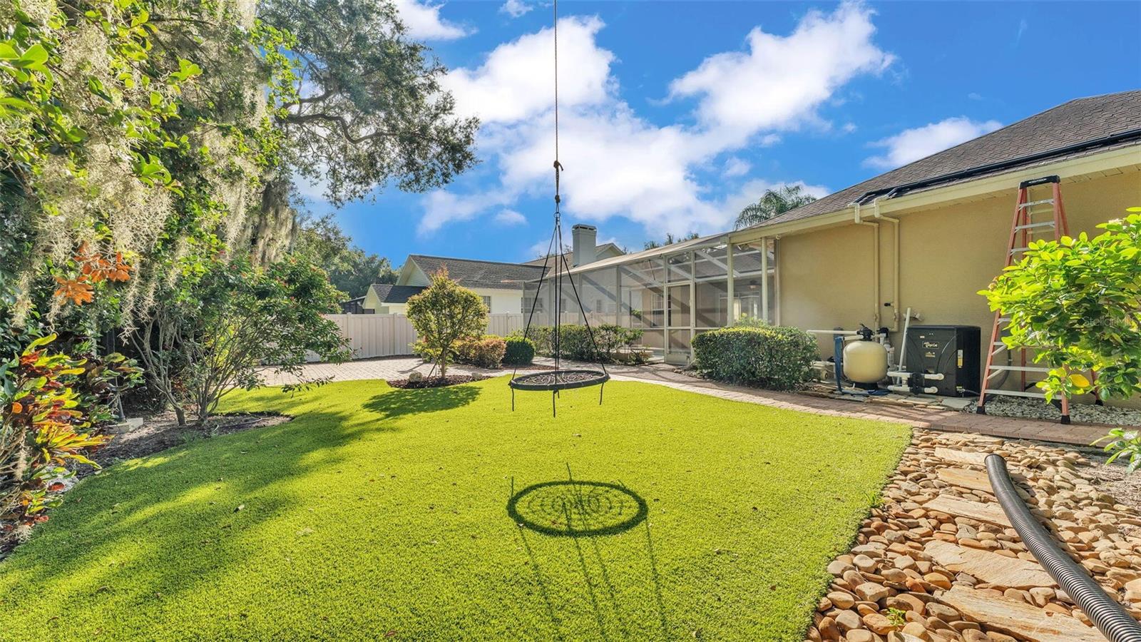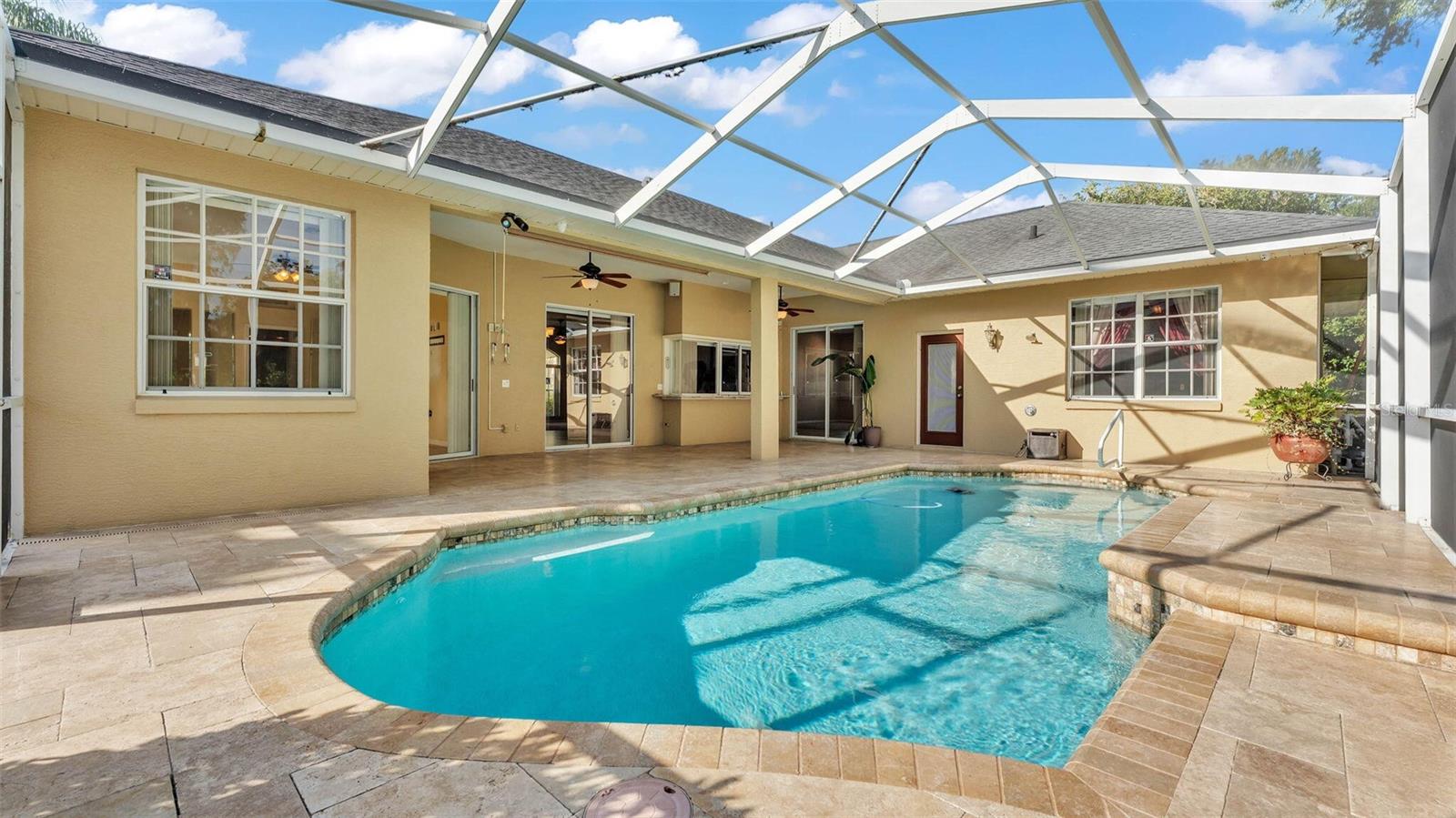 Welcome to this charming Ernie Home located at 1455 Royal Forest Loop. This property features a spacious layout with 3 bedrooms and 2 bathrooms, providing ample living space. Enjoy the open-concept design with a bright kitchen that flows into the living and dining areas, appropriate for entertaining. The backyard offers a private retreat with lush landscaping. Conveniently situated in a great neighborhood, this home provides easy access to local amenities and major roadways. Also please note the Upgrades and newly renovated items. New remodel 2018 -New Generac whole house generator with (2) (full) 120-gallon propane tanks Generator comes with transferable warranty -New Remote retractable track screens on front door and garage -New paint outside -New Paint Inside -New roof -New hot water heater -New Trane variable speed Tri Comfort18 seer air conditioner with Hyperion insulated air handler, Digital color WI Fi touchscreen thermostat with 10-year parts warranty. -New Cabinets (kitchen, both baths, and laundry -New Floor tile -New Carpet -New Pool finish -New Pool cage screen -New Travertine Lani pavers w/ 3" Lani drain vents -New Solar pool heater -New Electric pool heater, -Water discharge system for pool drainage -New shower glass in both baths -New backyard artificial grass (still looks new) -New Fiberglass garage man door -New Garage door opener -Extra storage garage ceiling -New Schlage lock on garage man door, -Ring doorbell -New Security cams along full parameter of house. -New Pavers-circular drive, front door entrance, driveway, Back yard walkway, and 20x20 outside patio -Extra base material added under pavers for heavy loaded vehicles -New Culligan Water Softener with outside soft water spigot for car washing etc. -Mature hedge landscaping for added privacy -New 6' vinyl privacy fence -Fire-pit with stone walkway