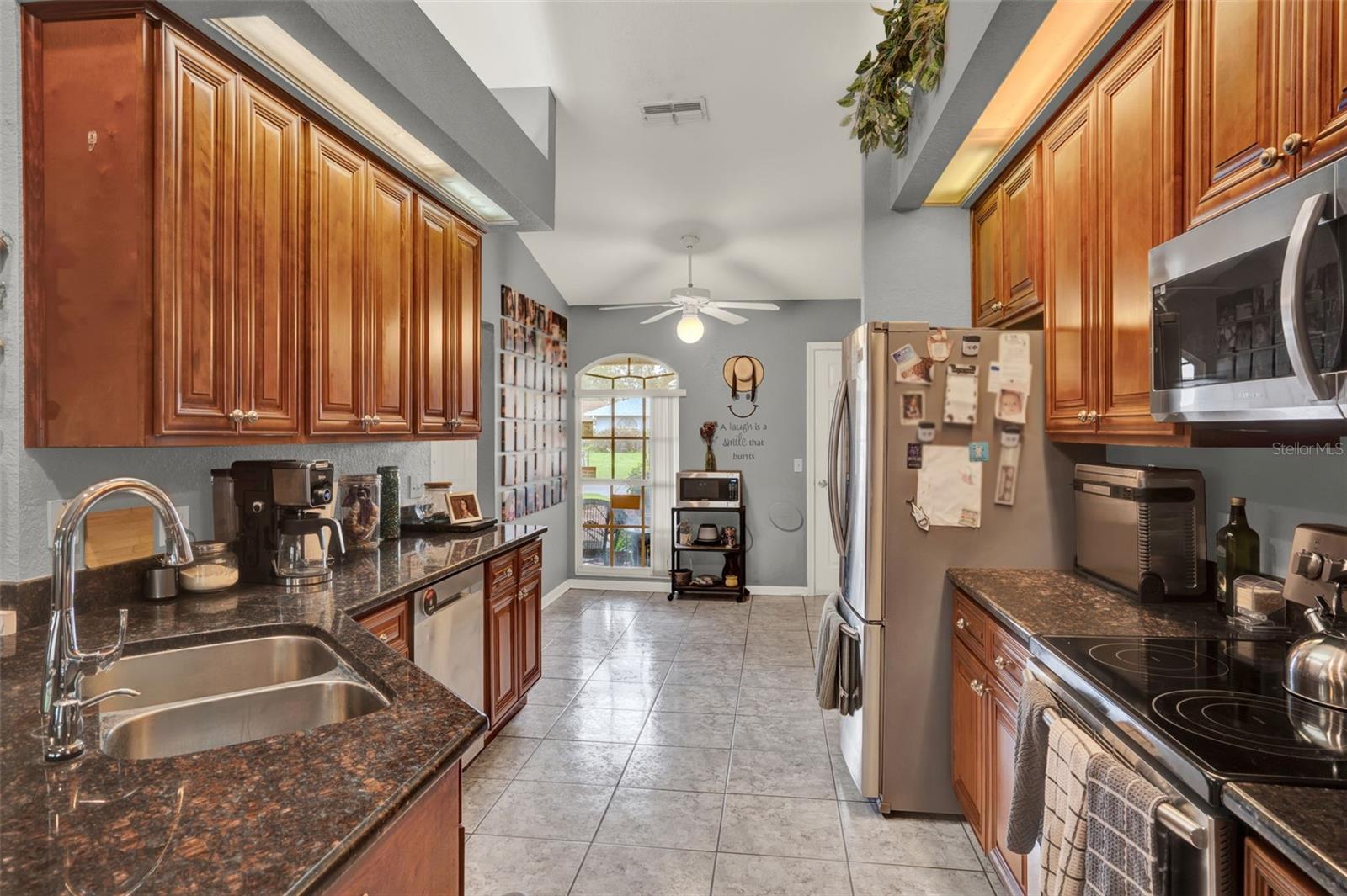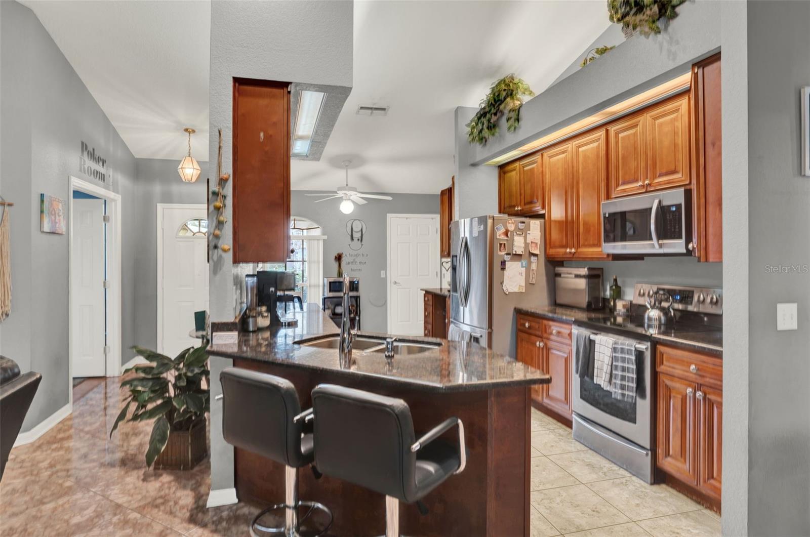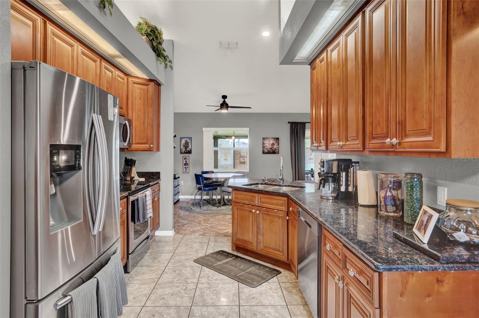 Check out this beautiful, well-maintained home, perfectly tucked away in a peaceful country setting, yet conveniently located to Lakeland and the surrounding area. With easy access to I-4, you're just a short drive from both Tampa and Orlando, making it an ideal location for commuters or anyone seeking the best of both city and country living. This spacious 4 bedroom, 2 bath home offers a thoughtful layout and numerous upgrades throughout. The large eat-in kitchen is a standout feature, complete with solid wood 42-inch upper cabinets, granite countertops with a breakfast bar, stainless steel appliances, an extra pantry, and a built-in desk area. The kitchen flows seamlessly into a cozy dinette space and the great room, creating a perfect setting for everyday living and entertaining. The master suite is designed for comfort and functionality, featuring two walk-in closets, dual sinks, a garden tub, and a separate shower. Beautiful tile and laminate flooring run throughout the home, adding style and ease of maintenance. An enclosed, air-conditioned rear porch adds flexible living space and while currently set up as a home gym, it also offers a great place to relax while enjoying views of the large fenced backyard, which backs up to a tranquil reserve. The spacious garage provides ample storage, and the extended driveway offers plenty of parking for multiple vehicles. Sitting on almost half an acre, this property offers generous space between homes and a quiet, private atmosphere. With a three-year-old roof, brand new water heater and AC, low HOA fees, and an assumable mortgage available, this home is a must-see. Schedule your showing today and experience everything this wonderful property has to offer.