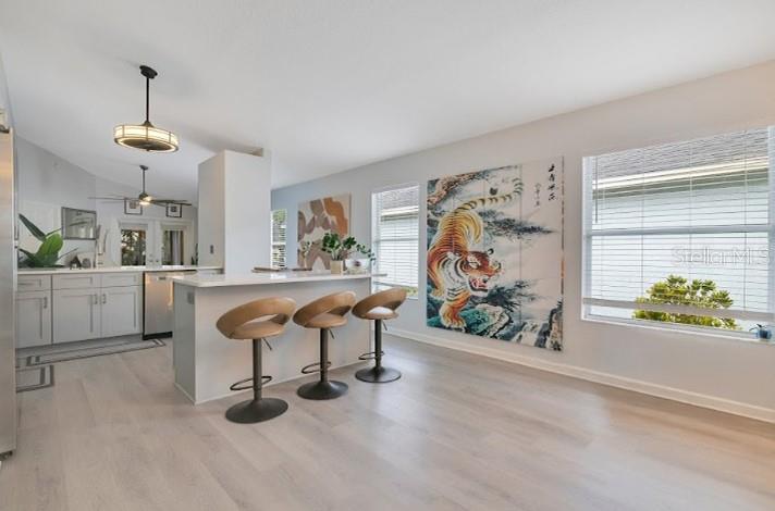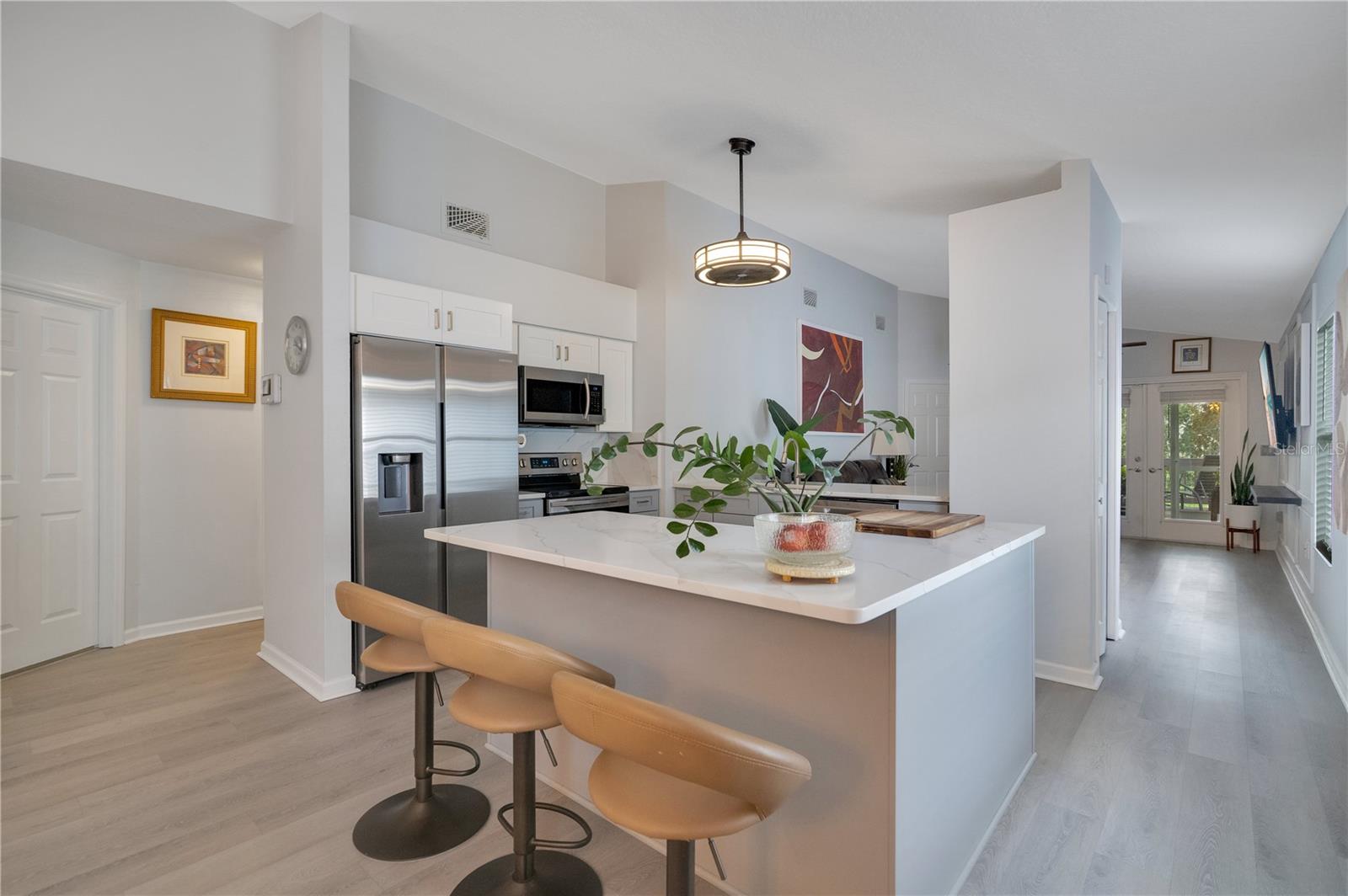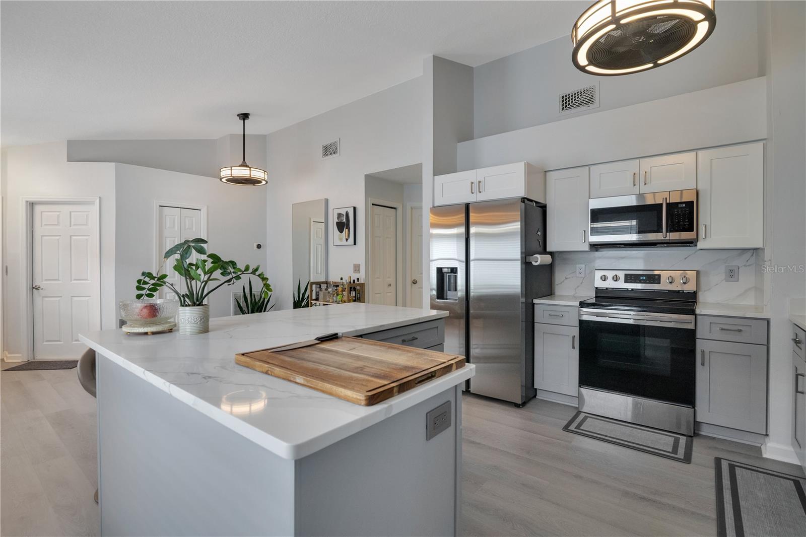 Exceptional Lakeview 3-Bed, 2-Bath Home in Waterview! Includes a $3,149 lender credit towards closing costs or interest rate buy down! Enjoy tranquil lake views from your own backyard oasis with a private deck surrounded by mature trees and lush landscaping—perfect for morning coffee, gatherings, or sunset relaxation. Inside, this beautifully updated home features a bright open floor plan with natural light, modern finishes, and inviting living spaces. The remodeled 2024 kitchen boasts new quartz countertops, custom cabinetry with pull-out shelving, soft-close doors, a Lazy Susan, stainless steel appliances, and a spacious island ideal for entertaining. New 2024 flooring flows through the living, dining, and kitchen areas, enhancing the home’s modern appeal. The primary suite provides comfort and privacy, while additional bedrooms give flexibility for family, guests, or office space. The Waterview community enhances your lifestyle with lawn service, pool, clubhouse, sports court, and well-maintained common areas.