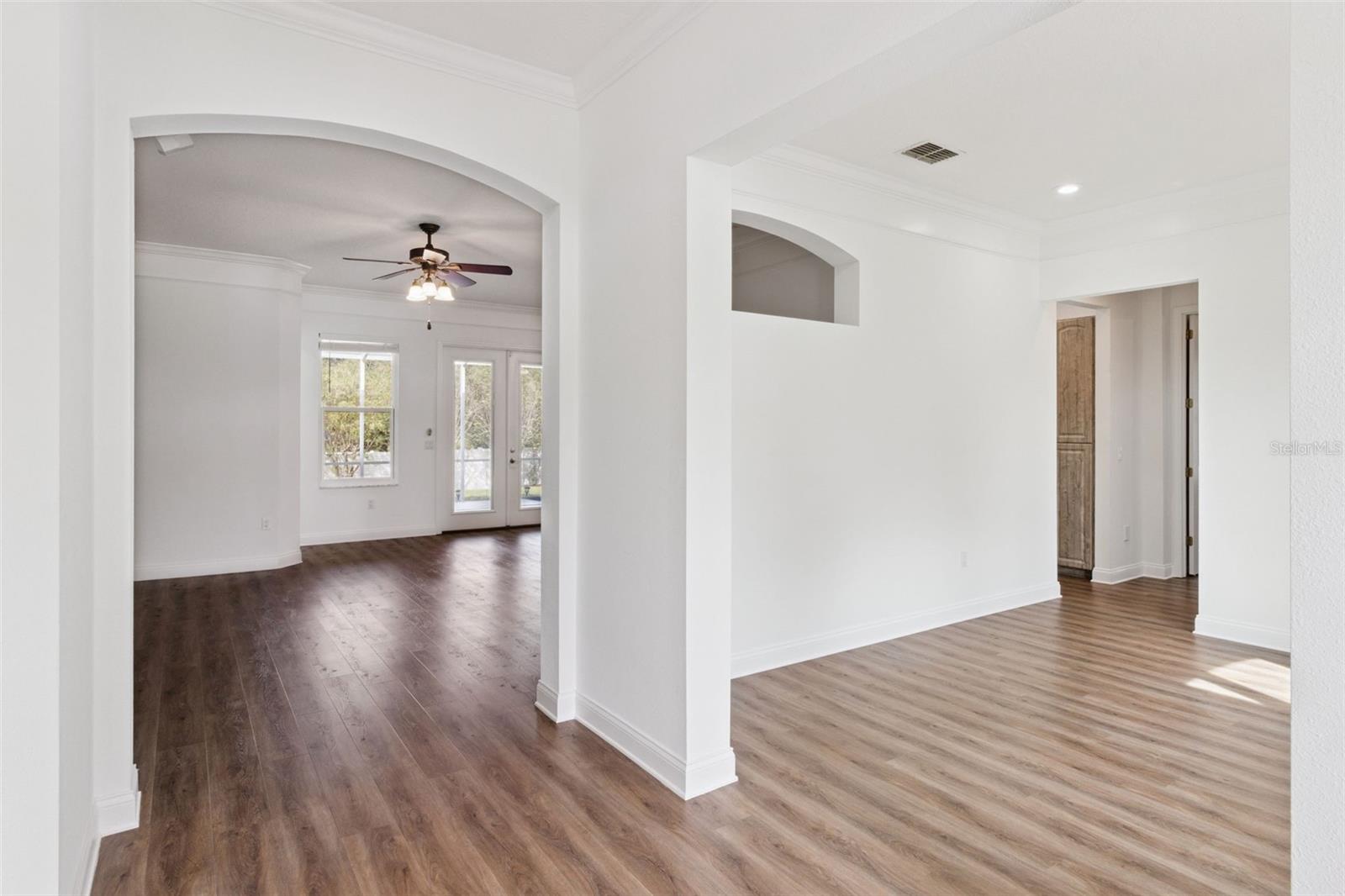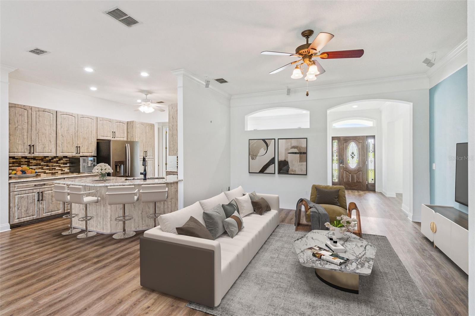 One or more photo(s) has been virtually staged. Discover the perfect blend of privacy, luxury, and community at 421 Osprey Landing Drive, a South Lakeland gem located at the end of a tranquil cul-de-sac in the highly sought after, guard-gated Eaglebrooke Golf & Country Club community. This freshly painted, spacious 4-bedroom, 2-bath home features 2,276 sq. ft. of living space with elegant luxury vinyl flooring throughout, designed for both comfort and style. Step outside to an immaculate screened-in lanai—ideal for year-round entertaining—and a rare, fully fenced backyard with plenty of room to add your own private pool, a sought-after amenity in Eaglebrooke. Residents enjoy a wealth of top-tier amenities, including a championship golf course designed by Ron Garl, tennis courts, a newly renovated Junior Olympic-size swimming pool, scenic walking trails, and a thriving social calendar hosted at the clubhouse. The community is surrounded by mature oak trees and sparkling lakes, creating a peaceful, family-friendly atmosphere with 24/7 guarded security. Local shops, dining at the on-site restaurant or nearby Lakeside Village, and convenient access to major highways and top-rated schools ensure an unbeatable South Lakeland lifestyle. Live moments away from parks, outdoor recreation, and some of Central Florida’s best entertainment—making Eaglebrooke “Lakeland’s best kept secret” for discerning homeowners seeking comfort and community.