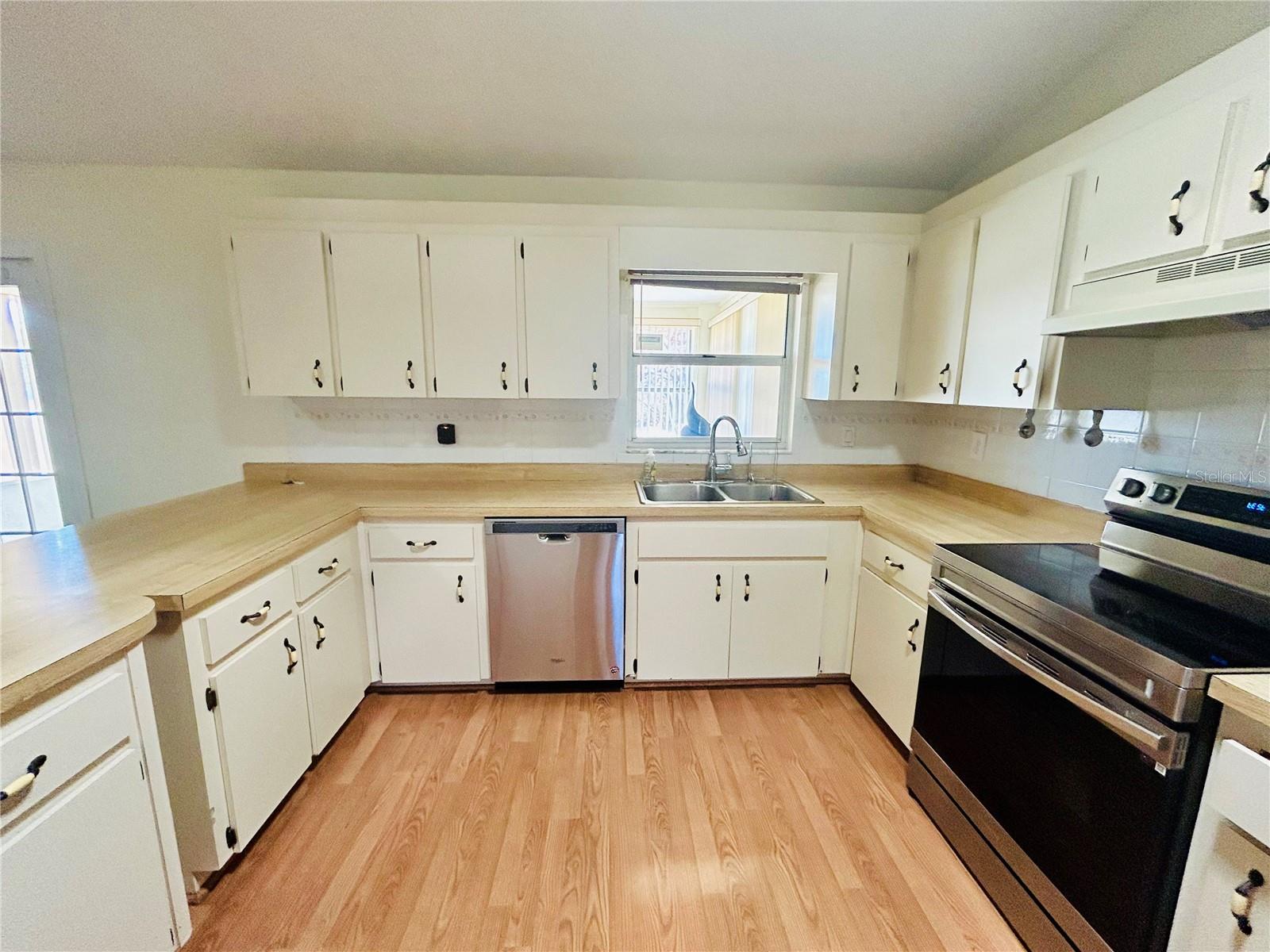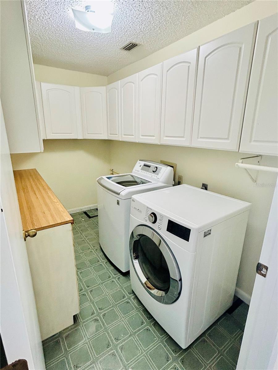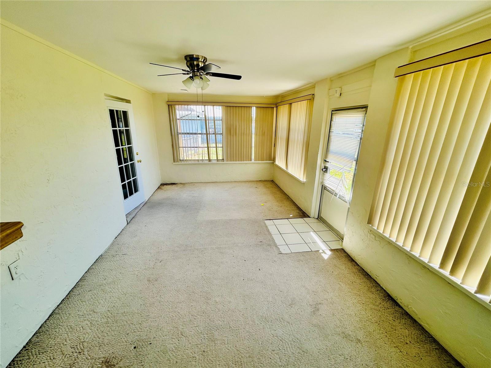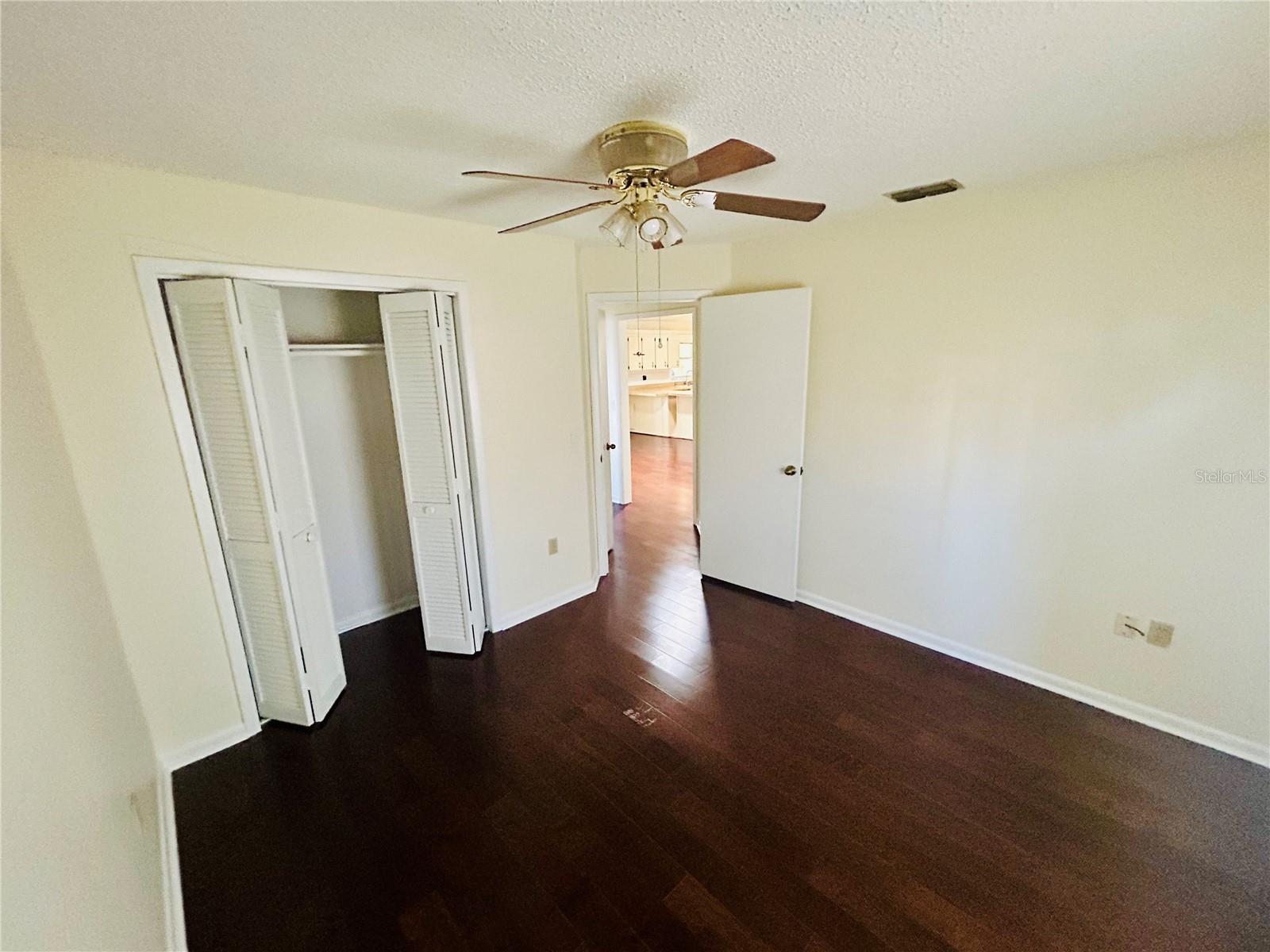 Welcome home! This home is move-in ready with no HOA. It features 3 spacious bedrooms, 2 bathrooms in a split floorplan, open kitchen/great room concept with vaulted ceilings, private dining, private office, interior laundry room and an enclosed Florida room with AC. There are 2 skylights in the kitchen/great room which provide much natural lighting throughout the main area of the home. The kitchen is equipped with all stainless steel appliances, which are included with the home. There is also an oversized kitchen island on wheels with storage which allows for different formations in the space. The great room is adorned with a large stone fireplace. The private dining room is elevated with chair-rails placed along all of the walls and a skylight to bring in natural lighting. The primary bedroom is spacious and includes a built-in vanity with sink along with a large walk-in closet that has built-in shelves. The private office faces the front of the home and is easily accessible to the main entrance. You can enjoy time in the carpeted Florida room with AC surrounded by windows that bring in the Florida sunlight. Bedrooms 2 and 3 share a hallway and a bathroom located right off of the great room area. The yard is enclosed with a metal fence and includes a workshop/shed. The entire home has been freshly painted and updated with hardwood floors throughout.