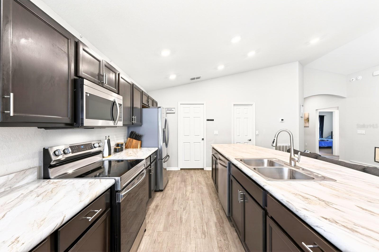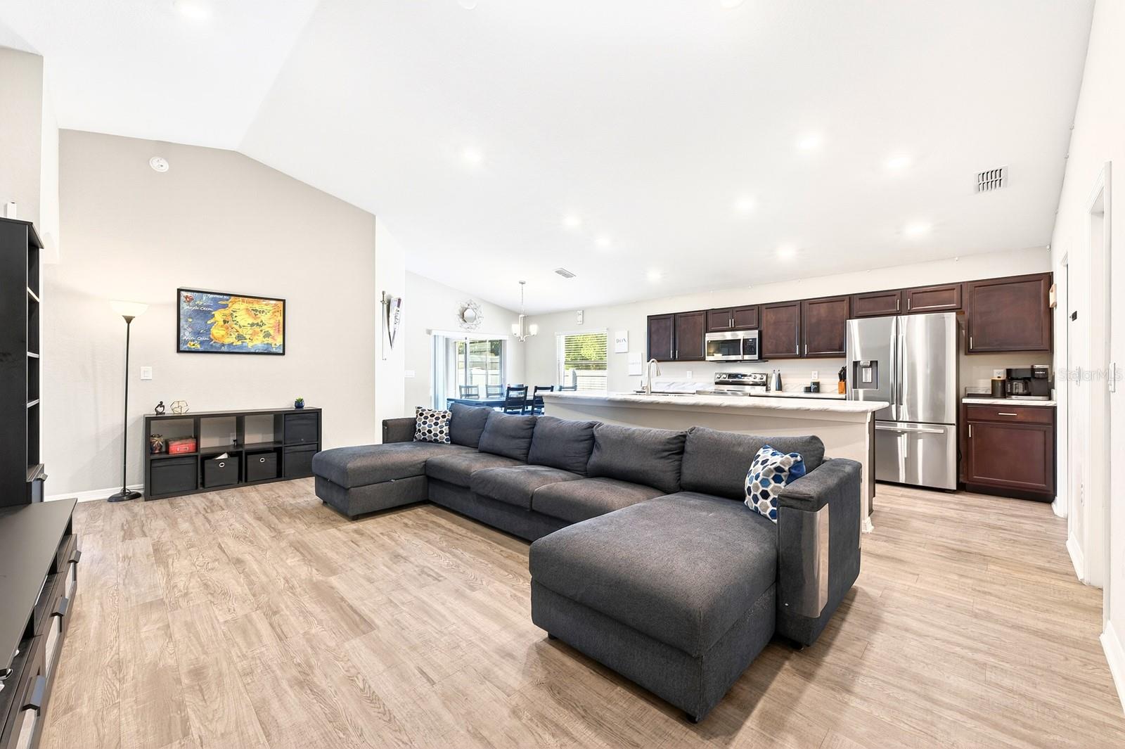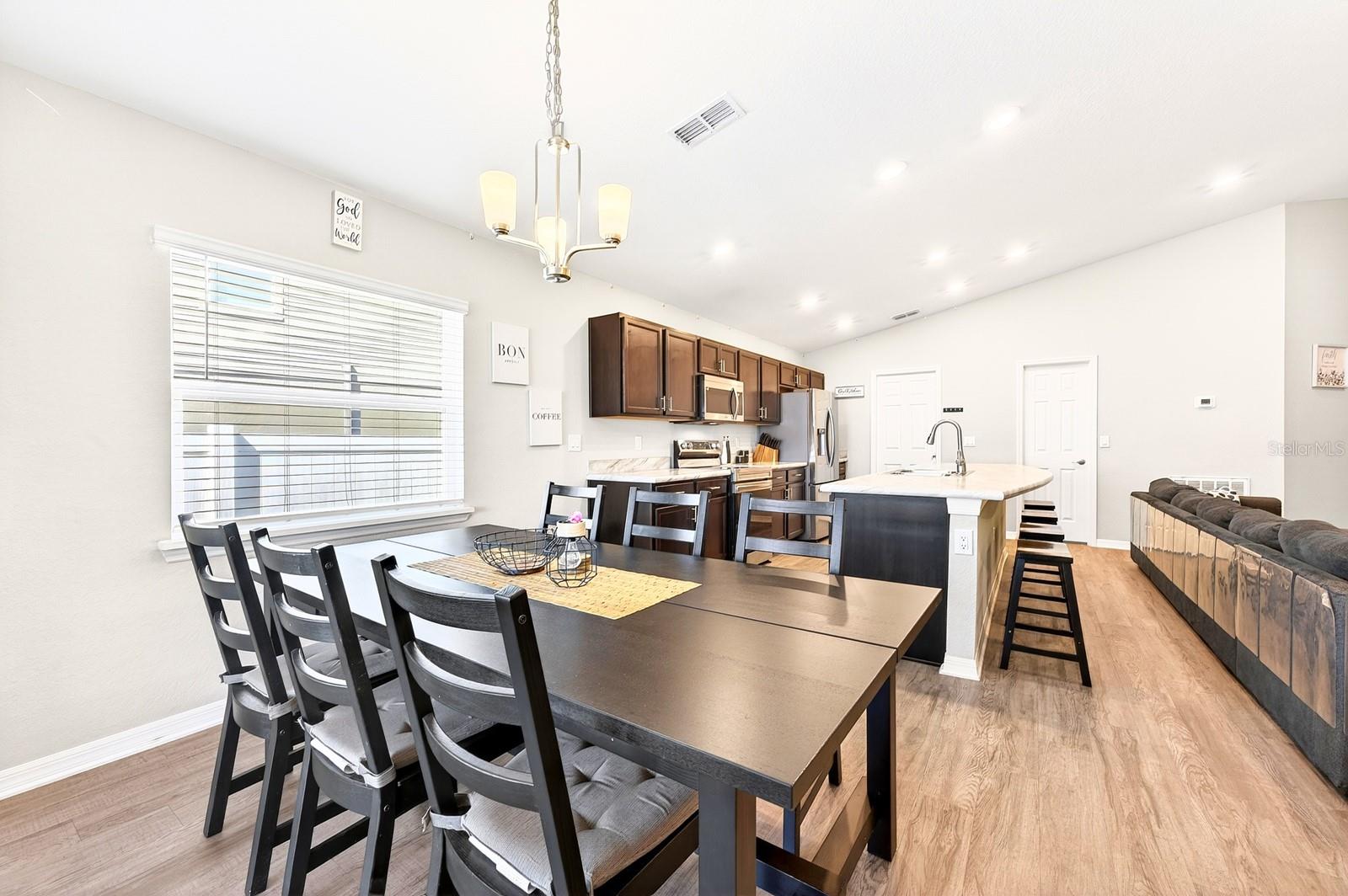 Seller may consider buyer concessions if made in an offer**Welcome to this BEAUTIFULLY MAINTAINED 4-bedroom, 2-bath single-story home in the Aniston community of Lakeland, where modern design and everyday comfort come together in a home that still FEELS LIKE NEW, built in 2022. With NO REAR NEIGHBORS and a peaceful backdrop of a plant nursery, this property offers both privacy and a serene setting. A welcoming front porch sets the tone as you step inside to discover a bright, OPEN-CONCEPT LAYOUT featuring LUXURY VINYL PLANK FLOORING throughout the main living areas. The Living Room, Dining area, and Kitchen flow seamlessly together, creating an inviting space ideal for both relaxing and entertaining. The Kitchen is designed with functionality in mind, offering an ABUNDANCE OF CABINETRY, marble-look laminate countertops, a WALK-IN PANTRY, and a breakfast bar—perfect for casual dining or gathering with family and friends. The Dining area is filled with NATURAL LIGHT, enhanced by a large window and sliding glass doors that lead to the COVERED, SCREENED PATIO extending your living space outdoors. Step outside to enjoy the GENEROUS BACKYARD, where the absence of rear neighbors creates a PEACEFUL RETREAT—ideal for morning coffee or evening relaxation.The Primary Suite is a comfortable and private escape, featuring ample NATURAL LIGHT and BACKYARD VIEWS, along with an EN SUITE BATH complete with dual sinks, a garden tub, a step-in shower, a private water closet, and a SPACIOUS WALK-IN CLOSET. Three additional bedrooms and a SECOND FULL BATH offer flexibility for family, guests, a home office, or hobby space. The Laundry Room is thoughtfully designed with a washer and dryer included, along with a storage shelf and COUNTERTOP SPACE—perfect for folding or even a small workspace. Located in Lakeland, this home is close to a variety of shopping, dining, and entertainment options. Enjoy NEARBY OUTDOOR RECREATION at Circle B Bar Reserve, known for its scenic trails and wildlife viewing, or spend time exploring the charming downtown area around LAKE MIRROR PARK. You’re also CONVENIENTLY LOCATED near Florida Southern College, as well as major roadways like Interstate 4, making travel to Tampa or Orlando an easy drive. With its modern features, PEACEFUL SETTING, and convenient location, this Aniston home offers a wonderful opportunity to enjoy the best of Florida living. Schedule your showing today before it slips away!