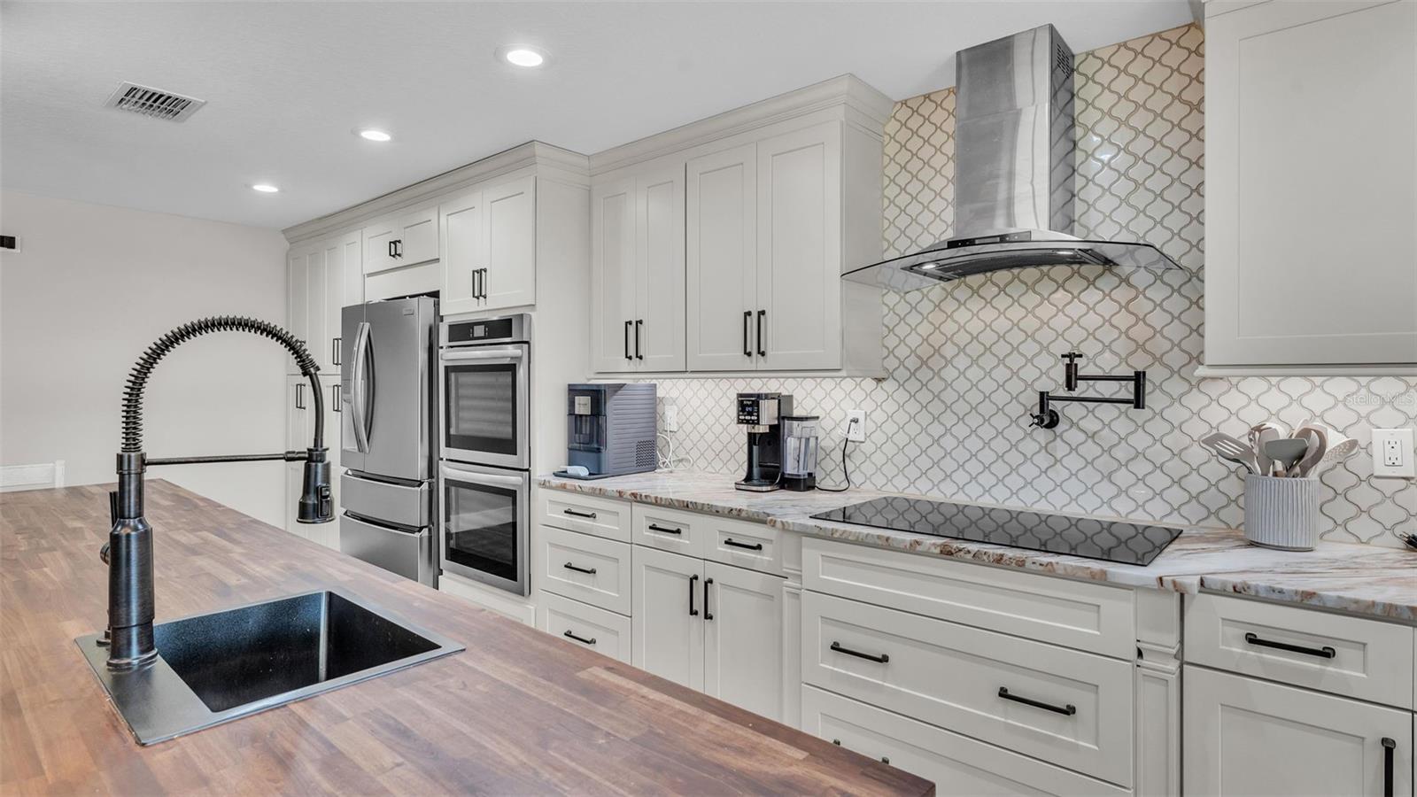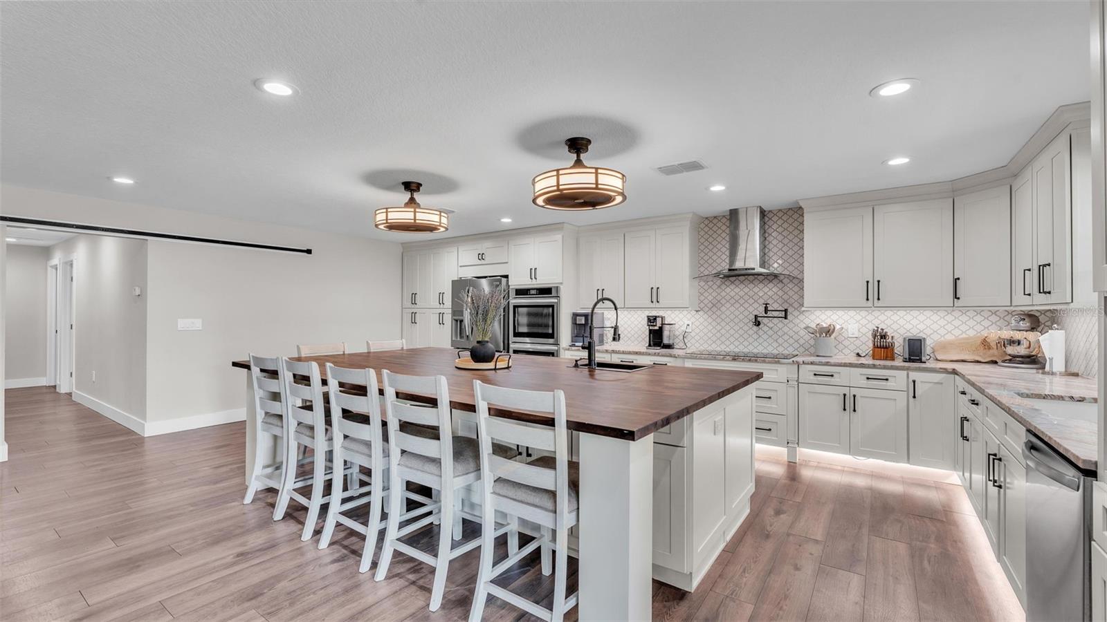 Don't Miss Out on This Exquisite 4 Bedroom 3 Bath Home Nestled in The Heart of South Lakeland. This Beauty Literally was Gutted Down to the Bones in 2022 and Completely Remodeled with Perfection! As soon as you enter the home, your eyes are immediately drawn to the kitchen, which is absolutely breathtaking. The 23x15 Custom Built Kitchen has an 11x6 Island with Butcher Block Countertop and built in seating is truly an Entertainers Dream. The chef in the home will fall in love with the ample space they will have and the Induction Cooktop with a Pot Filler Faucet and Double Oven. This home also includes 2 Master Bedrooms with Master Baths. The main master bedroom has an Extra-Large Master Bathroom that has an 8x8 wet room (freestanding tub and custom shower), double vanity with Quartz countertop and separate toilet room with door. The backyard is perfect for Entertaining with a Nice size shed for storage. Remodeling includes Metal Roof, New Plumbing (pvc drains, pex water lines, water heater, water treatment system, all plumbing fixtures and faucets. New Electrical and 200 Amp panel as well as new air handler and duct work. New Exterior Hardie Board Lap Siding, Windows, Doors, Drywall, Optimax Scratch & Waterproof flooring throughout. The other 2-bathroom remodels include new tile, cabinets, and granite countertops. The exterior walls and roof deck are spray foam insulated as well. Convenient to restaurants, shopping and access to the Polk Parkway for an easy commute to Tampa or Orlando, this is truly Florida living at its best!
