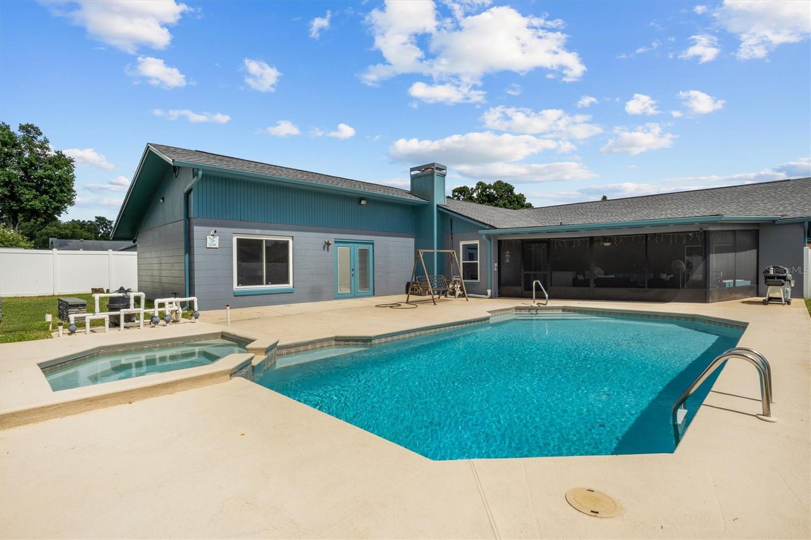 SELLERS MOTIVATED — Bring your offer! Welcome to 704 Butternut Place, a spacious and beautifully updated home in the sought-after Christina Oaks community of South Lakeland. With five bedrooms, three full bathrooms, and a bonus room, this property delivers the space, comfort, and flexibility your family has been looking for. Step into a light-filled formal living and dining area—perfect for holidays or quiet evenings. At the heart of the home, the open-concept kitchen features modern countertops, a large island with seating, a built-in wine fridge, and sleek gray cabinetry, all flowing into a cozy family room with a fireplace for easy entertaining. The primary suite is a private retreat with a walk-in closet, an updated bath with a garden tub, and French doors that open directly to your pool and spa. Outside, enjoy an expansive deck, fire pit, and a fully fenced backyard oasis with two gated entrances—great for relaxing weekends and get-togethers. What truly sets this home apart is its versatile layout. With multiple living areas and separated bedroom wings, it easily functions as a multigenerational or in-law home—ideal for a guest suite, home office, game room, or private quarters for extended family. Thoughtfully maintained and upgraded: new roof (2024), A/C (2022), updated ductwork (2021), new windows (2020), and a brand-new pool pump (May 2025). Bathrooms have been remodeled, interior and exterior freshly painted, plus irrigation system, gutters, and attic storage. Located in a peaceful, established neighborhood with a low annual HOA of just $310, you’re minutes from shopping, dining, great schools, and the Polk Parkway—offering smooth commutes to both Tampa and Orlando. If you’re seeking a move-in-ready home with room to grow, this one checks every box. Schedule your private tour today!