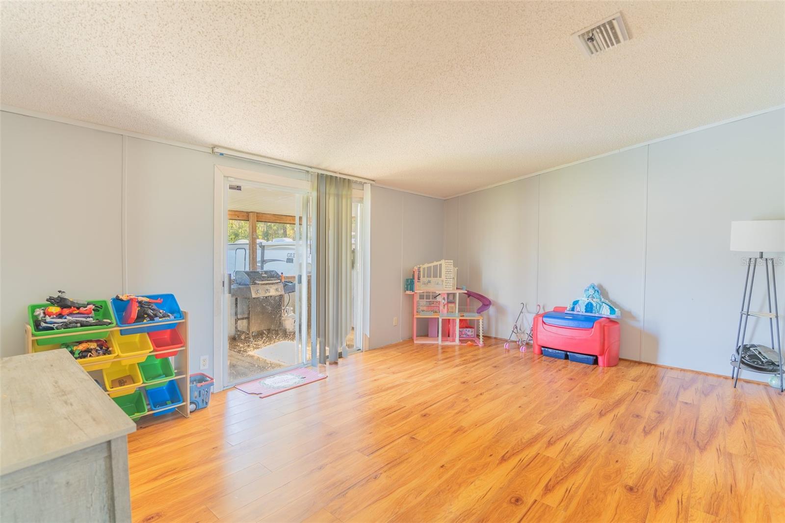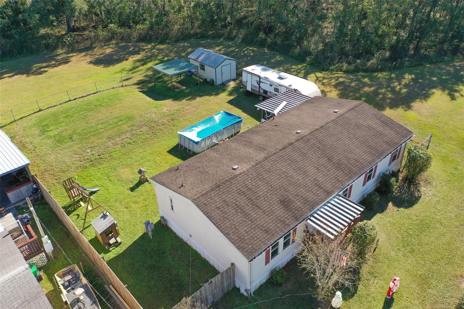 Welcome to this charming three-bedroom, two-bath residence is perfectly situated on a spacious quarter-acre lot, offering the ideal blend of comfort and privacy. With no HOA to contend with, you can enjoy the freedom of homeownership without the added restrictions. As you enter, you’ll be greeted by high ceilings and an open floor plan that seamlessly connects two inviting living spaces. The laminate flooring throughout enhances the modern aesthetic, while the sleek black appliances in the kitchen add a touch of sophistication. The kitchen island, complete with seating, provides a perfect spot for casual meals or entertaining guests, and the abundance of counter space and cupboards ensures you’ll have all the room you need for culinary creations. The large primary suite is a true retreat, featuring a walk-in closet and an en suite bath for your convenience and privacy. The thoughtful split bedroom plan adds an extra layer of tranquility, ensuring that everyone has their own space. Step outside through the sliding glass doors from the second living area to discover a covered screened-in porch, perfect for enjoying warm evenings while overlooking your completely fenced-in backyard. This outdoor space is ideal for children to play, pets to roam, and gatherings with friends and family. Plus, you’ll find an above-ground pool, perfect for those hot summer days, providing a refreshing escape right in your own backyard. Rest easy knowing the A/C is brand new and the roof was replaced in 2021. Additionally, a shed offers ample storage solutions, and a covered area provides extra space for your belongings. With no rear neighbors and an adjacent empty lot, you’ll enjoy peace and quiet, making this home a true sanctuary. Don’t miss the opportunity to make this exceptional property your own. Schedule a viewing today and experience all that this home has to offer!