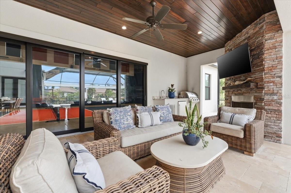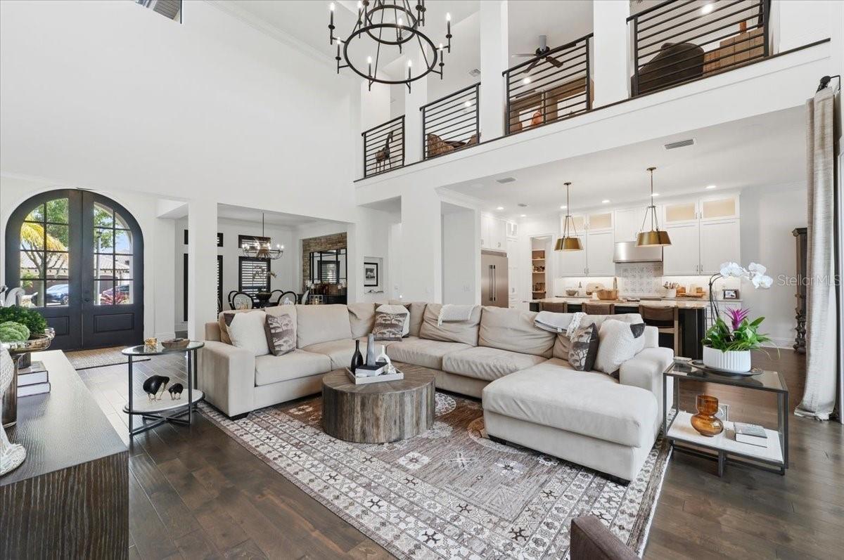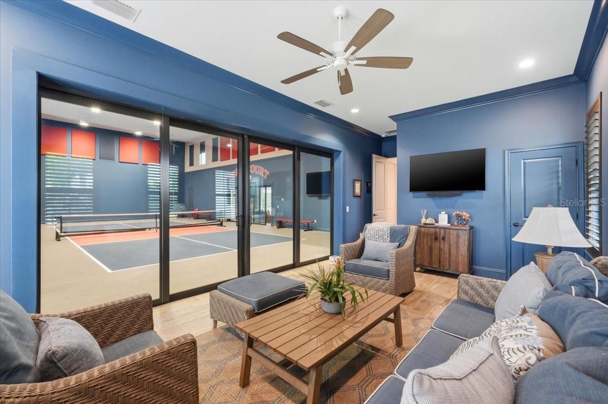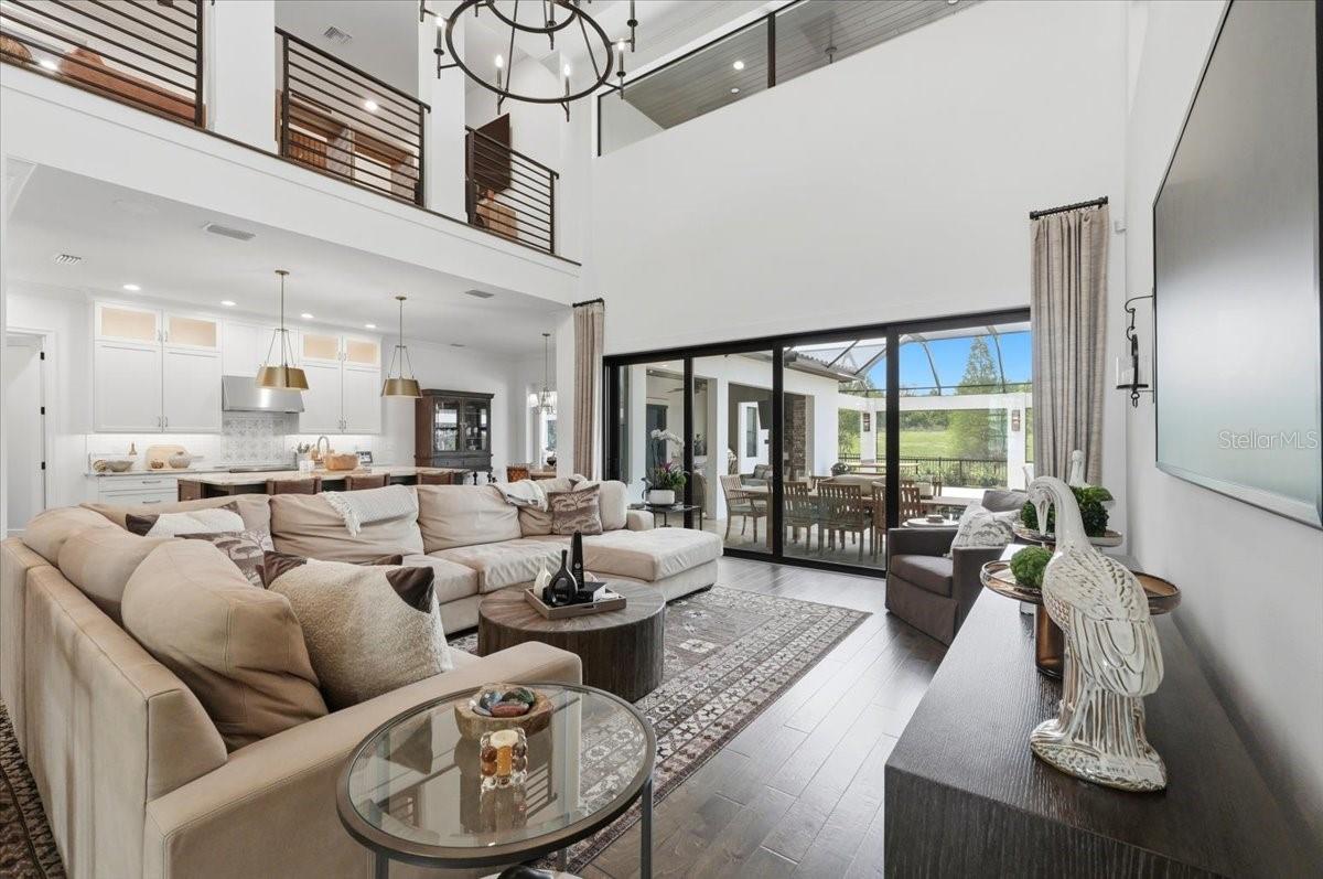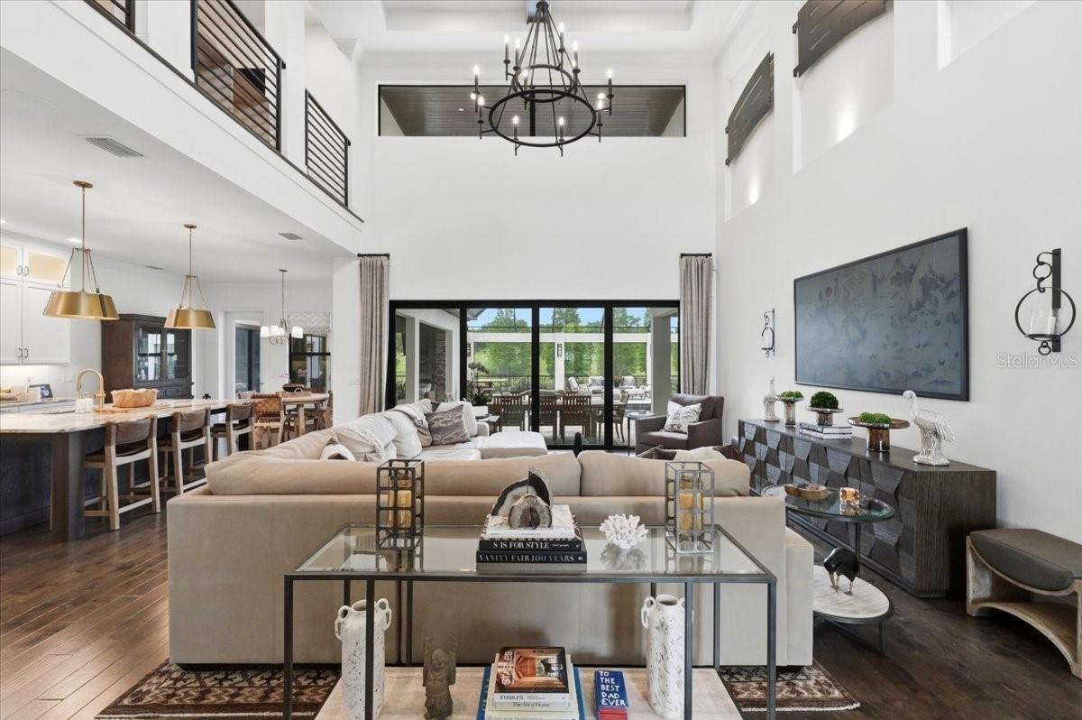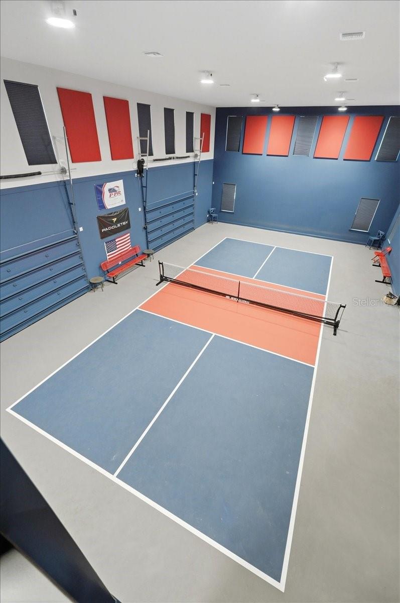 Welcome to a truly one-of-a-kind luxury estate in the prestigious gated community of Grasslands Golf & Country Club, where exceptional design and elevated living come together at the highest level. Built by Hulbert Homes, this remarkable residence offers 5 bedrooms, 4.5 bathrooms, and an extraordinary blend of sophistication, innovation, and entertainment. Designed for both grand-scale hosting and everyday enjoyment, the home features a fully climate-controlled, indoor pickleball court with a professional regulation layout and integrated sound system. A second-floor observation deck overlooks the court, creating a one-of-a-kind entertainment experience. Set on an oversized, ultra-private lot backing to a peaceful preserve, the property makes an immediate impression with an extended paver driveway and grand 10-foot solid mahogany entry doors. Inside, soaring 22-foot ceilings, custom wood beams, and elegant Hinkley fixtures define the open-concept living spaces, creating a dramatic yet inviting atmosphere ideal for entertaining. At the center of the home, the chef’s kitchen is both stunning and functional, featuring exquisite Dolomite countertops, striking brass fixtures, premium cabinetry, a double refrigerator, top-of-the-line Bosch appliances, an induction cooktop, and a spacious walk-in pantry. The first-floor primary suite is a private retreat, complete with a fully illuminated tray ceiling, a sitting area, and double doors opening directly to the pool. The spa-inspired primary bath offers a soaking tub, custom walk-in shower, and elegant Dolomite finishes for a true resort-style experience. Outdoor living is equally impressive, with a fully screened backyard oasis that includes a heated saltwater pool and spa, expansive entertaining space, outdoor kitchen, and gas fireplace—perfect for year-round enjoyment. Upstairs, you’ll find three additional bedrooms and a spacious loft overlooking the main living area, enhancing the home’s open and connected design. Built with solid block construction, a tile roof, and exceptional finishes throughout, this meticulously crafted home leaves no detail overlooked. Residents of Grasslands enjoy access to an 18-hole championship golf course, resort-style pool, clubhouse dining, fitness center, illuminated pickleball courts, and 24-hour guard-gated security, all just minutes from premier shopping, dining, and medical facilities. This is more than a home—it is a statement of lifestyle, and truly unlike anything else available in Central Florida.