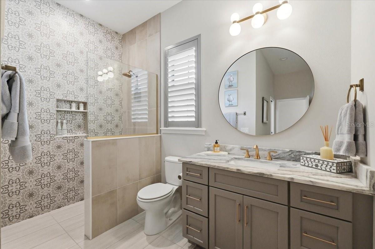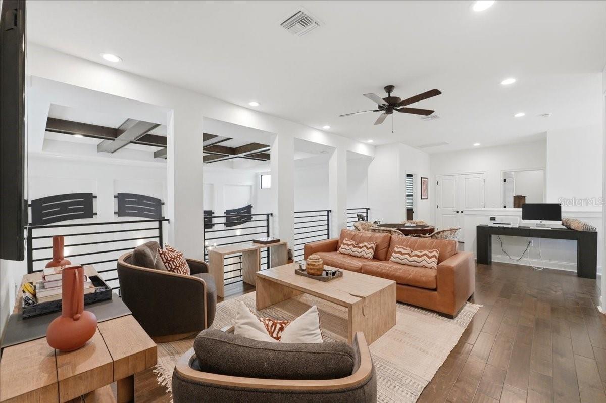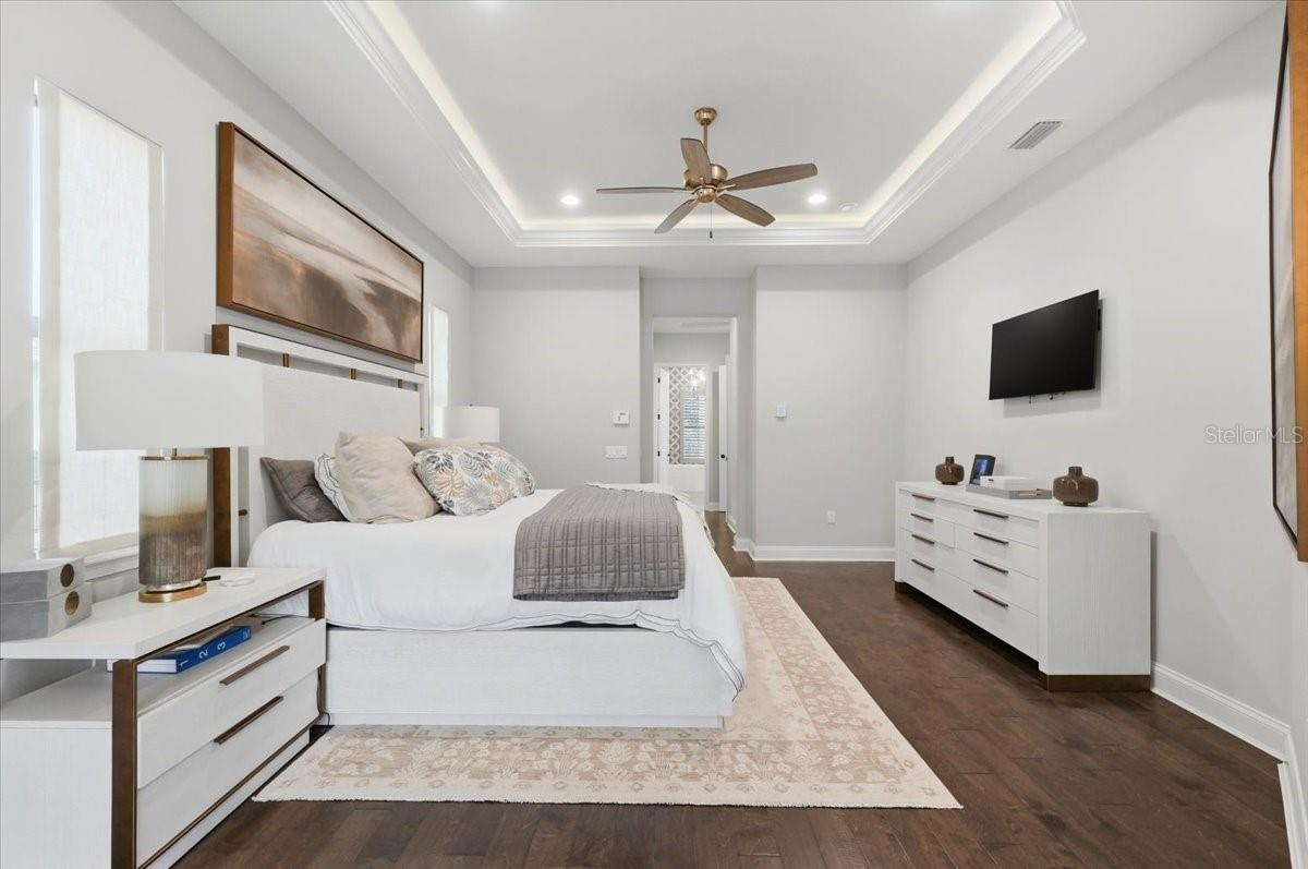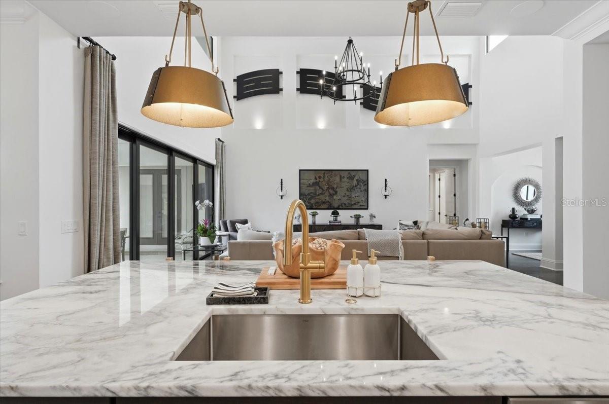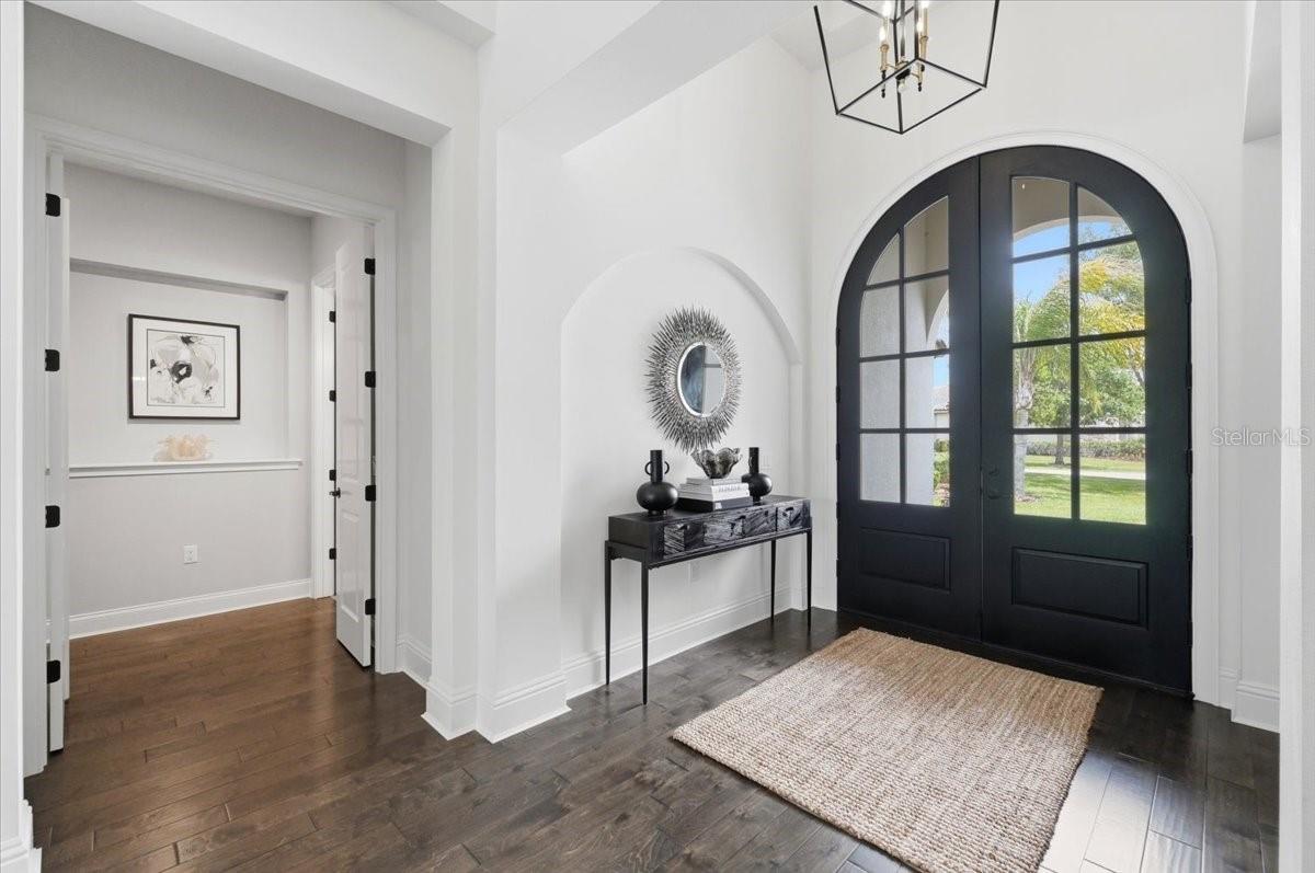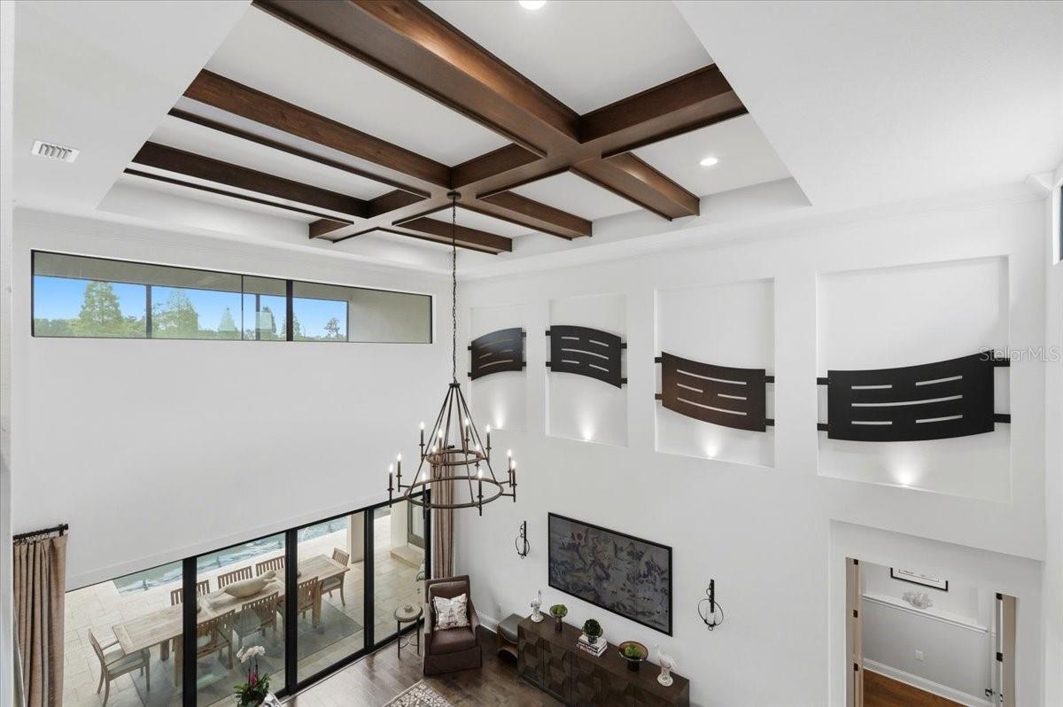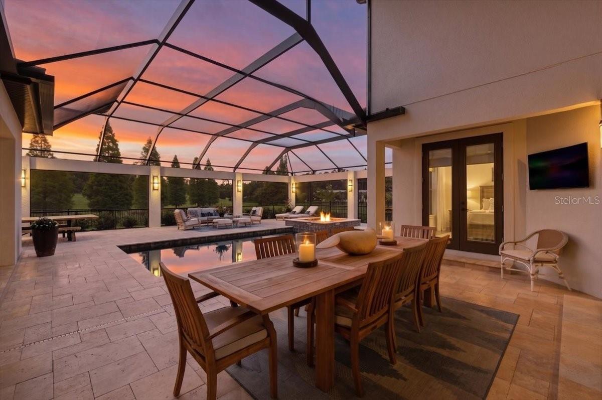 Welcome to a truly one-of-a-kind luxury estate in the prestigious gated community of Grasslands Golf & Country Club, where exceptional design and elevated living come together at the highest level. Built by Hulbert Homes, this remarkable residence offers 5 bedrooms, 4.5 bathrooms, and an extraordinary blend of sophistication, innovation, and entertainment. Designed for both grand-scale hosting and everyday enjoyment, the home features a fully climate-controlled, indoor pickleball court with a professional regulation layout and integrated sound system. A second-floor observation deck overlooks the court, creating a one-of-a-kind entertainment experience. Set on an oversized, ultra-private lot backing to a peaceful preserve, the property makes an immediate impression with an extended paver driveway and grand 10-foot solid mahogany entry doors. Inside, soaring 22-foot ceilings, custom wood beams, and elegant Hinkley fixtures define the open-concept living spaces, creating a dramatic yet inviting atmosphere ideal for entertaining. At the center of the home, the chef’s kitchen is both stunning and functional, featuring exquisite Dolomite countertops, striking brass fixtures, premium cabinetry, a double refrigerator, top-of-the-line Bosch appliances, an induction cooktop, and a spacious walk-in pantry. The first-floor primary suite is a private retreat, complete with a fully illuminated tray ceiling, a sitting area, and double doors opening directly to the pool. The spa-inspired primary bath offers a soaking tub, custom walk-in shower, and elegant Dolomite finishes for a true resort-style experience. Outdoor living is equally impressive, with a fully screened backyard oasis that includes a heated saltwater pool and spa, expansive entertaining space, outdoor kitchen, and gas fireplace—perfect for year-round enjoyment. Upstairs, you’ll find three additional bedrooms and a spacious loft overlooking the main living area, enhancing the home’s open and connected design. Built with solid block construction, a tile roof, and exceptional finishes throughout, this meticulously crafted home leaves no detail overlooked. Residents of Grasslands enjoy access to an 18-hole championship golf course, resort-style pool, clubhouse dining, fitness center, illuminated pickleball courts, and 24-hour guard-gated security, all just minutes from premier shopping, dining, and medical facilities. This is more than a home—it is a statement of lifestyle, and truly unlike anything else available in Central Florida.