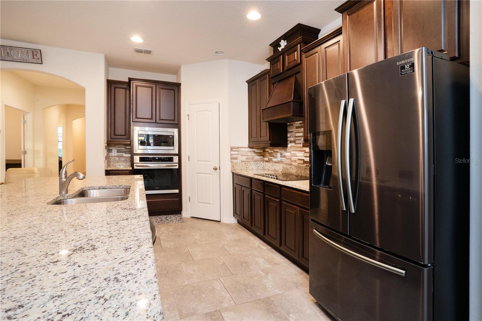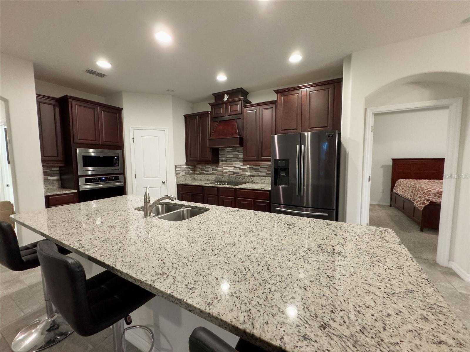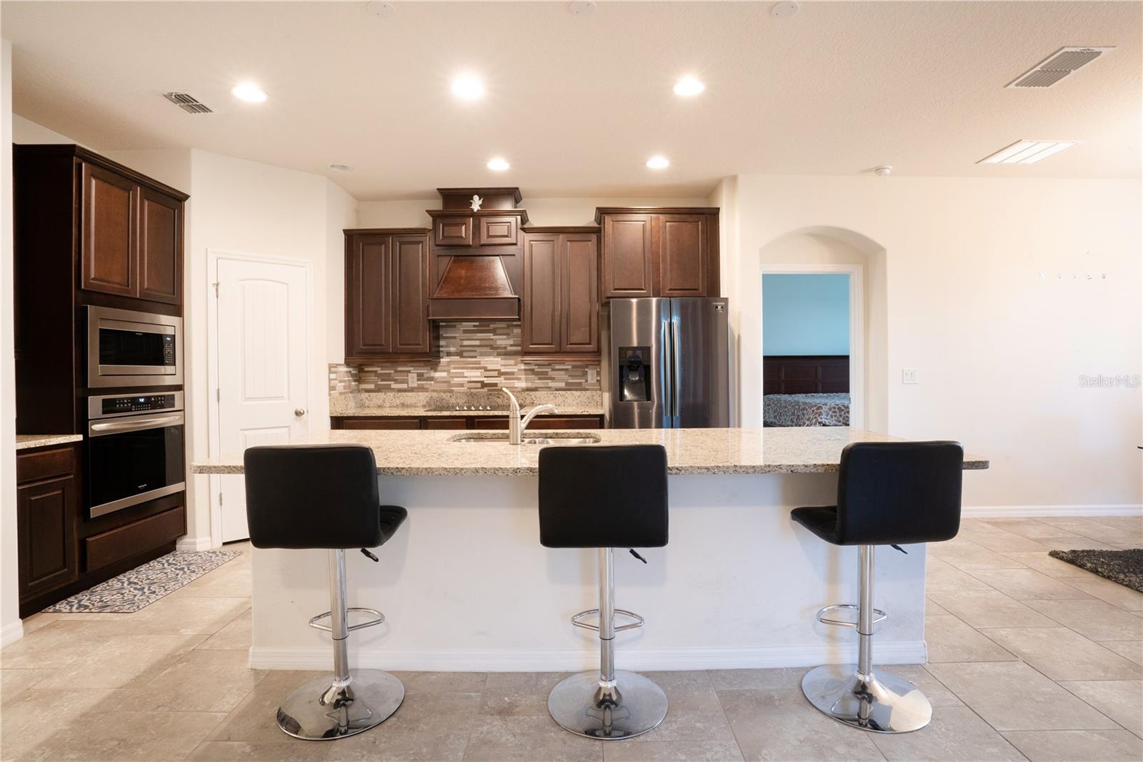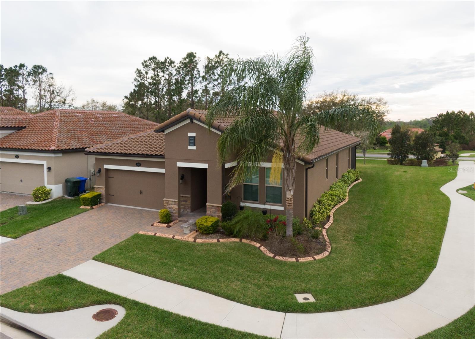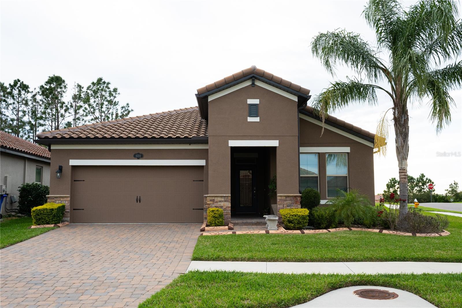 Welcome to this stunning 4-bedroom, 3-bath east-facing corner home in the desirable gated community of Terralargo. Curb appeal shines with a brick paver driveway, concrete garden edging, and a full irrigation system. Inside, you’re welcomed by an upgraded smoked-glass front door opening to a spacious hallway that leads into a bright, open-concept kitchen and living area. The kitchen features stainless steel appliances, a glass cooktop with a sleek range hood, granite countertops, and a center island—perfect for entertaining. The open layout flows into the dining area and out to a screened lanai, ideal for relaxing or outdoor dining. All bathrooms are upgraded with granite countertops, and there’s a convenient drop zone cabinet near the garage entrance. The primary suite includes a tray ceiling, double vanities, walk-in closet, a soaking tub, and a separate walk-in shower. A whole-house water softener is also included. As a resident of Terralargo, you’ll enjoy resort-style amenities: a clubhouse, fitness center, heated zero-entry pool, spa, lakeside gazebo, picnic area, and courts for basketball, pickleball, and tennis. Enjoy scenic, tree-lined walking and jogging paths throughout the neighborhood. HOA fees include: cable, internet, and maintenance of all common areas. LOCATION, LOCATION! LOCATION! Terralargo offers convenient access to I-4, placing you between Tampa and Orlando, and just minutes from shopping, restaurants, banks, medical facilities, and places of worship. Don’t miss this opportunity—schedule your private showing today!