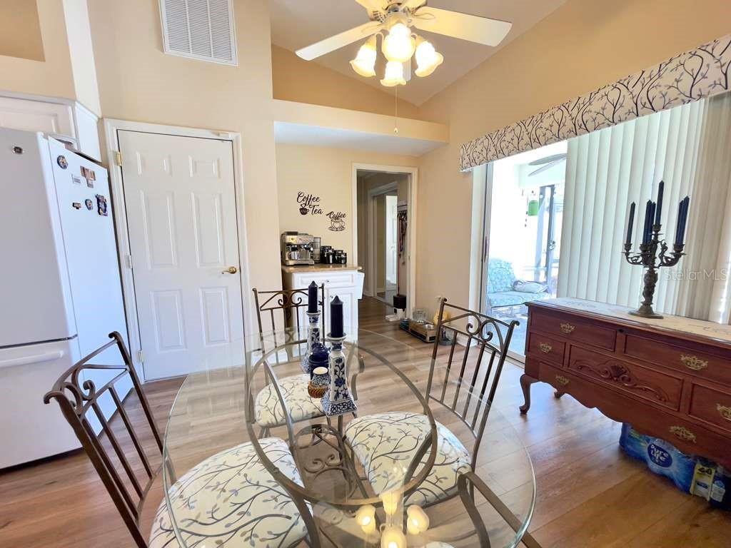 POOL HOME + IN-LAW SUITE in SILVER LAKES 55+ COMMUNITY Beautifully maintained 3BR/3BA home , 2-car garage and a private solar-heated saltwater pool, in the resort-style gated community of Silver Lakes. This light and bright home features high ceilings, open floor plan, plantation shutters, and brand-new LVP flooring throughout, plus new carpet in bedrooms. The split triple layout offers excellent privacy and versatility. The kitchen includes granite countertops, GE appliances, pantry, breakfast bar, and a cozy eat-in nook with sliding doors to the pool area. The spacious living room overlooks the pool through large windows, creating the perfect indoor–outdoor flow. The owner’s suite has a walk-in closet, pool access, and an ensuite bath with large walk-in shower, solid-surface vanity, and linen closet. A second guest bedroom and bath are located at the front of the home. IN-LAW SUITE/APARTMENT features its own private entrance, screened porch, separate A/C, kitchen, living room, bedroom with walk-in closet, and ensuite bath with tiled walk-in shower ideal for parents, or guests. Outdoor living shines with the solar-heated pool, rescreened enclosure, lush landscaping, and a 10ft vinyl privacy fence behind the home. UPDATES: driveway & sidewalks resurfaced (2023), interior paint (2021), pool enclosure painted/rescreened (2020), solar panels (2020), dual-pane windows (2020), pool pump motor (2018), roof (2015), gas water heater (2014), 3-ton & 2-ton A/C units (2025)(2009). HOA includes cable, internet, lawn care, and reclaimed irrigation water. Community amenities include a heated pool, and more