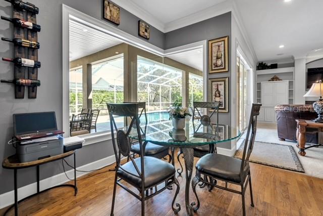 Beautiful home in gated community of Hamilton South. Welcome to a realm where every corner exudes elegance and comfort, where every detail is meticulously crafted to elevate your lifestyle. This remarkable residence, a masterpiece by Rick Strawbridge, beckons with its grandeur and sophistication. With 4 bedrooms, 3.5 baths, and a 3-car garage, this home stands as a testament to impeccable design and luxurious living. Upon entering, be greeted by soaring 14 ft double tray ceilings that set the stage for an awe-inspiring experience. The formal dining and living areas exude timeless charm, offering a perfect setting for gatherings and celebrations. The heart of this home lies in its chef's dream kitchen, adorned with exquisite granite countertops, a spacious center/breakfast bar, and a charming dinette overlooking the pool. Hardwood flooring adds a touch of warmth and character to the space, inviting you to indulge in culinary delights and intimate conversations. Cozy up by the wood-burning fireplace in the family room or retreat to one of the four large bedrooms, two of which feature en-suite bathrooms with direct access to the pool area. Step outside to your private oasis, where an inground pool awaits, embraced by an oversized birdcage enclosure, ideal for entertaining guests or enjoying moments of solitude. But the pièce de résistance lies within—a custom 2500-bottle refrigerated and temperature-controlled wine cellar, crafted with true California Redwood. A haven for wine enthusiasts and connoisseurs, this feature sets this home apart and elevates the art of living. Beyond the confines of your abode, indulge in the community amenities, including tennis and pickleball courts just steps away from your front door. This home boasts a new roof replaced within the last 5 years, two AC systems in excellent working condition, with one replaced in the last 5 years, and a brand-new pool pump. Don't miss the opportunity to experience the epitome of luxury living. Schedule your tour of this must-see home today and unlock the door to a life of unparalleled elegance and comfort.
