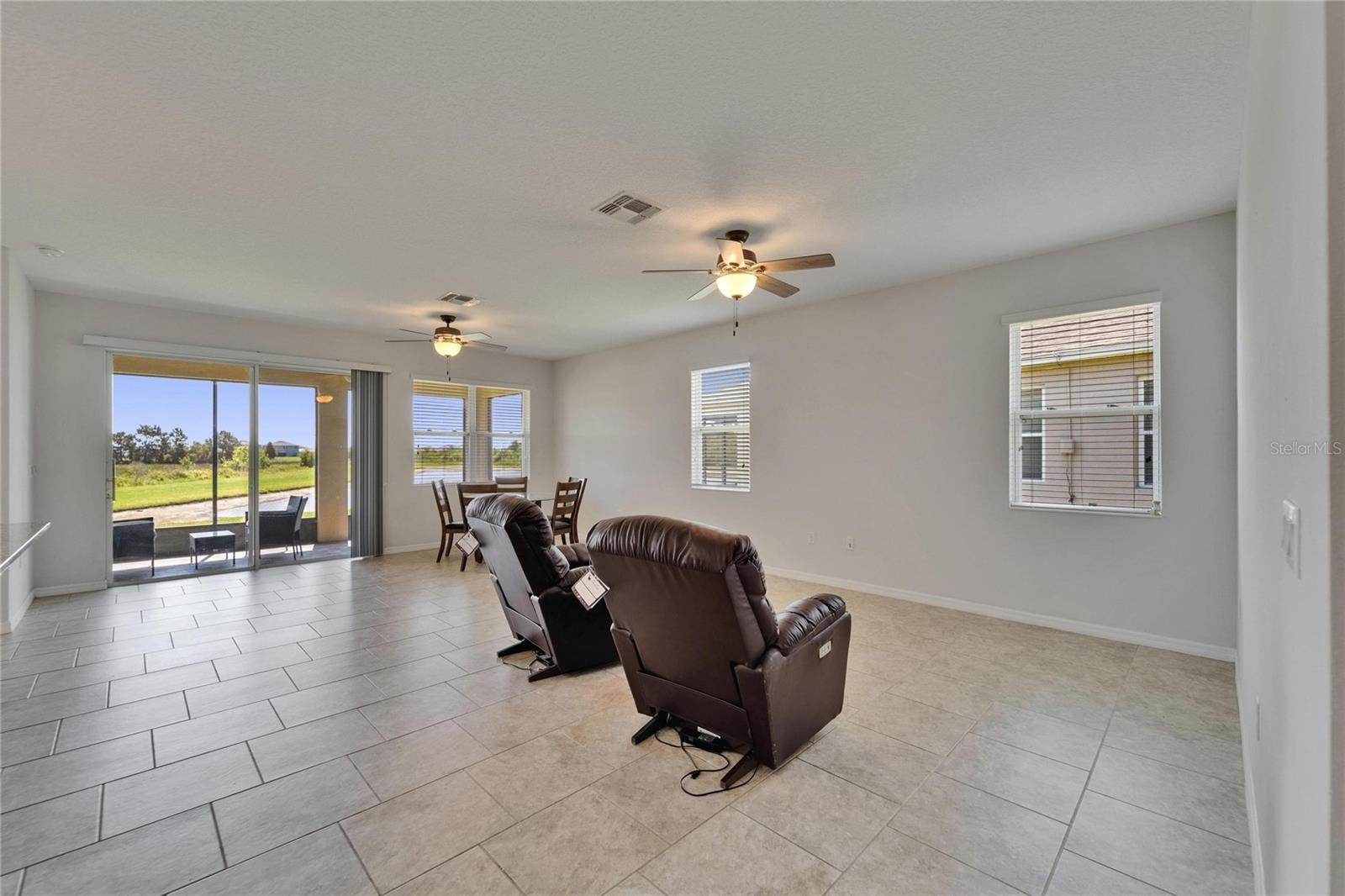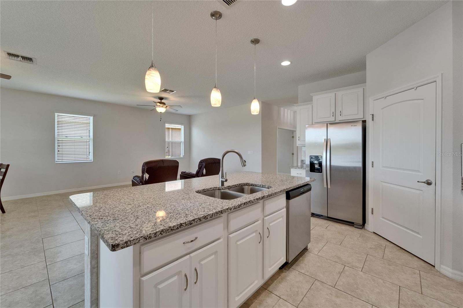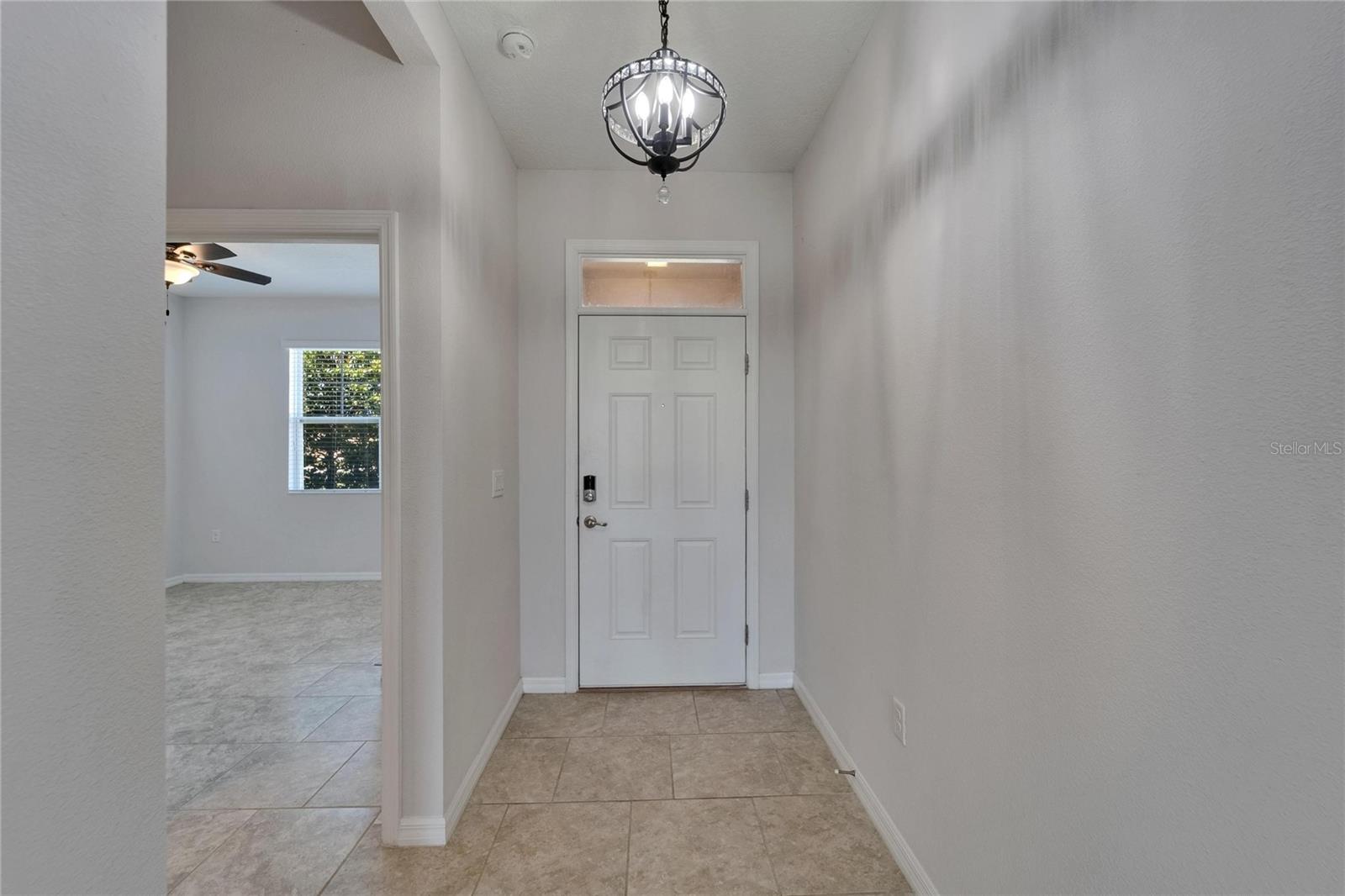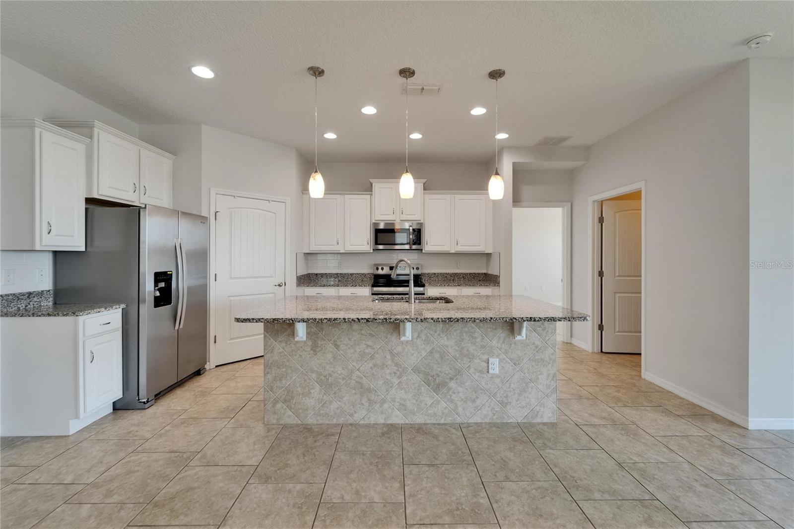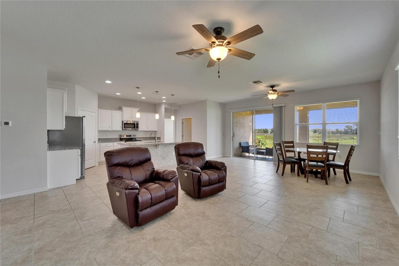 Welcome to your new Florida home in the beautiful, gated 55+ community of Heritage Landings in South Lakeland! This well-maintained residence offers easy access to the Polk Parkway, making it convenient for commuting to Tampa, Orlando, and nearby beaches. The home boasts stunning curb appeal with its stone-front exterior and meticulously landscaped yard. Inside, the open floor plan is bright and welcoming, featuring tile flooring throughout — no carpet for easy maintenance and a sleek, modern look. The updated kitchen includes white cabinetry, granite countertops, and stainless steel appliances. The refrigerator and range are brand new, while the remaining appliances are also stainless steel. The walk-in pantry offers custom shelving, and the peninsula wall is beautifully tiled, enhancing the overall aesthetic and functionality. The great room design provides relaxing views of the pond and conservation area, with sliders leading to a 12x9 screened-in lanai with brick pavers, perfect for enjoying the outdoors in privacy with no rear neighbors. The master suite is located at the back of the home and features two walk-in closets, a spacious master bath with dual sinks, a glass-enclosed shower, and a separate water closet. The secondary bedroom is situated at the front of the home, and there is also a flex space/den/third bedroom enclosed with double glass doors. Additional features include a laundry room with extra cabinetry and tile accents, an epoxy-coated garage floor, and a drop station by the garage entrance for convenience. Residents of Heritage Landings enjoy a resort-style pool, pickleball courts, clubhouse, and fitness center, with lawn maintenance included in the gated section. Located close to doctors’ offices, shopping, theaters, and restaurants, this home offers comfort, convenience, and luxury living in a desirable community.