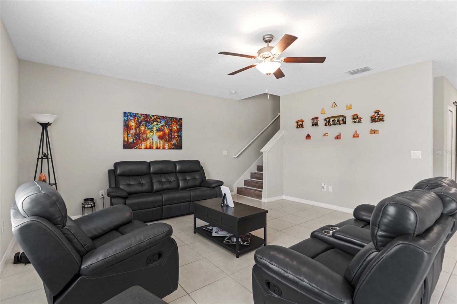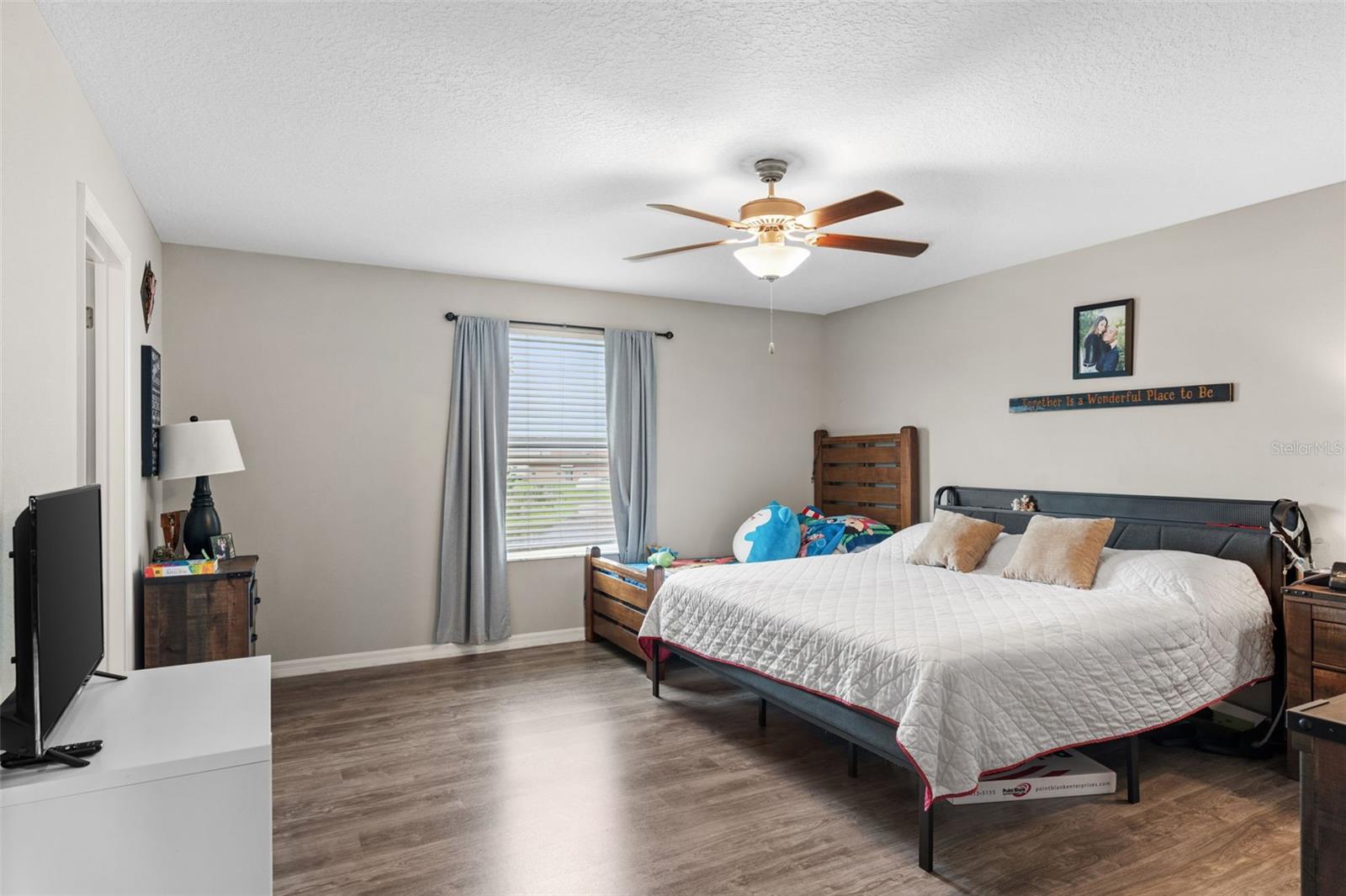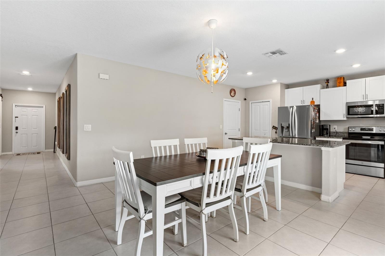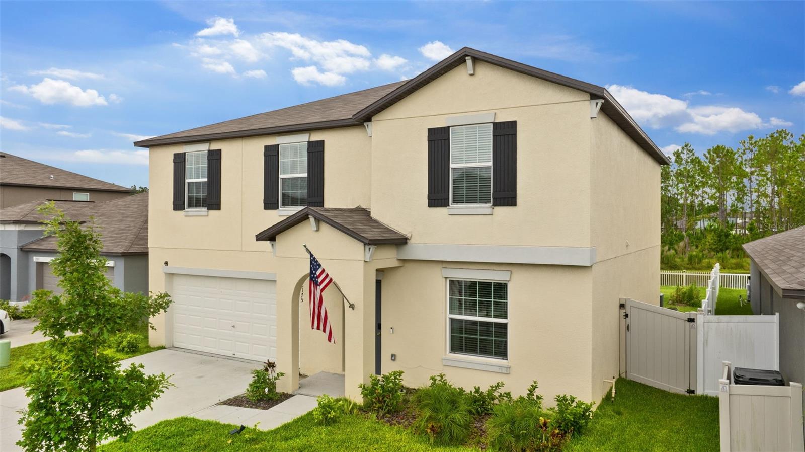 Quality, comfort and elegance top the list of this gorgeous home located in the beautiful community of Saddle Creek Preserve. This elegant and beautiful house features laminate floors throughout the bedrooms and hallways and tile throughout the first floor, pre-wired security system, security cameras that will convey with the property and paddle fans in all rooms. For your enjoyment all year around this house features a spacious patio to grill, sit and enjoy the pond view in a fence back yard, speaking of views the sunsets are amazing! Beautiful and spacious kitchen complete with stainless steel appliances. Master bathroom feature granite countertops, large walk-in shower and dual sinks. No waiting for new construction and in some cases and most importantly no builders’ fees. This beautiful house is conveniently located near major highways with easy access to the Orlando theme parks and recreations areas
