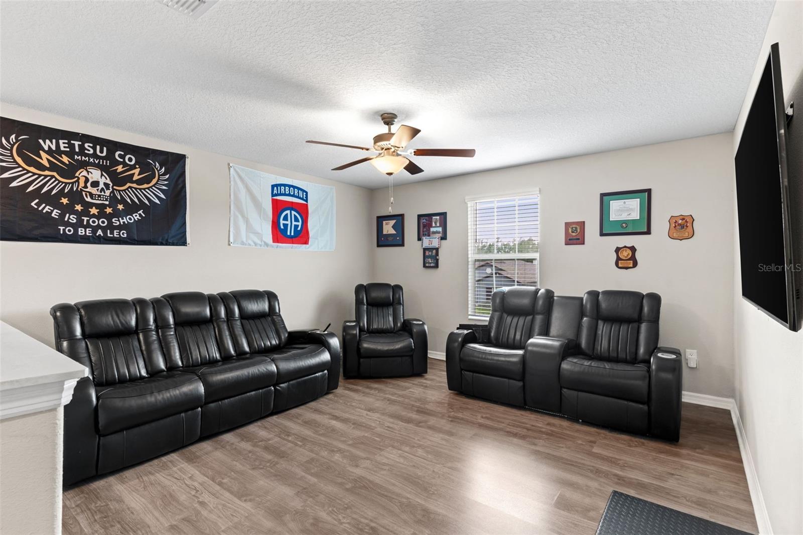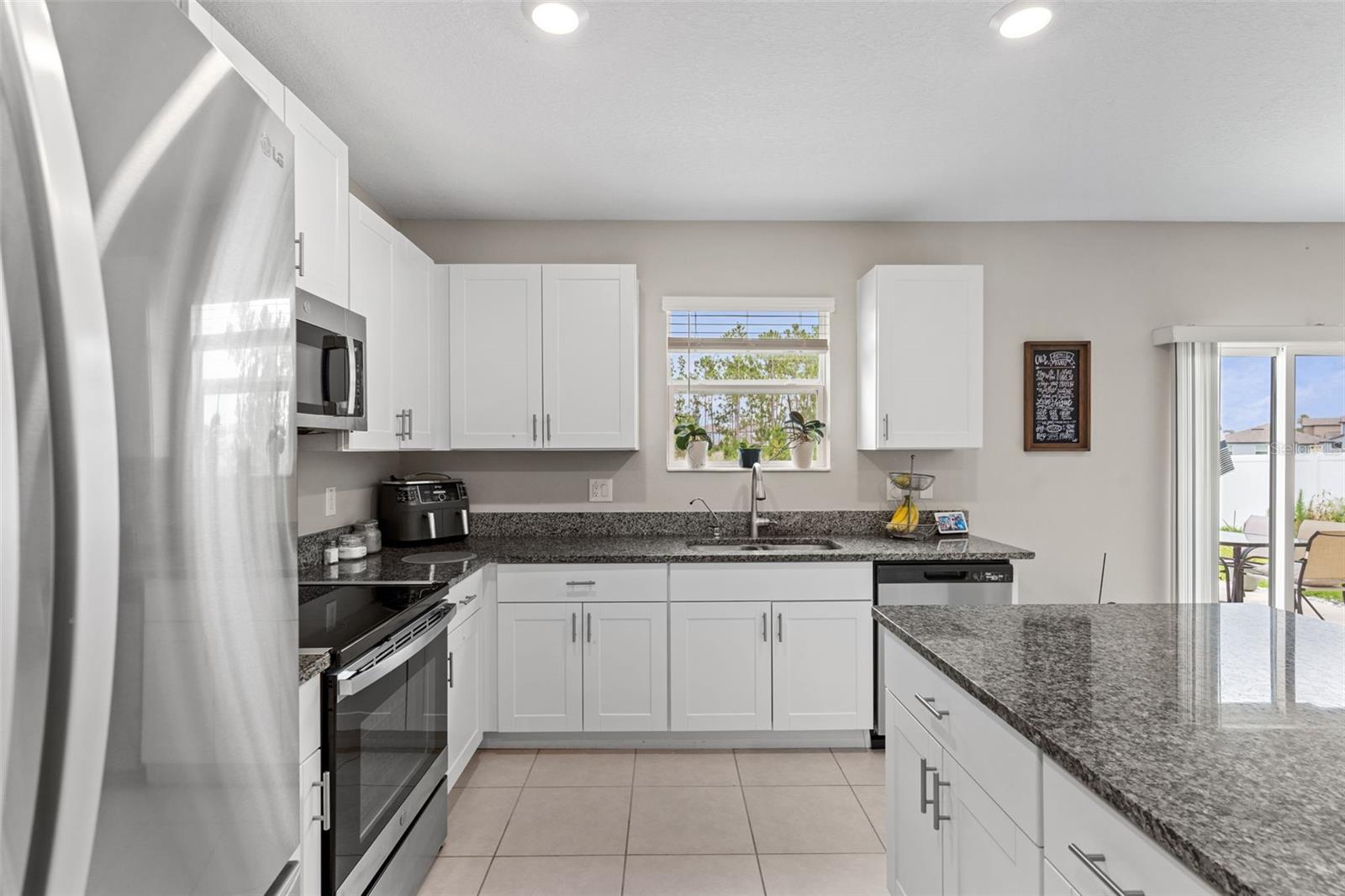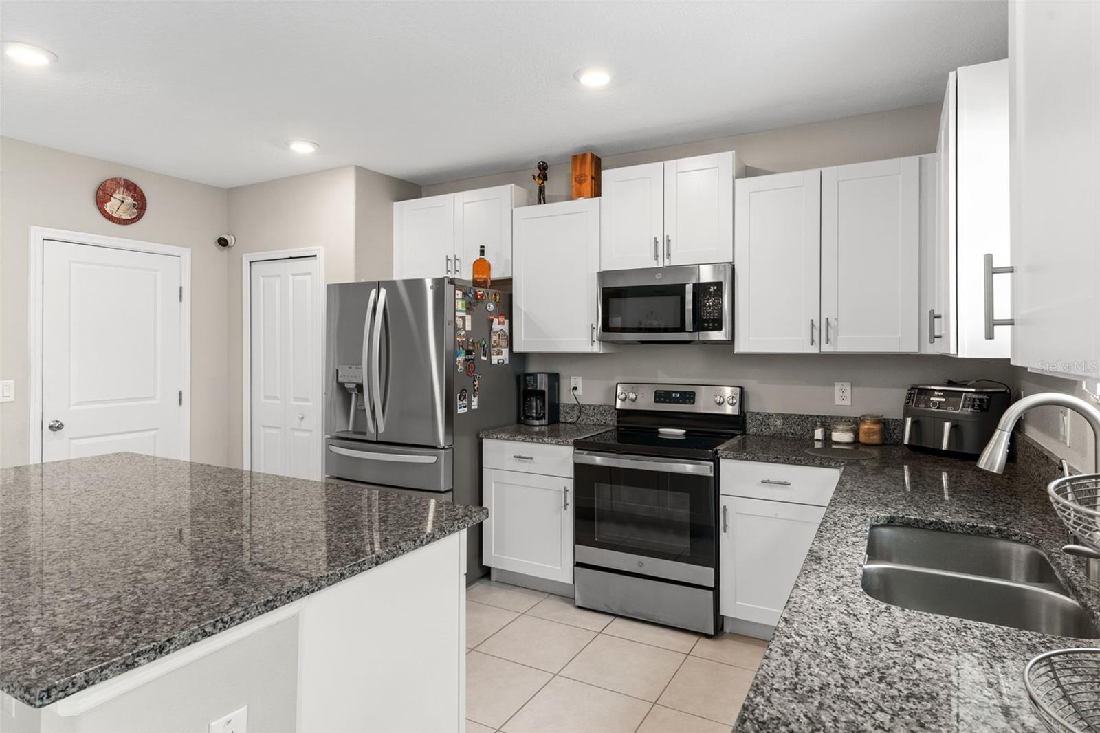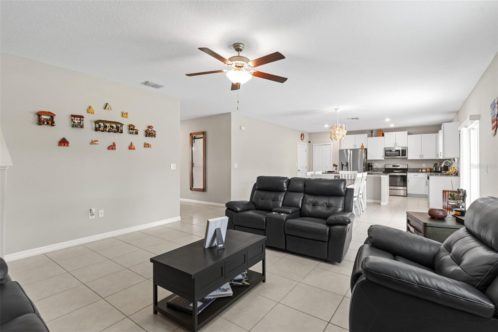 Quality, comfort and elegance top the list of this gorgeous home located in the beautiful community of Saddle Creek Preserve. This elegant and beautiful house features laminate floors throughout the bedrooms and hallways and tile throughout the first floor, pre-wired security system, security cameras that will convey with the property and paddle fans in all rooms. For your enjoyment all year around this house features a spacious patio to grill, sit and enjoy the pond view in a fence back yard, speaking of views the sunsets are amazing! Beautiful and spacious kitchen complete with stainless steel appliances. Master bathroom feature granite countertops, large walk-in shower and dual sinks. No waiting for new construction and in some cases and most importantly no builders’ fees. This beautiful house is conveniently located near major highways with easy access to the Orlando theme parks and recreations areas