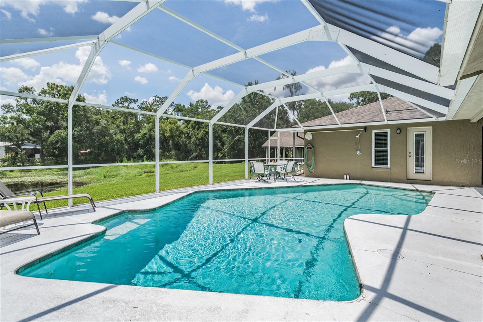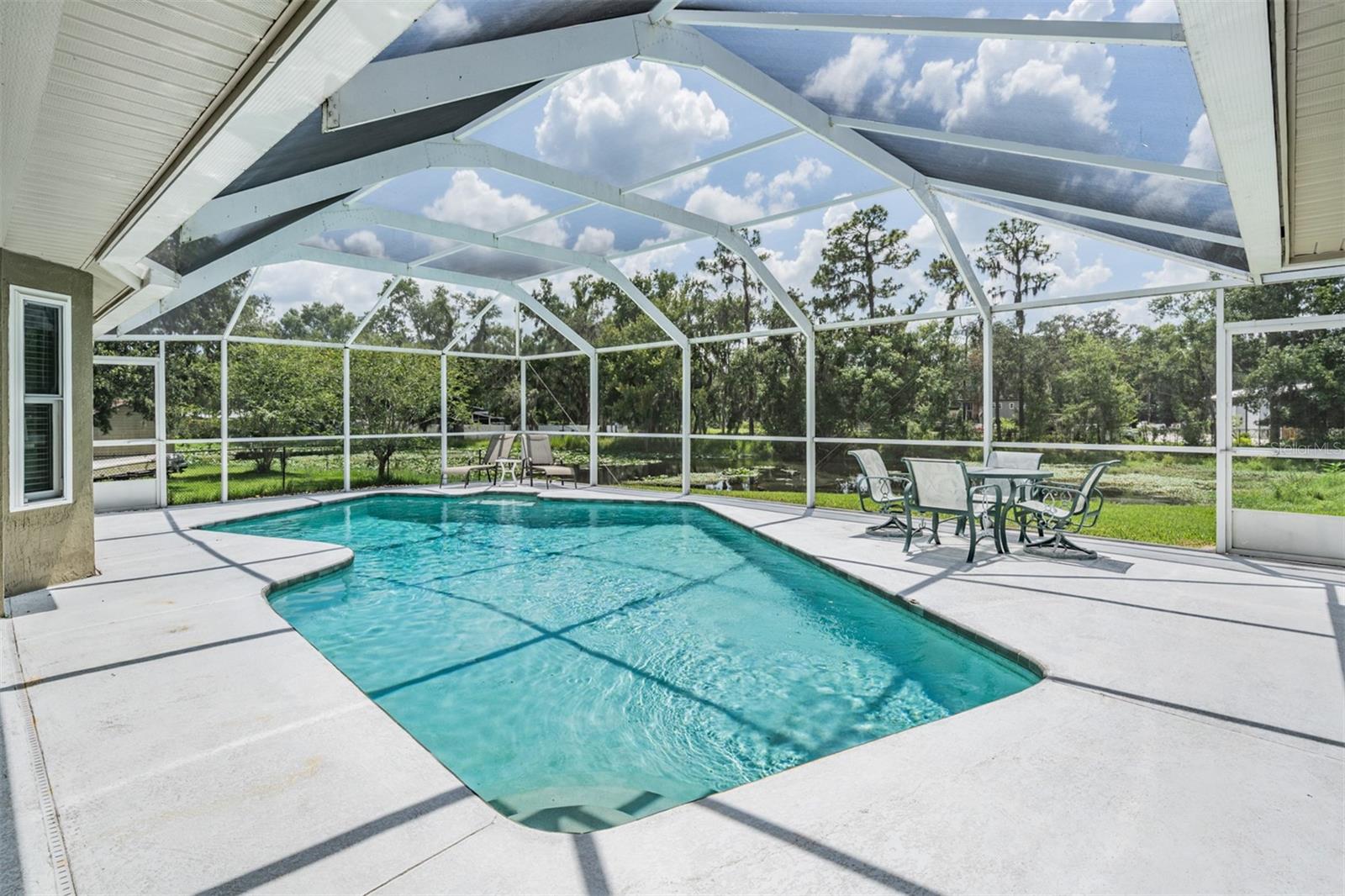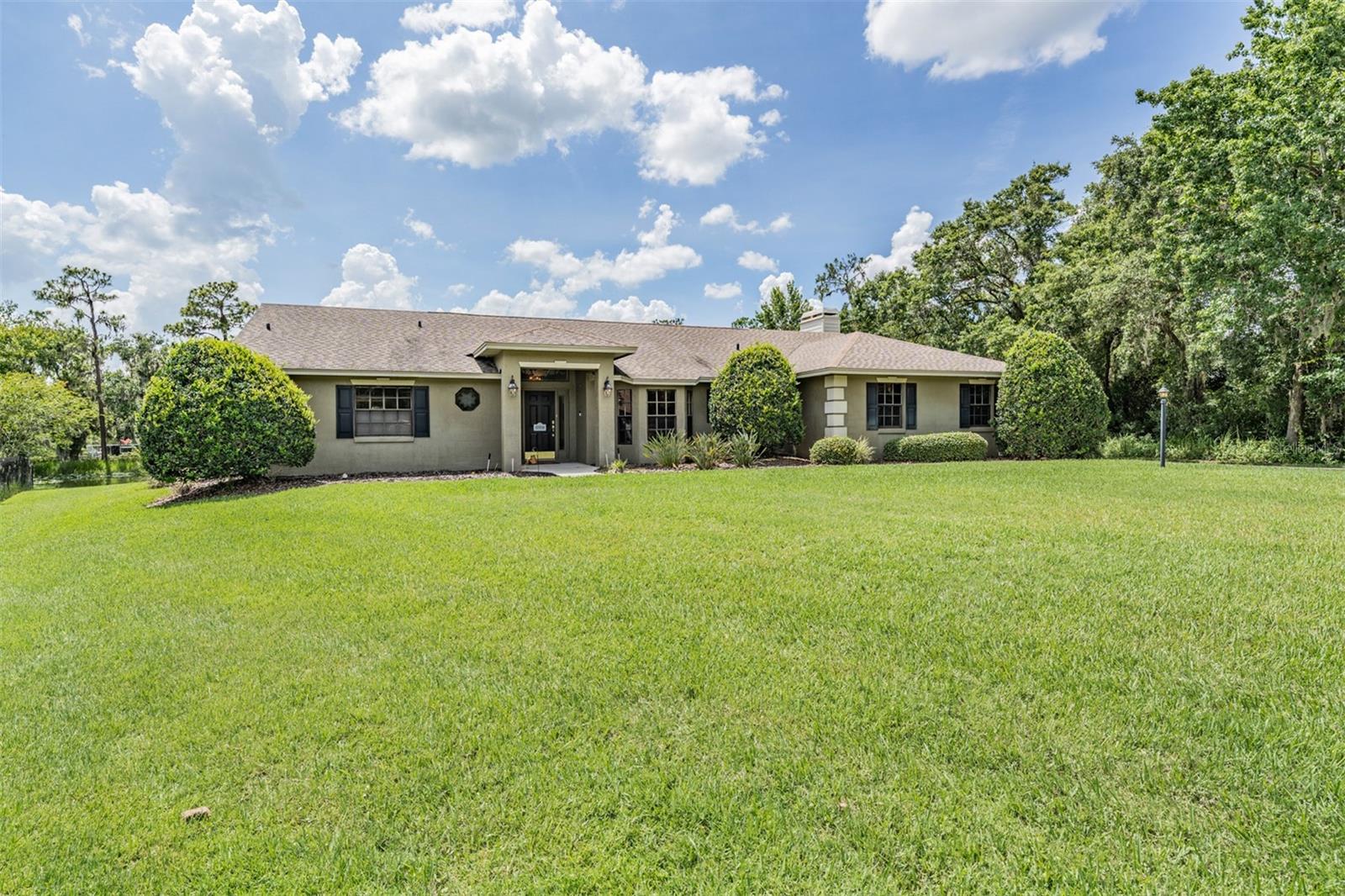 Welcome to 2925 Deerbrook Dr., a beautifully maintained pool home located in the highly sought after Deer Brooke community in Southwest Lakeland. Known for its clean, tree lined streets, peaceful atmosphere, and friendly vibe, Deer Brooke offers the ideal balance of comfort and convenience with no required HOA. This spacious 4 bedroom, 2 bath home sits on over an acre of land and features a thoughtfully designed split-bedroom layout, vaulted ceilings, and an oversized primary suite with a large bay window sitting area. The fully renovated primary bathroom feels like a spa with marble look tile, a walk-in shower with frameless glass, and a deep soaking tub. Step outside to your private screened pool overlooking a tranquil pond perfect for relaxing mornings or entertaining evenings. A standout feature is the detached garage with a charming wraparound porch, ideal for a workshop, additional storage, or a covered outdoor sitting area.This property is also equipped with a professionally installed solar energy system, The solar panels have significantly reduced monthly electric costs. Average electric bills run approximately $150/monthly, delivering long term efficiency and sustainability without compromising comfort. With well kept interiors, excellent curb appeal, and thoughtful upgrades this home truly has it all. Located just minutes from shopping, dining, and Interstate 4, and in a community where pride of ownership is evident this home is a rare find in one of Lakeland’s most desirable neighborhoods. Schedule your private tour today!
