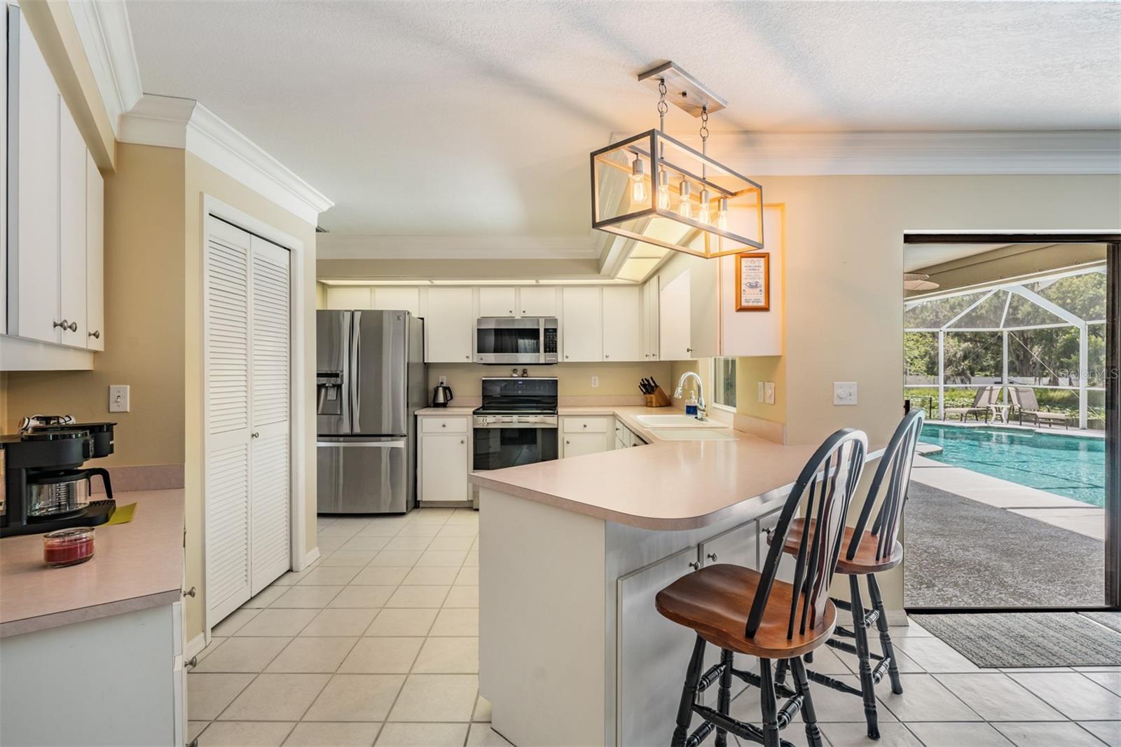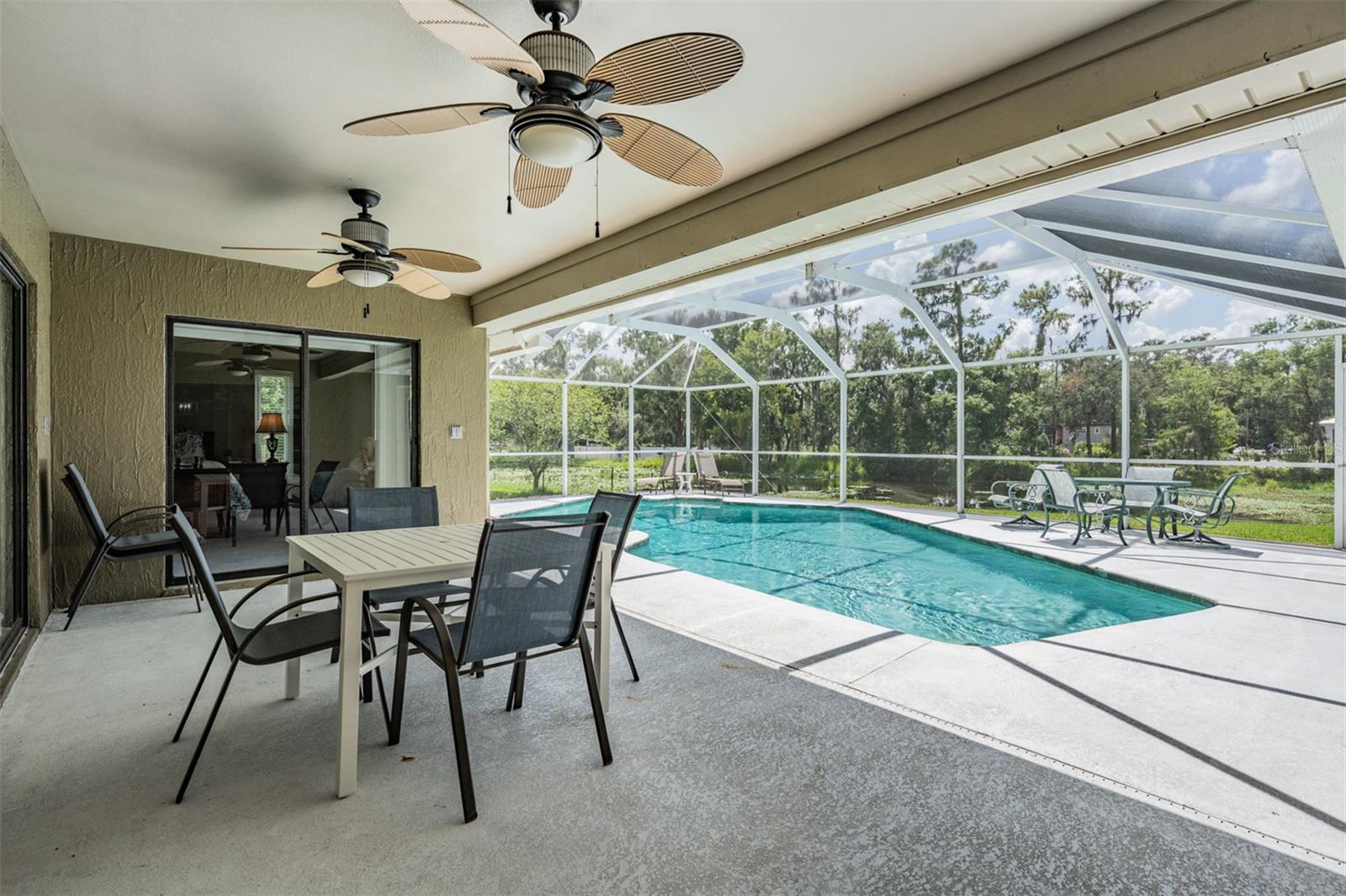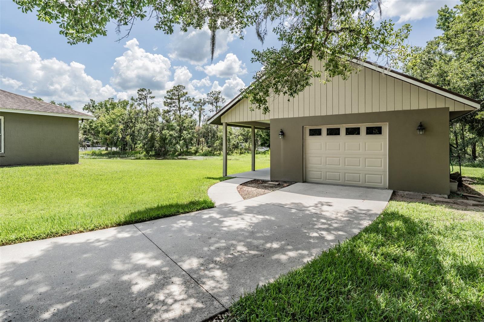 Welcome to 2925 Deerbrook Dr., a beautifully maintained pool home located in the highly sought after Deer Brooke community in Southwest Lakeland. Known for its clean, tree lined streets, peaceful atmosphere, and friendly vibe, Deer Brooke offers the ideal balance of comfort and convenience with no required HOA. This spacious 4 bedroom, 2 bath home sits on over an acre of land and features a thoughtfully designed split-bedroom layout, vaulted ceilings, and an oversized primary suite with a large bay window sitting area. The fully renovated primary bathroom feels like a spa with marble look tile, a walk-in shower with frameless glass, and a deep soaking tub. Step outside to your private screened pool overlooking a tranquil pond perfect for relaxing mornings or entertaining evenings. A standout feature is the detached garage with a charming wraparound porch, ideal for a workshop, additional storage, or a covered outdoor sitting area.This property is also equipped with a professionally installed solar energy system, The solar panels have significantly reduced monthly electric costs. Average electric bills run approximately $150/monthly, delivering long term efficiency and sustainability without compromising comfort. With well kept interiors, excellent curb appeal, and thoughtful upgrades this home truly has it all. Located just minutes from shopping, dining, and Interstate 4, and in a community where pride of ownership is evident this home is a rare find in one of Lakeland’s most desirable neighborhoods. Schedule your private tour today!