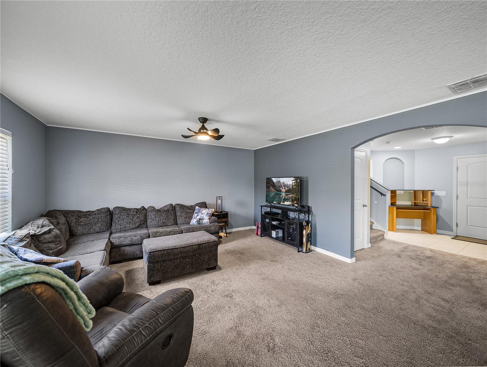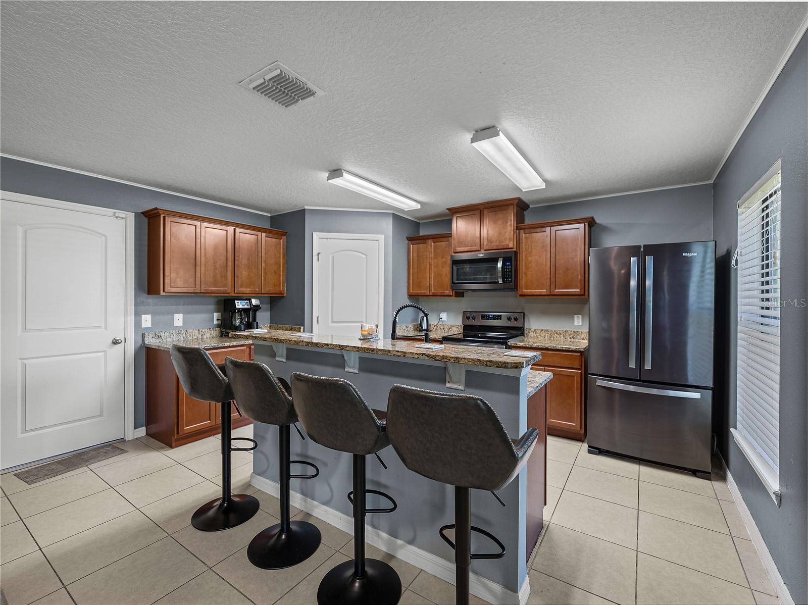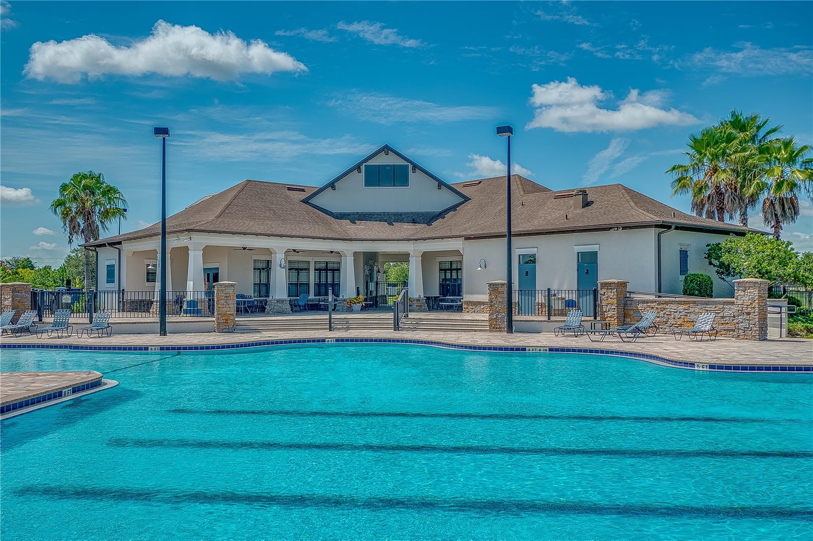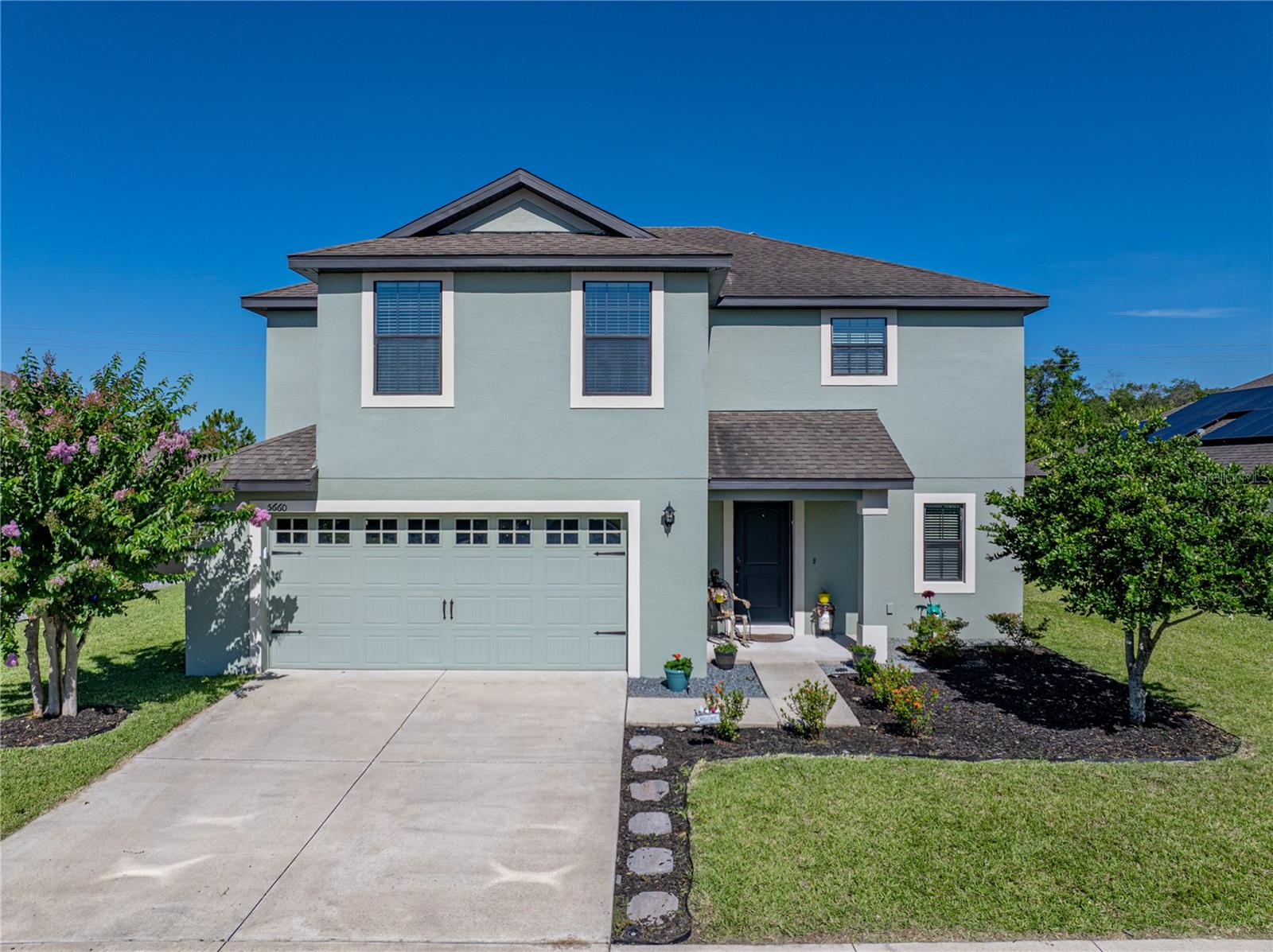 **Motivated Sellers**Sidewalk-lined streets, fresh landscaping, and a welcoming covered entryway set the tone for this beautifully maintained, 2017-built, 4 bedroom, 2.5 bath home in the amenity-rich community of The Villages at Bridgewater. Designed with comfortable living and easy gatherings in mind, this two-story home features a spacious layout, stylish finishes, and an expansive fenced backyard. Step inside to an easy-flowing, open-concept main living area where a 19x14 living room offers plush carpeting, a ceiling fan, and sliding glass doors that lead out to the covered patio. The flow continues seamlessly into the kitchen and dining area, where a gorgeous eat-in chef's kitchen is nicely equipped with rich wood cabinetry, granite countertops, a central island with breakfast bar seating, a walk-in pantry, and sleek black stainless steel appliances. Quick access to the 2-car garage makes unloading groceries a breeze, and a conveniently located half bath adds extra functionality on the main floor. Upstairs, a generous landing creates an ideal flex space for a home office, play area, or additional storage. All 4 bedrooms, 2 full baths, and the laundry room are thoughtfully arranged on the second floor, including a roomy and serene owner's suite with a large walk-in closet and a well-appointed ensuite featuring dual sinks, a water closet, a walk-in shower, and a separate garden tub. Three additional bedrooms, all generously sized with plush carpeting and built-in closets, share the home's second full bath, which has dual sinks and a tub/shower combo. Throughout the house, trendy paint colors and a smart layout create a warm and inviting atmosphere. Outdoors, the large fenced backyard offers a covered patio and plenty of room to relax or entertain. Residents here enjoy community cable and internet, as well as access to Bridgewater's resort-style amenities, including a fitness center, a sparkling swimming pool, a playground, tennis and basketball courts, and even a tranquil fishing dock! All of this and more in a central Lakeland location with easy access to everyday essentials. Don't miss your opportunity to live in this vibrant community; schedule your private showing today!