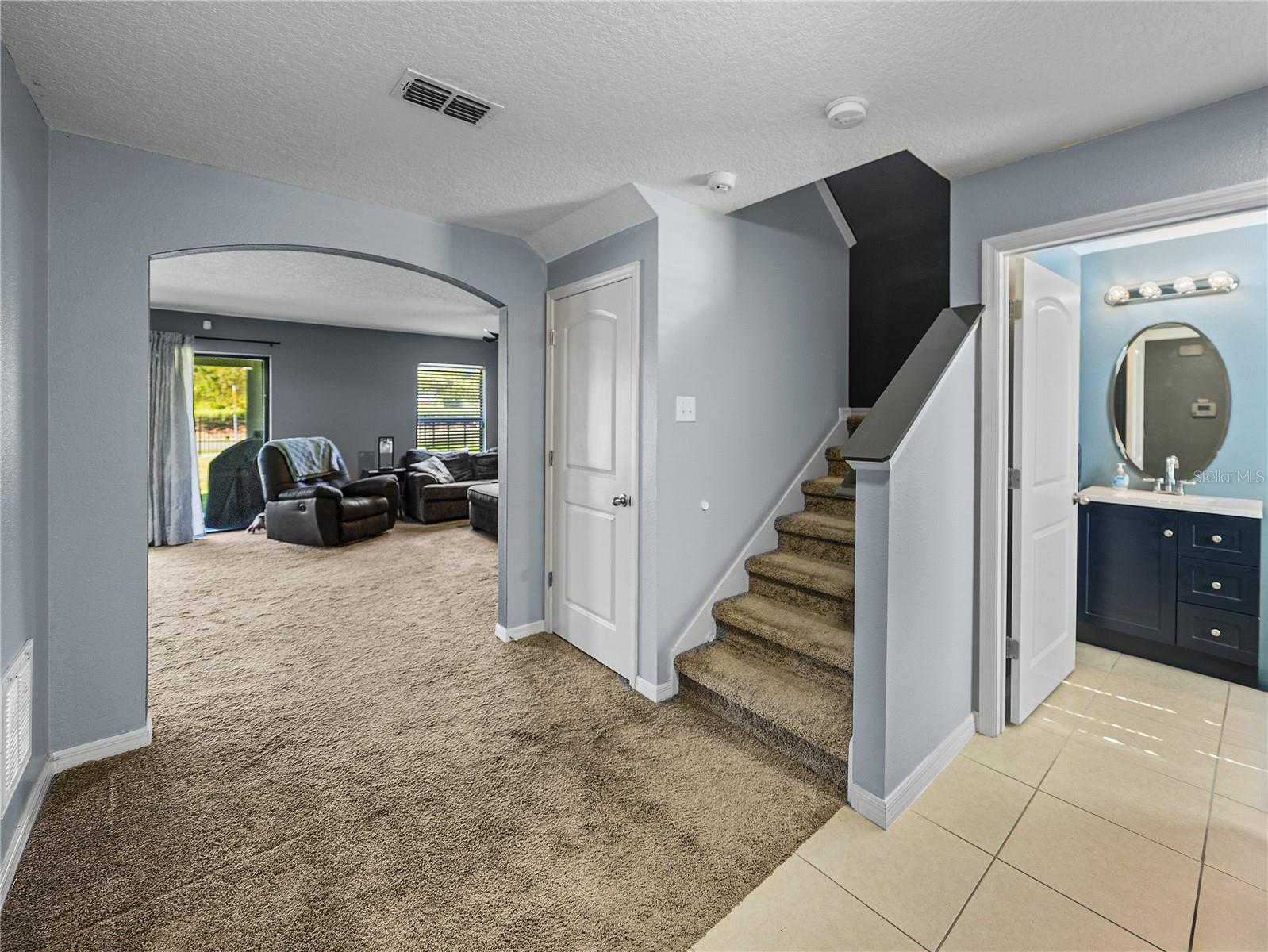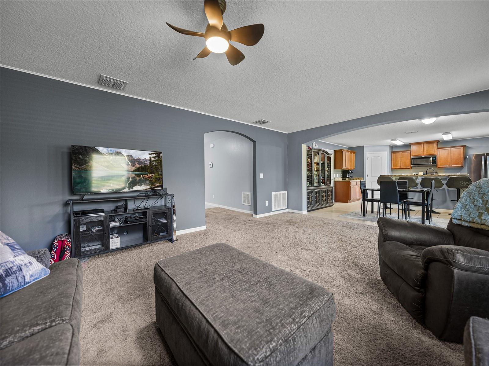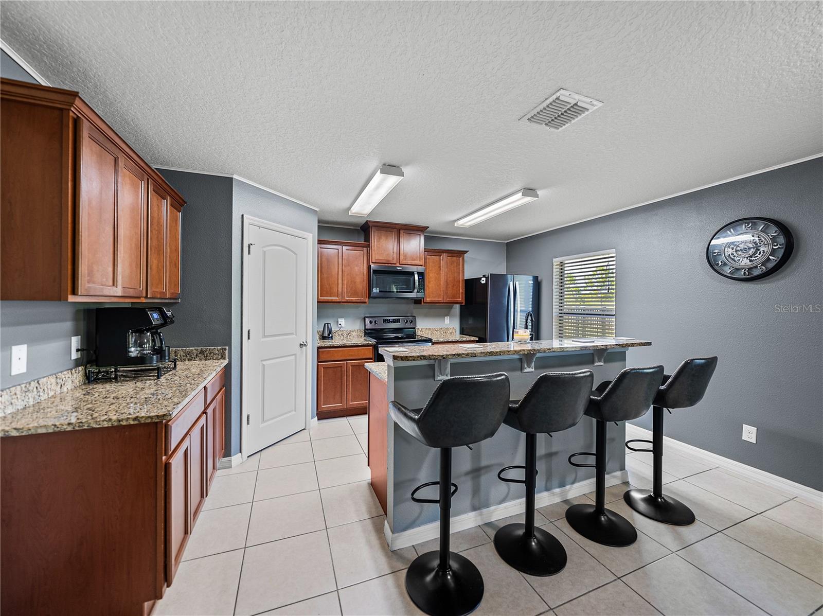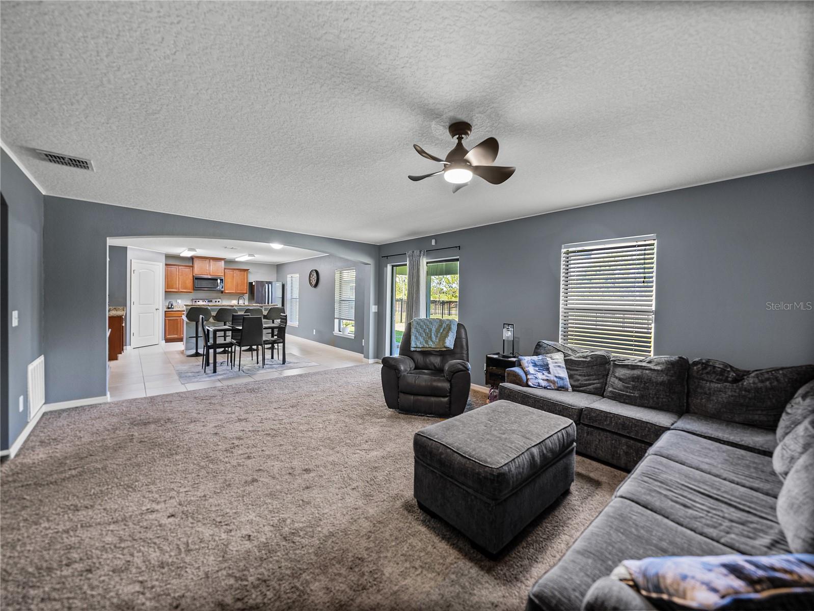 **Motivated Sellers**Sidewalk-lined streets, fresh landscaping, and a welcoming covered entryway set the tone for this beautifully maintained, 2017-built, 4 bedroom, 2.5 bath home in the amenity-rich community of The Villages at Bridgewater. Designed with comfortable living and easy gatherings in mind, this two-story home features a spacious layout, stylish finishes, and an expansive fenced backyard. Step inside to an easy-flowing, open-concept main living area where a 19x14 living room offers plush carpeting, a ceiling fan, and sliding glass doors that lead out to the covered patio. The flow continues seamlessly into the kitchen and dining area, where a gorgeous eat-in chef's kitchen is nicely equipped with rich wood cabinetry, granite countertops, a central island with breakfast bar seating, a walk-in pantry, and sleek black stainless steel appliances. Quick access to the 2-car garage makes unloading groceries a breeze, and a conveniently located half bath adds extra functionality on the main floor. Upstairs, a generous landing creates an ideal flex space for a home office, play area, or additional storage. All 4 bedrooms, 2 full baths, and the laundry room are thoughtfully arranged on the second floor, including a roomy and serene owner's suite with a large walk-in closet and a well-appointed ensuite featuring dual sinks, a water closet, a walk-in shower, and a separate garden tub. Three additional bedrooms, all generously sized with plush carpeting and built-in closets, share the home's second full bath, which has dual sinks and a tub/shower combo. Throughout the house, trendy paint colors and a smart layout create a warm and inviting atmosphere. Outdoors, the large fenced backyard offers a covered patio and plenty of room to relax or entertain. Residents here enjoy community cable and internet, as well as access to Bridgewater's resort-style amenities, including a fitness center, a sparkling swimming pool, a playground, tennis and basketball courts, and even a tranquil fishing dock! All of this and more in a central Lakeland location with easy access to everyday essentials. Don't miss your opportunity to live in this vibrant community; schedule your private showing today!