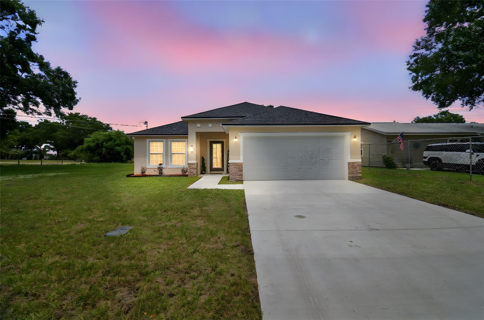 Welcome to this BRAND-NEW CONSTRUCTION home, ideally located at the end of a peaceful CUL-DE-SAC in Lakeland, Florida. Set on an OVERSIZED LOT, this stunning residence offers the perfect combination of privacy, flexibility, and modern comfort. Featuring 3 BEDROOMS, 2 FULL BATHS, and a DEDICATED OFFICE/DEN, this home is designed to accommodate today's dynamic lifestyles. Step inside to experience the beauty of an OPEN-CONCEPT FLOOR PLAN, where natural light floods spacious living and dining areas—perfect for both everyday living and effortless entertaining. The DREAM KITCHEN is a true centerpiece, boasting a LARGE CENTER ISLAND, sleek finishes, and abundant counter space ideal for hosting family and friends. Retreat to the PRIMARY SUITE, complete with a SPACIOUS WALK-IN CLOSET and a LUXURIOUS EN-SUITE BATHROOM featuring a DUAL-SINK VANITY and an EXPANSIVE WALK-IN SHOWER—a true sanctuary to unwind. A UTILITY CLOSET with WASHER & DRYER HOOKUPS adds everyday convenience right where you need it. The home includes a TWO-CAR GARAGE WITH EPOXY FLOORING and a DOUBLE DRIVEWAY, offering both style and functionality. Best of all, enjoy true financial and lifestyle freedom with NO HOA, NO CDD, and NO FLOOD ZONE—no unnecessary restrictions, no flood insurance required, and the rare ability to store your RV, BOAT, OR TRAILER right on your property. Equipped with a PRIVATE WELL AND SEPTIC SYSTEM, this home delivers long-term savings and true SELF-SUFFICIENCY. It’s perfect for those seeking control over rising utility costs while enjoying a more sustainable way of living. Located minutes from LAKELAND SQUARE MALL, LAKESIDE VILLAGE, TOP-RATED SCHOOLS, PARKS, and MAJOR HIGHWAYS, this home blends peaceful suburban living with everyday convenience. Don’t miss this rare opportunity to own a MOVE-IN READY, BRAND-NEW HOME in a warm, welcoming community!