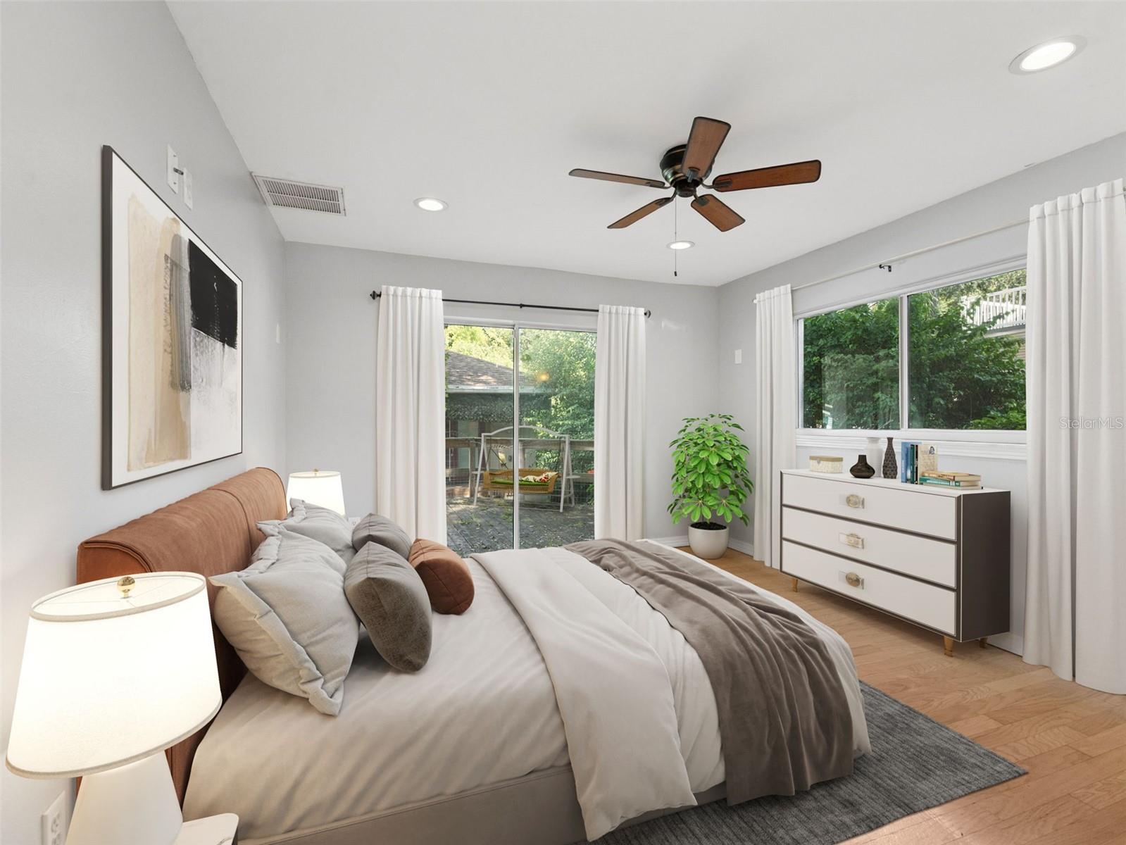 Amazing Lake Hollingsworth homes, yes two homes sitting on nearly a 1/2 acre, just a block from the most beautiful lake near downtown Lakeland. These properties have been amazing rentals, but the possibilities are endless with the detached ADU. This home qualifies for a 1% lender credit with preferred lender and sellers are offering a $10,000 credit towards new flooring at closing. The main home (Frank Lloyd Wright inspired) features 3 spacious bedrooms, 2 bath, a master bedroom with ensuite and walk-in closet, open concept living spaces, with many recent updates including the roof and plumbing. The detached AUD built in 2017 features 1 bedroom, 1 bath, with a beautiful fully equipped kitchen, updated appliances, newer AC and washer/dryer combo included. Don't miss the chance to make this Lakeland gem your own!