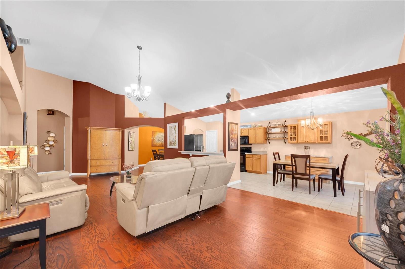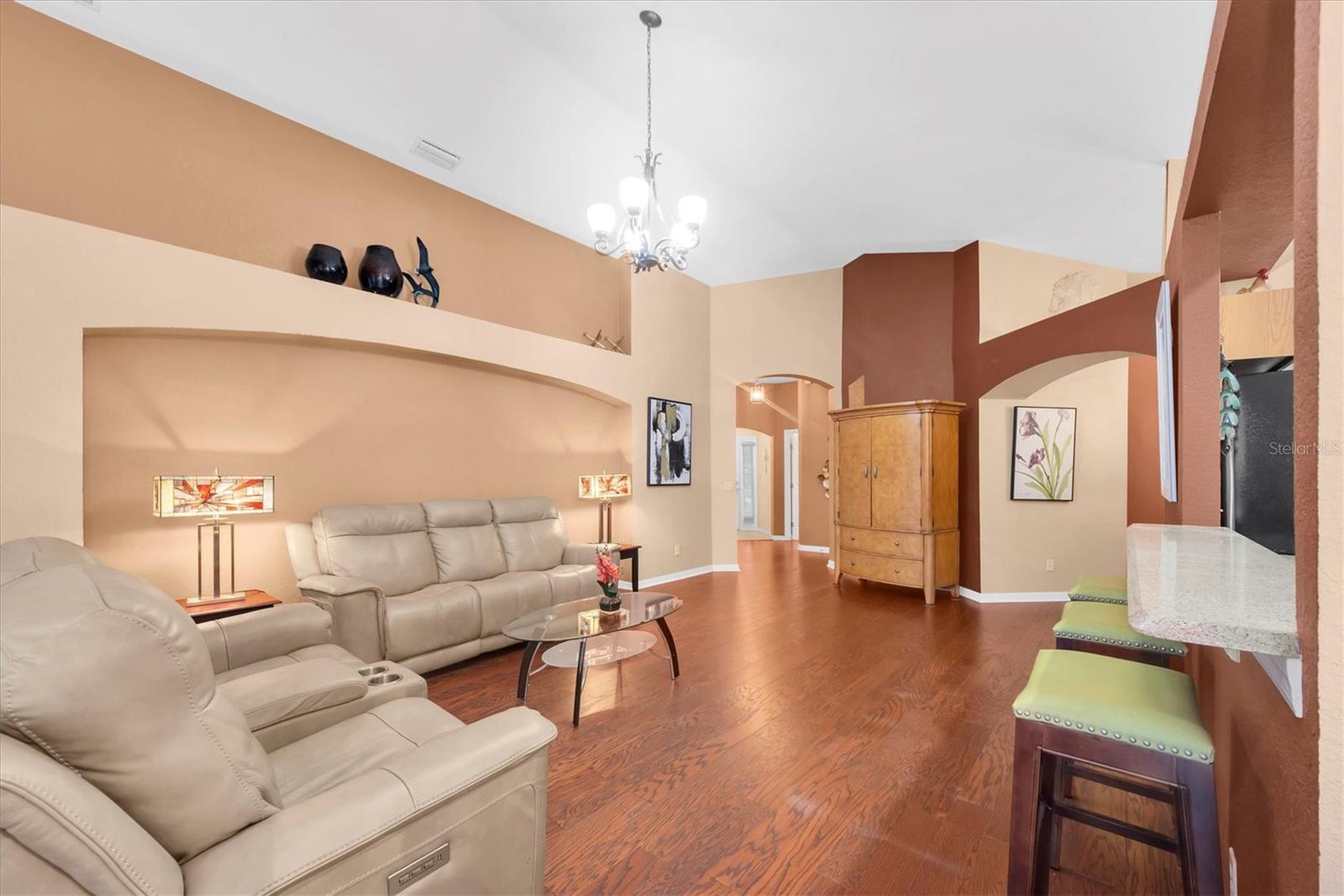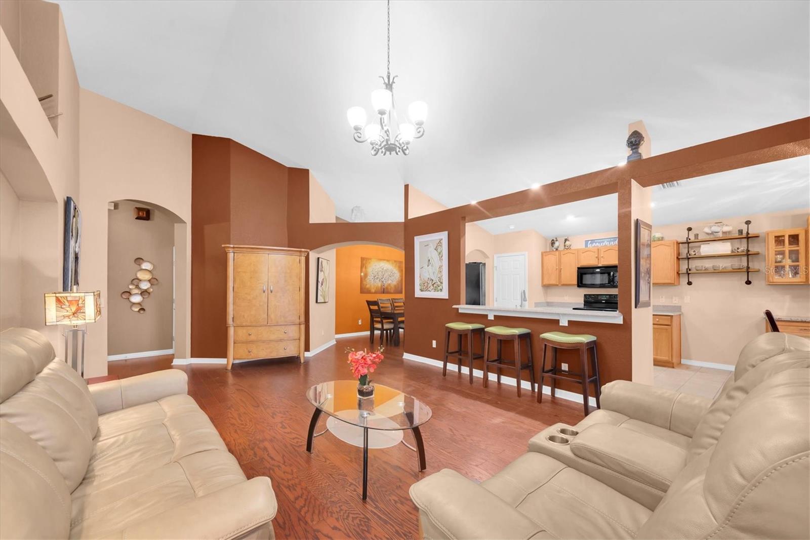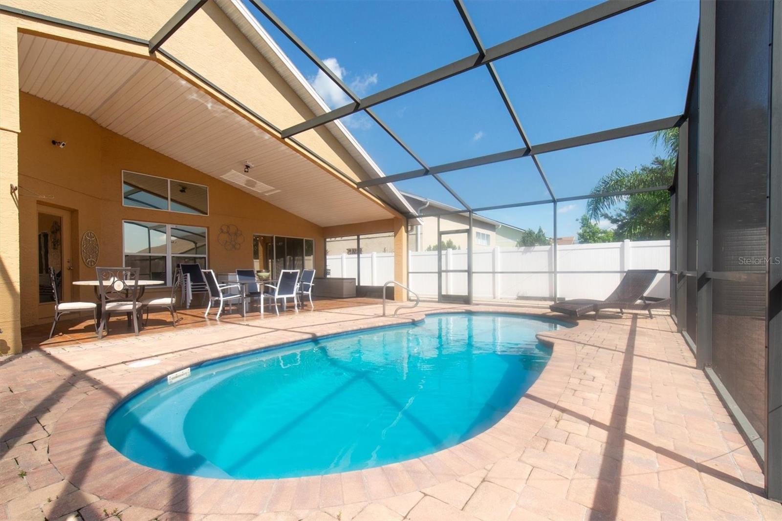 Welcome to a beautifully designed pool home that combines thoughtful details, modern finishes, and resort-style outdoor living. Built in 2007, this property offers a highly desirable split floor plan and a lifestyle of comfort and convenience. The home greets you with a screened-in covered front porch—an ideal spot to relax and unwind. Inside, the foyer framed by an elegant archway sets the tone for the rest of the home. Just off the entry, a private in-law suite features its own full bathroom, while two additional bedrooms share a conveniently located bath. Beautiful wood flooring flows through the main living areas and two bedrooms. The upgraded kitchen showcases granite countertops, plenty of workspace, and a cozy breakfast nook overlooking the sparkling saltwater pool. A formal dining room sits just off the kitchen, perfect for gatherings. The primary suite, privately situated at the rear of the home, offers double-door entry, a walk-in closet, and direct access to the pool and lanai. The luxurious en-suite bathroom includes dual vanities, a walk-in shower, garden tub, private water closet, and generous linen storage. Step outside to your very own Florida oasis. The backyard has been fully paved for easy maintenance and maximum enjoyment. The screened “birdcage” enclosure surrounds the pool and lanai, while just beyond, a fire pit and lounge area create the perfect setting for entertaining. Additional features include a 2-car garage with built-in workbench and storage cabinets. Located in desirable north Lakeland, this home is close to shopping, dining, and everyday conveniences. Enjoy nearby recreation at Lake Parker Park, Hollis Garden, and Joker Marchant Stadium—spring training home of the Detroit Tigers. Nature lovers will appreciate Circle B Bar Reserve just a short drive away. With easy access to I-4, you’re perfectly positioned between Orlando and Tampa, making world-class attractions, business hubs, and Gulf Coast beaches less than an hour away. This home is truly move-in ready and designed for both comfort and style.