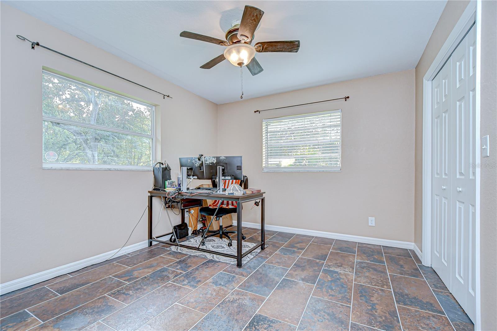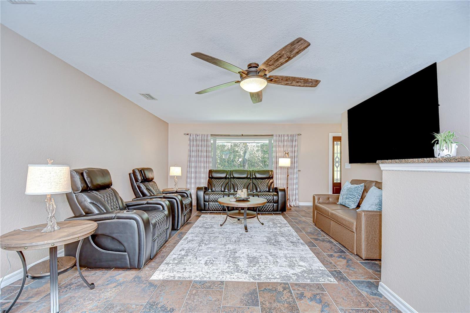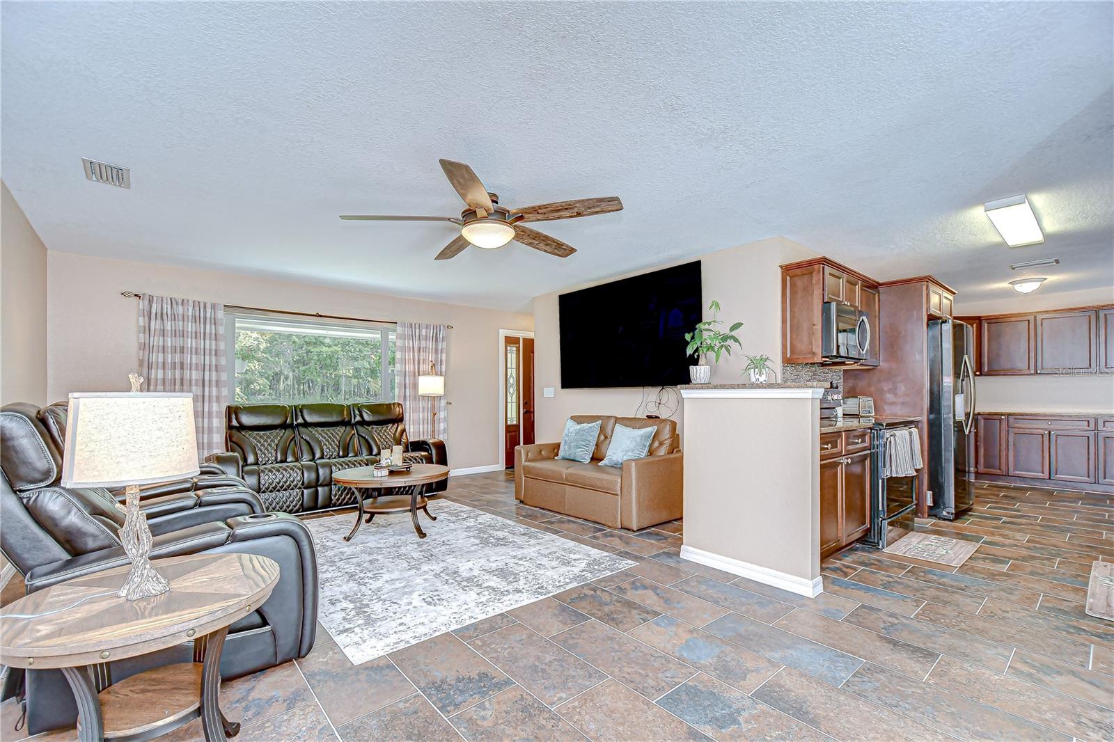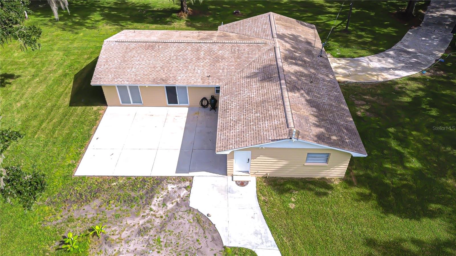 Discover the perfect balance of peace and convenience with this one-of-a-kind property! Nestled on 5.43 acres of stunning land, this home offers the tranquility of country living while keeping you just minutes from major highways, shopping centers, and everyday essentials. This exceptional property is framed by towering oak trees, including a magnificent centuries-old oak that greets you at the entrance—a living landmark that sets the tone for the peace and history found here. Inside, the home shines with brand-new porcelain tile floors (2025) throughout and a designer-updated kitchen boasting black stainless appliances, generous counter space, and plenty of storage. The formal dining room is spacious and inviting, with sliding glass doors that open to tranquil backyard views. The primary suite offers a peaceful escape with its en-suite bath and large walk-in closet, while two additional bedrooms and a full bath sit privately on the opposite side of the home. Recent updates provide comfort and peace of mind: the A/C units for both the home and mancave were replaced in 2025, along with the water heater (2025), ensuring efficient, worry-free living. Outside, the property is full of surprises. The insulated “man cave” workshop is fully equipped with new AC (2025), a dehumidifier, abundant storage, and workspace, plus a double-door entry measuring 9 ft tall by 10 ft wide—perfect for projects big or small. A cozy “she shed” offers another private escape, while the expansive outdoor patio is the perfect place to relax and take in the sights and sounds of nature. Deer, wild turkey, and owls often wander the property, adding to its serene charm. And the best part? No HOA! With 5.43 acres of usable land, you’re free to bring your RV, horses, toys, and animals. A 1hp submersible well pump ensures you’ll always have more than enough water—truly, “enough to service a small village.” You’ll also find many old-growth camphor trees, long leaf pines, camphor, cypress, and native (wild) FL orange trees, and an abundance of large shade trees, which not only add beauty and character but also naturally help keep mosquitoes at bay. This property is a rare find—a home, a retreat, and a piece of history all in one. Here, every oak and camphor tree has a story, and now it’s ready to be part of yours.