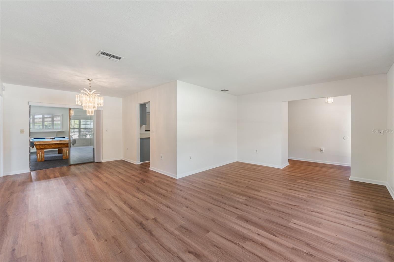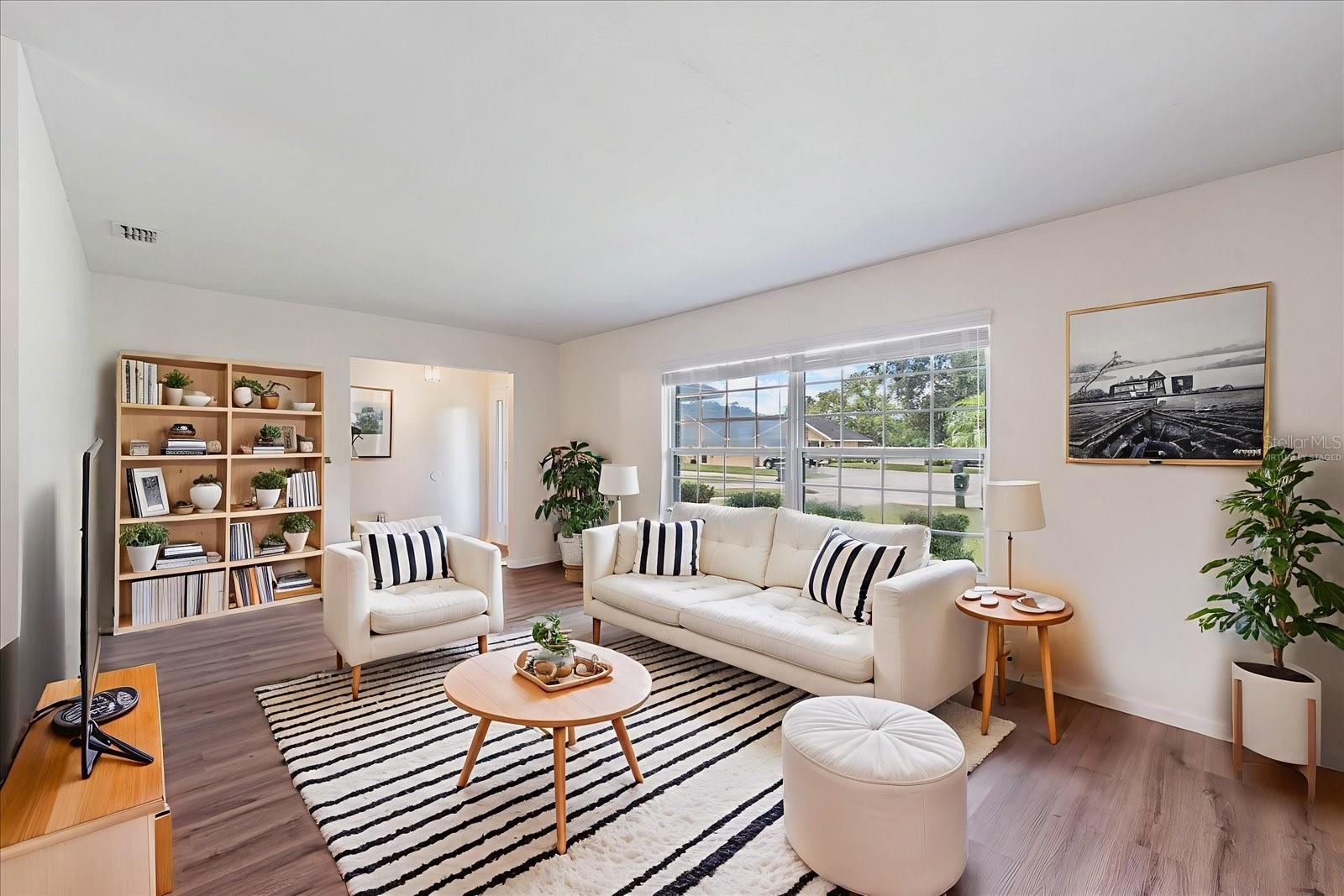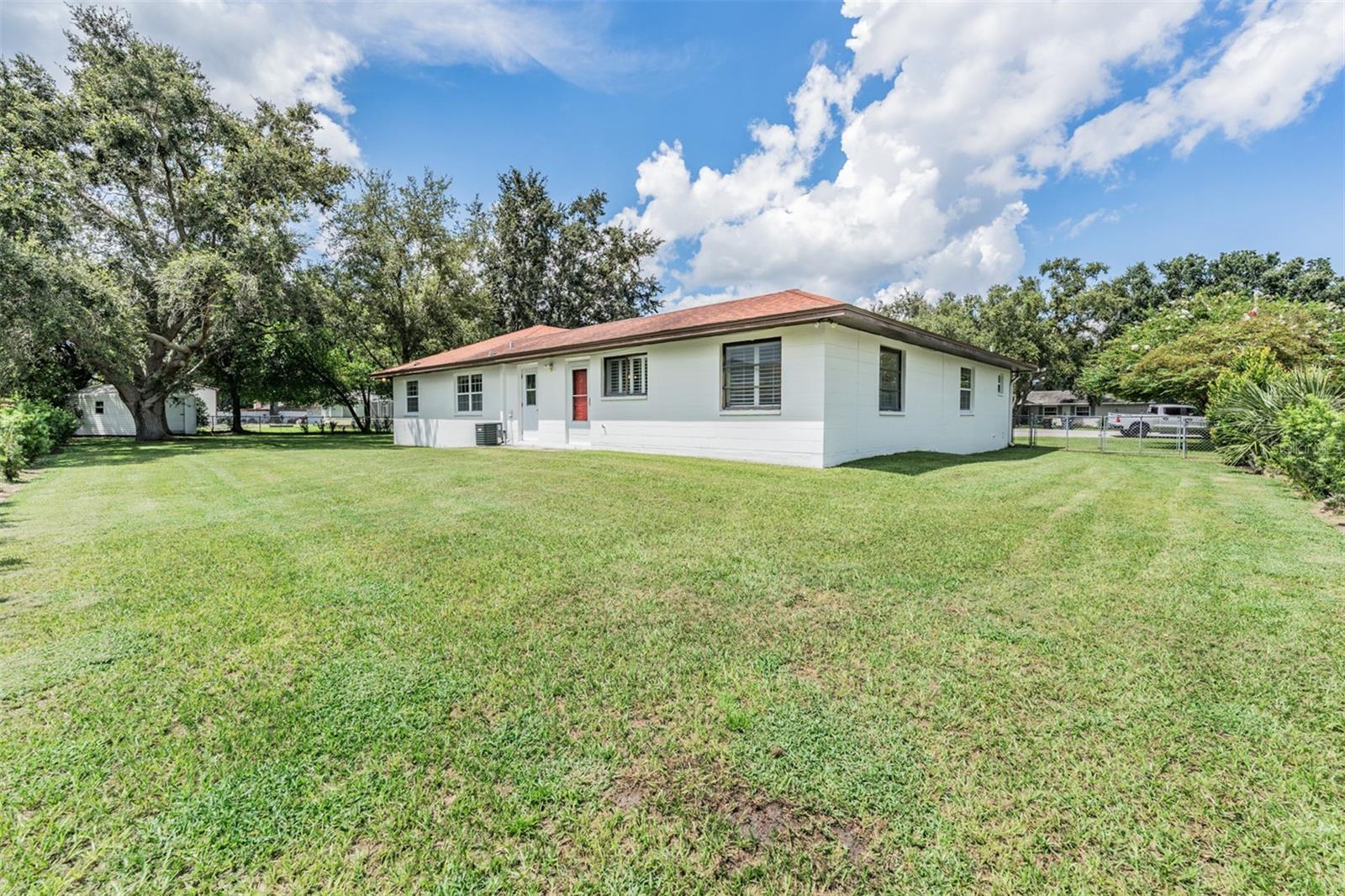 One or more photo(s) has been virtually staged. Set on a quiet cul-de-sac in sought-after South Lakeland, this oversized 3-bed, 3-bath home delivers flexible living on an over one-third-acre, fully fenced lot—with no HOA. Just minutes from George W. Jenkins Senior High on Lakeland Highlands Rd, the location makes everyday life effortless. Inside, durable wood-look flooring carries through most spaces. An L-shaped living/dining room welcomes guests, while the central kitchen anchors the home with a built-in bench breakfast nook, pass-through, and direct access to the great room. The private primary suite features a deep walk-in closet and updated ensuite (shower). On the opposite side, an expansive great room offers space for movie nights or a casual dining nook beside the kitchen. Two secondary bedrooms share a convenient hall bath. A rear bonus addition (with separate entrance and oversized bath) adapts to your needs: game room, extra living room, or conversion to an in-law/guest suite—ideal for multi-gen living or a future pool bath setup. Recent updates (per seller): replumbed; water heater (2024); septic drain field ~2 years old; updated vanities; new primary shower; roof approx. 8–10 years old. If you’re seeking space, flexibility, and a quiet South Lakeland address—without HOA restrictions—look no further!