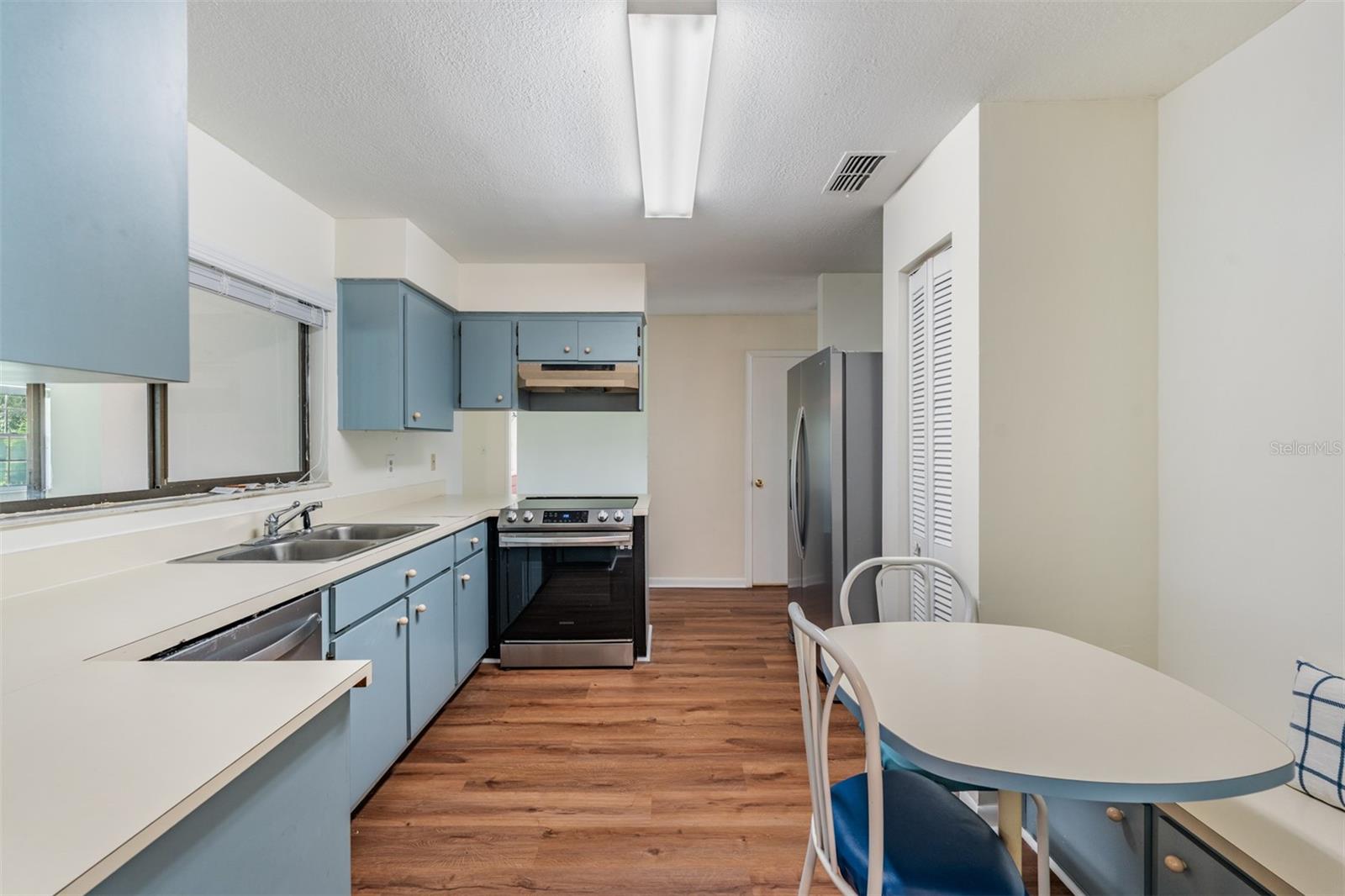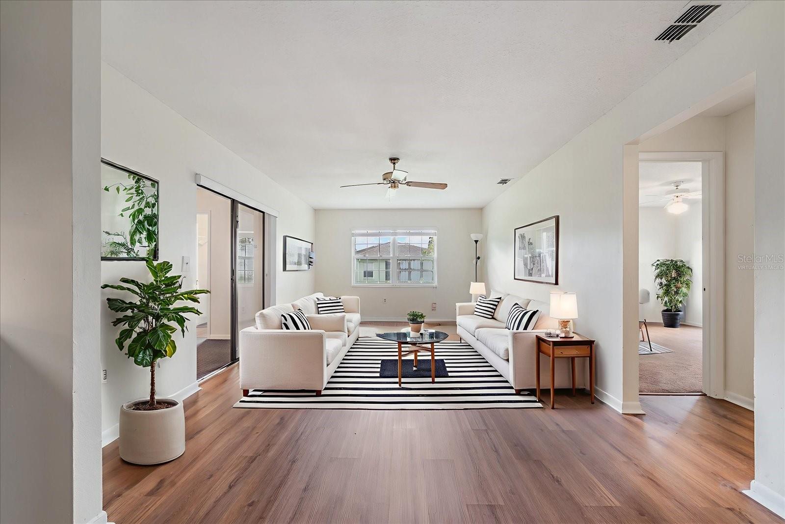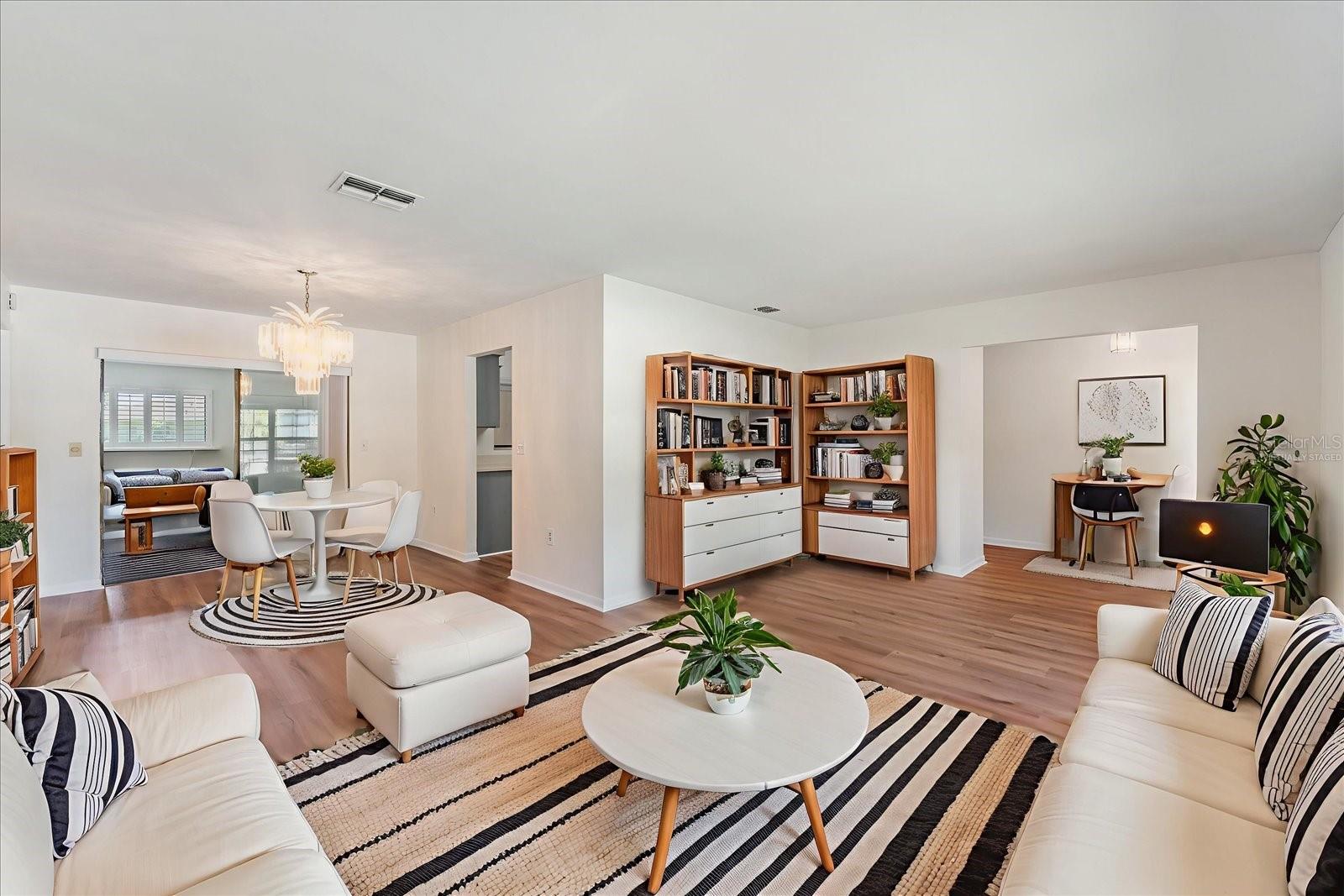 One or more photo(s) has been virtually staged. Set on a quiet cul-de-sac in sought-after South Lakeland, this oversized 3-bed, 3-bath home delivers flexible living on an over one-third-acre, fully fenced lot—with no HOA. Just minutes from George W. Jenkins Senior High on Lakeland Highlands Rd, the location makes everyday life effortless. Inside, durable wood-look flooring carries through most spaces. An L-shaped living/dining room welcomes guests, while the central kitchen anchors the home with a built-in bench breakfast nook, pass-through, and direct access to the great room. The private primary suite features a deep walk-in closet and updated ensuite (shower). On the opposite side, an expansive great room offers space for movie nights or a casual dining nook beside the kitchen. Two secondary bedrooms share a convenient hall bath. A rear bonus addition (with separate entrance and oversized bath) adapts to your needs: game room, extra living room, or conversion to an in-law/guest suite—ideal for multi-gen living or a future pool bath setup. Recent updates (per seller): replumbed; water heater (2024); septic drain field ~2 years old; updated vanities; new primary shower; roof approx. 8–10 years old. If you’re seeking space, flexibility, and a quiet South Lakeland address—without HOA restrictions—look no further!