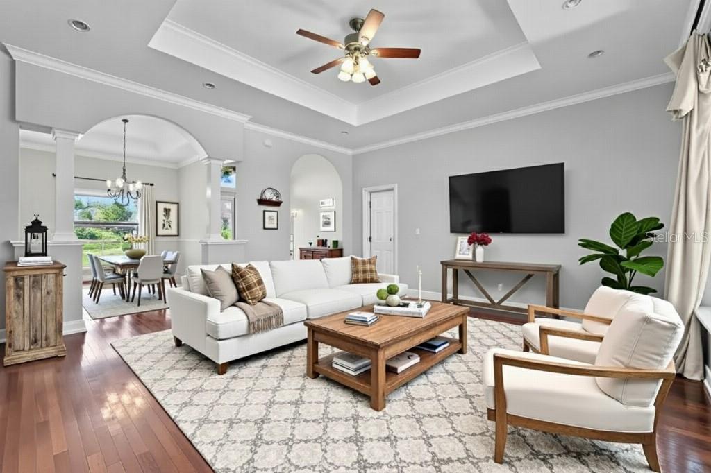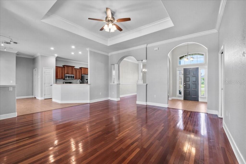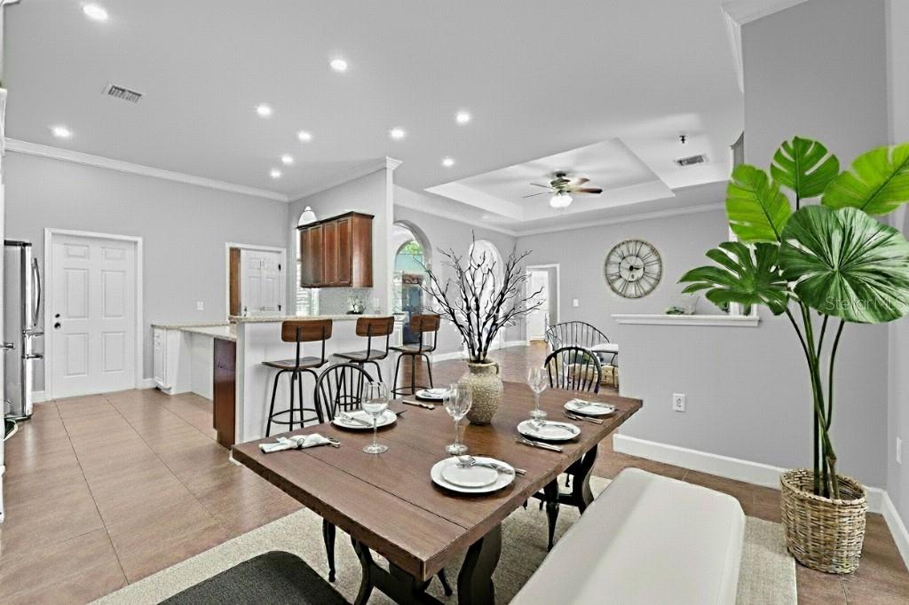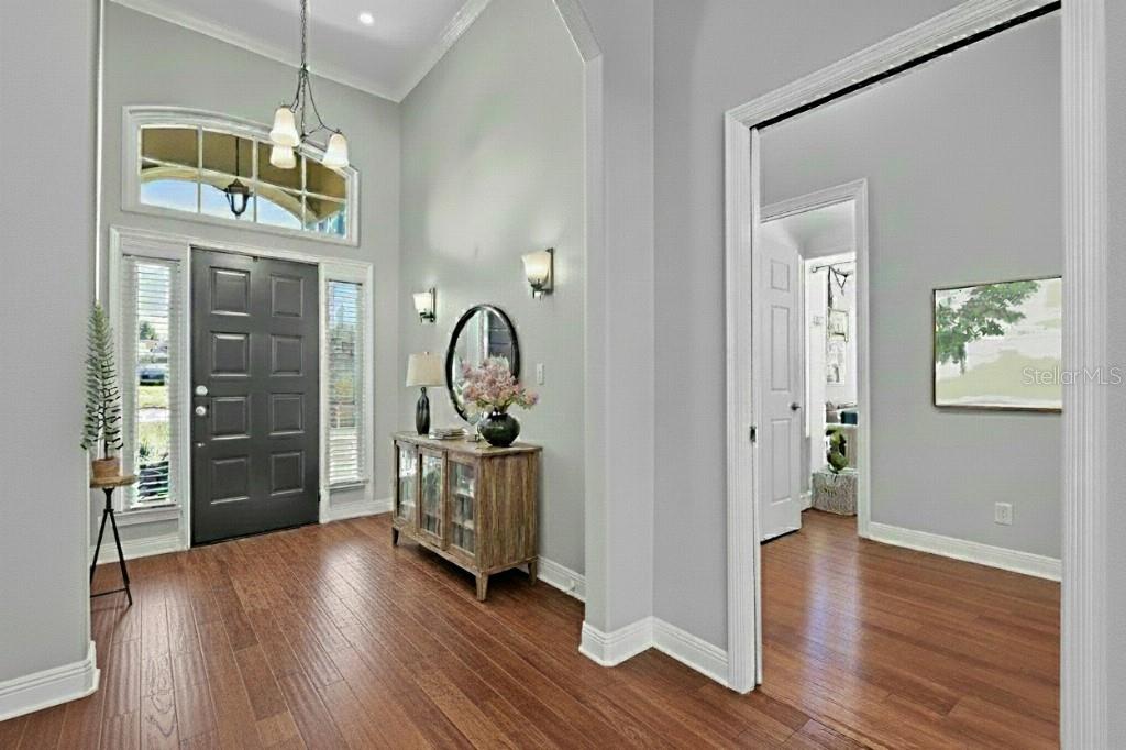 Welcome to this beautifully maintained move-in ready 3 bedroom, 2 bathroom corner-lot home in the back of the highly sought-after gated Highlands Creek community of South Lakeland (33813). This property is in a USDA 0$ down eligible area and also qualifies for FHA, VA, and conventional loans, making it an attractive and versatile option for a wide range of potential buyers. Major updates recently include a BRAND NEW (2025) ROOF and BRAND NEW (2025) A/C SYSTEM. Additional highlights include a screened-in back porch, beautiful professionally-done landscaping, a fully fenced backyard, and an oversized side-entry garage with built-in storage and workbench, ideal for projects, hobbies, or extra space. Step inside to soaring ceilings, abundant natural light, and an open floor plan designed for modern living. Wood floors flow throughout the main living areas, leading to a spacious kitchen with Corian countertops, solid wood cabinetry, and stainless-steel appliances. The oversized master suite offers a private retreat with a large walk-in closet, dual vanities, garden tub, and separate shower. Conveniently located near top-rated schools, shopping, dining, and major highways, you’ll have an easy commute to Tampa, Orlando, or anywhere in between. Highlands Creek is a quiet, gated neighborhood with remarkably low HOA dues. Don’t miss your chance — homes here rarely last long, and this one is priced to sell quickly. Why this home stands out: • USDA 0$ down eligible area + FHA, VA, and conventional loan options • Brand-new roof (2025) • Brand-new A/C system (2025) • Oversized side-entry garage with built-in storage and workbench • Screened-in back porch overlooking a fully fenced backyard • Beautiful, professional, landscaped corner lot with great curb appeal • Open floor plan with soaring ceilings and abundant natural light • Wood floors in main living areas • Spacious kitchen with Corian countertops, solid wood cabinetry, and stainless-steel appliances • Oversized master suite with walk-in closet, dual vanities, garden tub, and separate shower • Quiet, gated community with low HOA dues • Convenient to top-rated schools, shopping, dining, and major highways Some photos have been virtually staged to show the use of space. Schedule your private showing today.