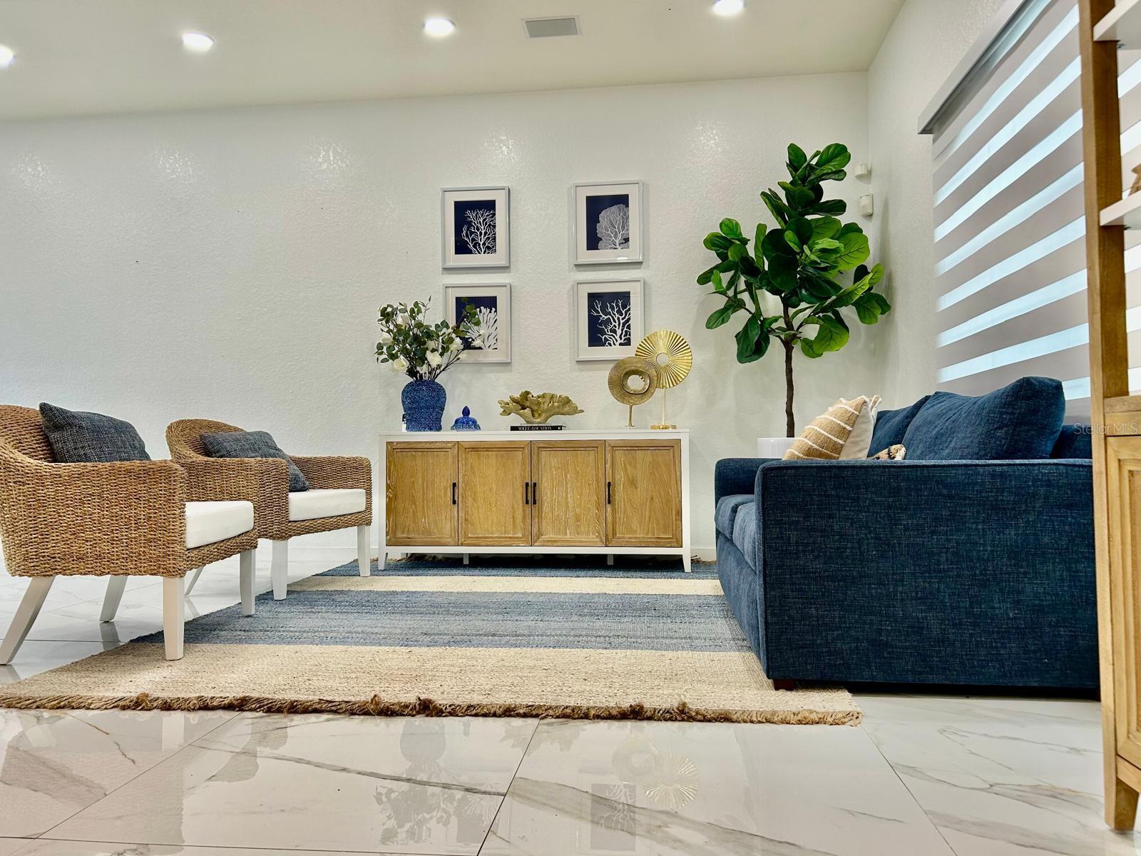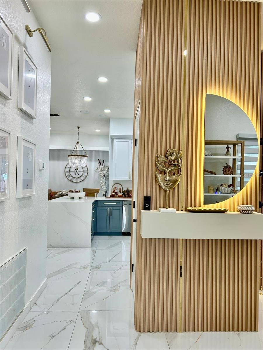 This impressive move-in ready residence combines elegance, comfort, and an exceptional location. The property offers a spacious layout with 4 bedrooms and 2 bathrooms, fully renovated between late 2024 and 2025. The bathrooms are completely new and have never been used, providing a fresh and modern experience from day one. The kitchen features contemporary finishes and high-quality details, complemented by new flooring, a decorative feature wall in the main living area, a stylishly designed entryway, and an integrated wine display. The covered, fully screened-in terrace with direct views of the private pool creates the perfect space to relax, gather with family, or enjoy time with friends. The backyard includes a paved side patio with a fire-pit area and a beautiful mature tree that adds shade and natural charm. With a roof under five years old, energy-efficient lighting, and custom smart blinds, this home is designed for comfort and functionality. Its location is ideal, close to supermarkets, shopping, and essential services, offering a practical and convenient lifestyle.