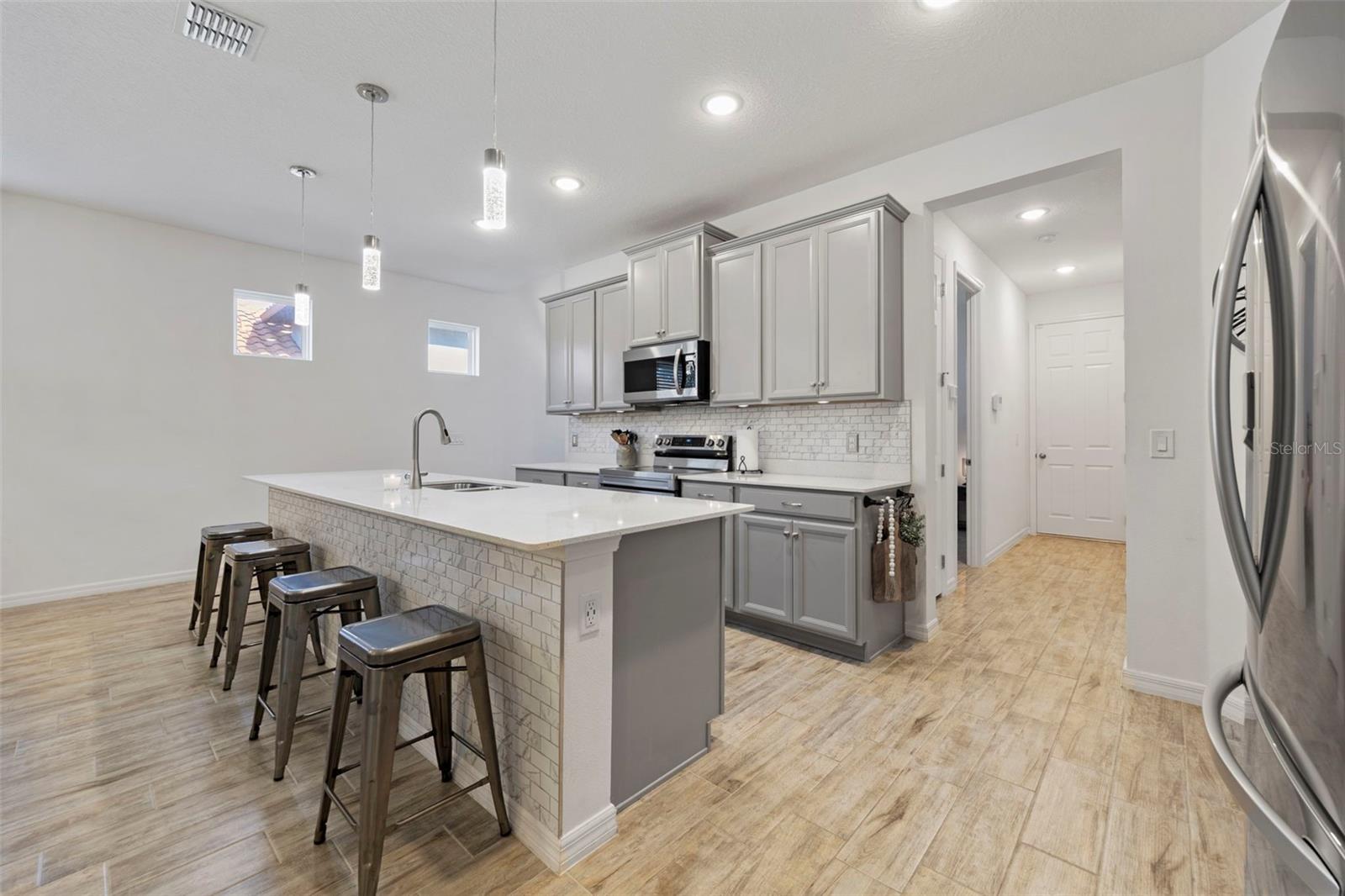 LIVE THE VACATION LIFE in Lakeland’s Premier Gated Community, TerraLargo. This meticulously maintained, upgraded 2022 villa is designed for the modern lifestyle. From the curb, you will love the pavered driveway and tile roof. Inside, the open 3-bedroom, 2-bath layout is flooded with an abundance of natural light. The Chef’s Kitchen boasts granite countertops, an upgraded backsplash, a walk-in pantry, and an oversized island with seating. Upgrades abound, from new luxury fixtures, blinds, gutters and more. The Primary Suite is a tranquil retreat with a large walk-in closet and glass step-in shower. Step onto the screened-in lanai—your private oasis—perfect for relaxing. Enjoy TerraLargo's resort lifestyle with a gorgeous clubhouse, state-of-the-art fitness center, zero-entry pool, playground, tennis, pickleball, and basketball courts.The low HOA fee includes cable, high-speed internet, landscaping, community gate, plus all of the resort amenities! Enjoy the small-town charm of Lakeland. You are less than 5 miles to the quaint downtown (restaurants, shops, farmers market) and under 10 miles to Lakeside Village for premier shopping & dining, lakes, parks and more. Quick access to I-4 means you’re ideally positioned between Tampa & Orlando. This home, community, and location truly has it all! *Home can be sold furnished; all items are negotiable*