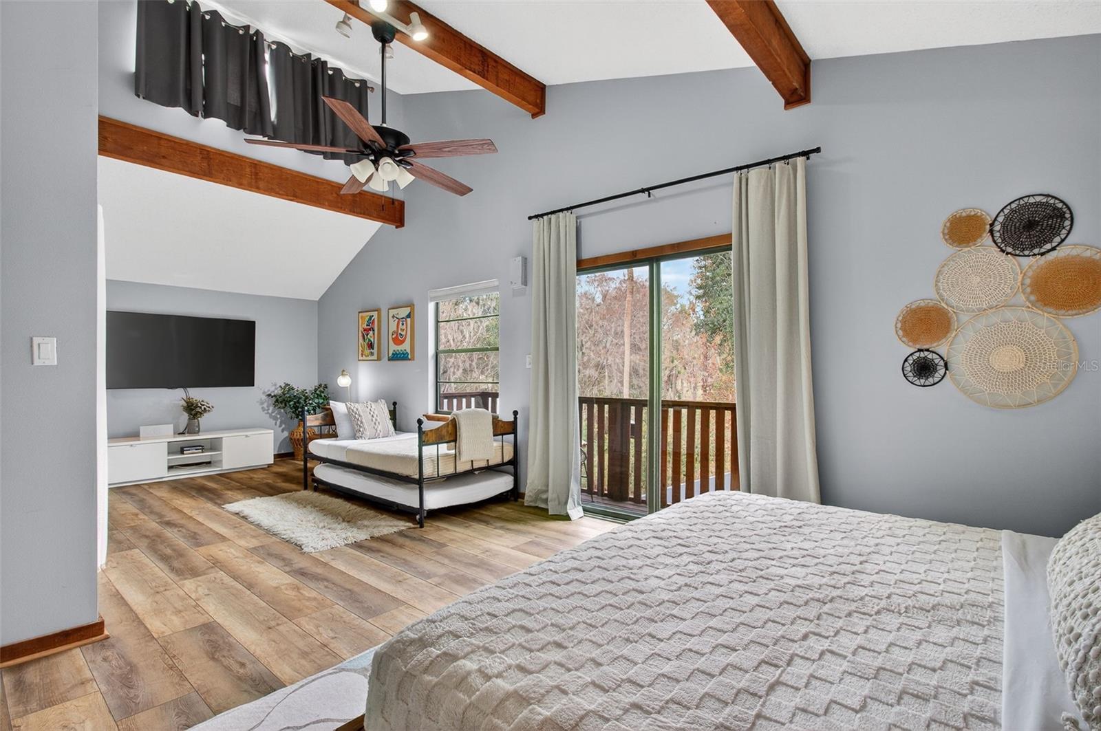 Just 35 minutes from Tampa, down a quiet drive and behind a private gate, awaits a rare and remarkable retreat: 10.1 secluded acres with no HOA, a fully stocked pond, creek, and wildlife - all wrapped around a lovingly maintained, one of-a-kind custom home. And yes, it even comes with its own ATV and trailer included with the sale. This property is currently a vacation home and is offered fully furnished and turnkey, making it ideal as an income-producing short-term rental, private retreat, or multigenerational compound. Prefer a clean slate? The home can also be sold unfurnished, depending on the buyer’s vision. Built in 1982 and owned by two families, this peaceful property welcomes you with the warmth of a well-loved home and the magic of true Florida nature. Grab your fishing pole and head out to the pond, where tilapia and bass await. Wade through the gentle creek that winds behind the home, or blaze your own trails beyond it - on foot or ATV. With man-made berms along the rear boundary, wide-open fields, and towering trees, the land itself invites you to slow down, breathe deep, and start living. The home rises across three levels, beginning with a ground floor that includes garage space, a carport, and ample storage. The main living area sits on the second floor, where the kitchen, dining, living, and family room flow together with large windows and doors opening to panoramic views. A bedroom with its own bathroom and an additional guest bath make this level ideal for everyday living or multigenerational needs. In 2009, a spacious suite and bath were added to this level (not yet reflected in public records), enhancing comfort and privacy. Upstairs, you'll find three more bedrooms - including the serene primary retreat with its own private balcony and treetop views, along with one shared bathroom. Throughout the second and third floors, vaulted ceilings, exposed wood beams, and new vinyl plank flooring give the home a fresh yet rustic charm. Step outside to the screened-in sitting room or one of two open-air balconies to watch wild life by - and, on rare days, perhaps even a Florida panther. The elevator lift, located next to the carport, provides added ease between two levels. Recent updates totaling over $50,000 include new electrical mains ran, EV charger, outlets and switches, interior paint, ceiling fans, light fixtures, custom blinds, hardware, and both garage and exterior doors + a whole-house water softener and filtration system with reverse osmosis in the kitchen ensures clean, safe water at every tap. Outside, the property continues to shine with a metal roof, three sheds, and a 50-amp RV hookup under the home. The crown jewel? A huge, custom-built pole barn with full electric - perfect for events, weddings, gatherings, RV storage, or your next big project. And for electric vehicle owners, an EV charger is already installed. From hosting friends under the stars to wandering the woods in total quiet, this home is more than a place - it’s a feeling. Private. Peaceful. Free. Yet somehow still just a short drive from city life, shopping, dining, and beaches. Acreage like this, with updates, charm, and soul - so perfectly nestled between Tampa and Orlando - is truly a rare find. Come get your slice of paradise and make it yours - however you want! Schedule your private showing today!