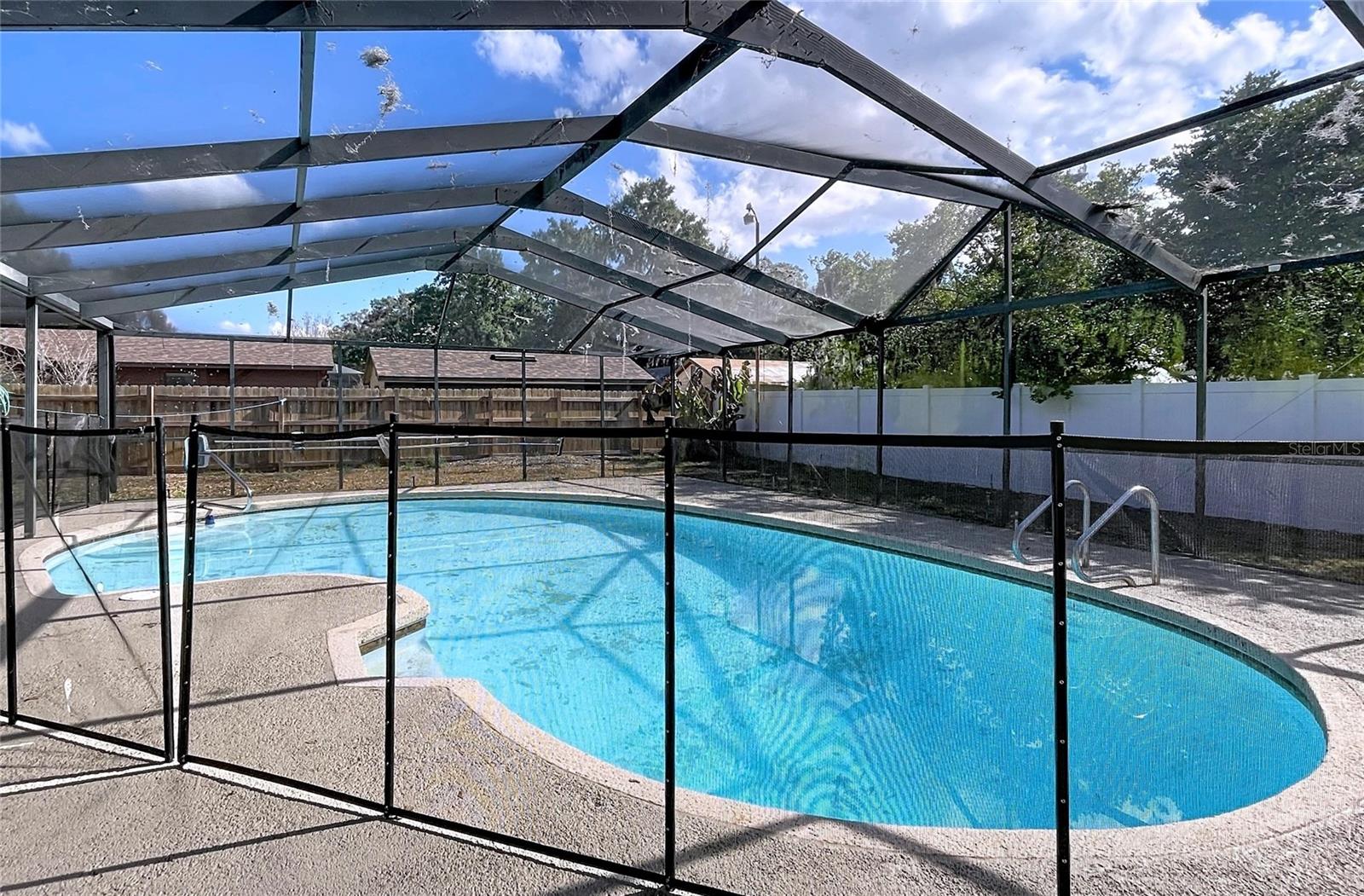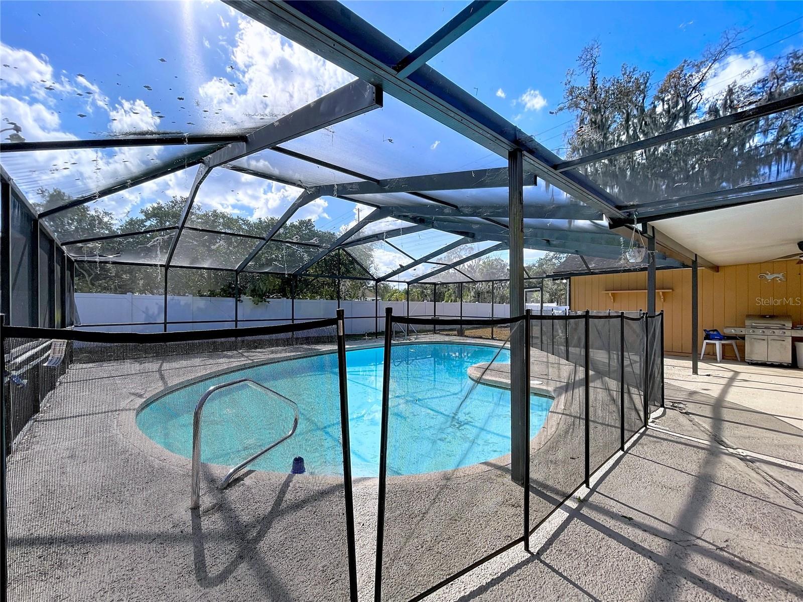 This move-in-ready home offers a practical layout designed for everyday living. Built in 1981, the property has been well maintained and features neutral finishes, natural light, and a functional flow throughout. The main living room provides a comfortable gathering space. The primary bedroom is well sized with a walk-in closet and a private bathroom. Three additional bedrooms are also generously sized and are served by a second full bathroom. A separate flex space currently used as an office can also function as a den or formal dining room. The layout opens to a spacious kitchen with granite countertops, well-designed work and storage space. A bright breakfast nook just off the kitchen overlooks the screened pool, offering a pleasant spot for everyday meals. The living areas lead to the screened pool enclosure with a covered lanai and open poolside space, creating a comfortable setting for relaxing or entertaining. The larger lot adds additional outdoor space and a sense of openness. Additional features include a garage currently set up as a workspace or flex area, with the option to convert back. Conveniently located near shopping, dining, medical facilities, and major roadways, and with no HOA or CDD.