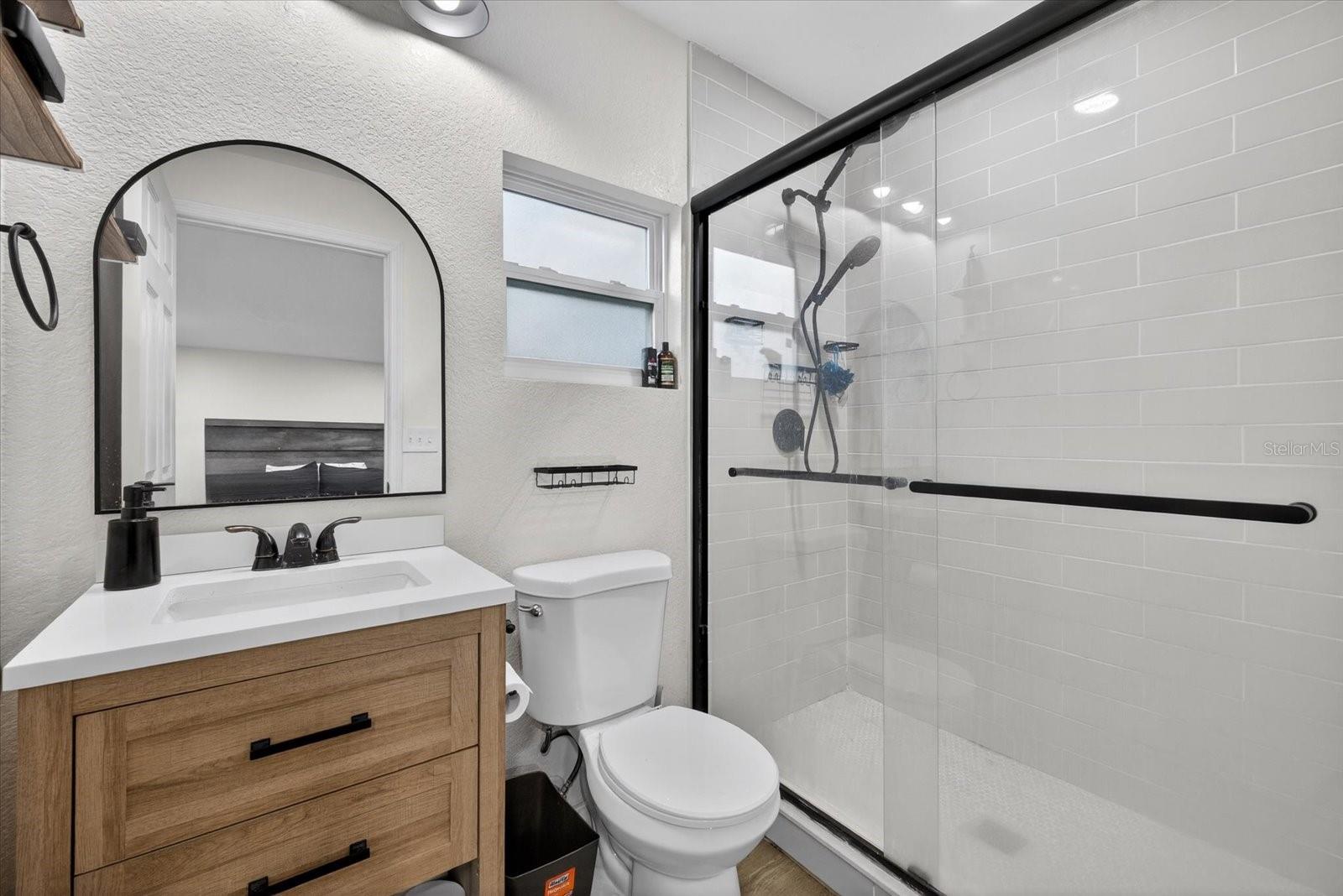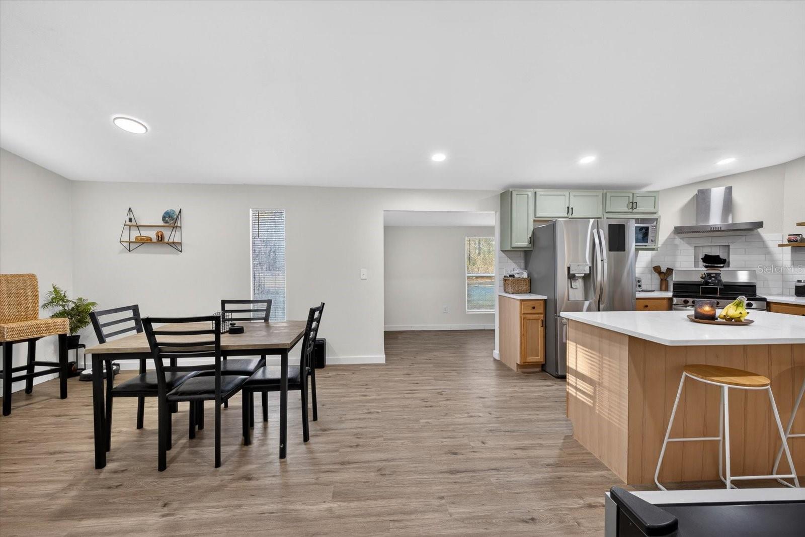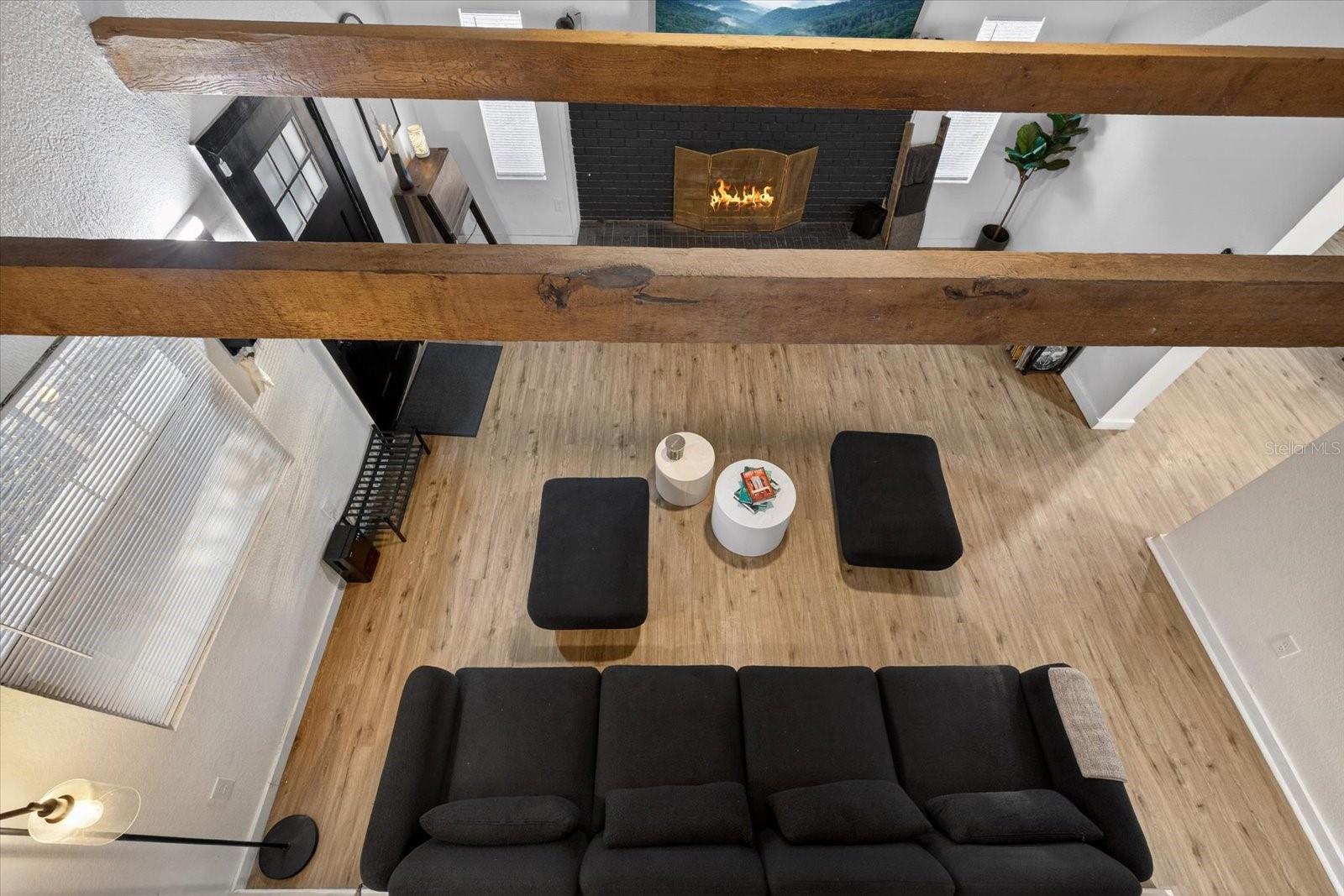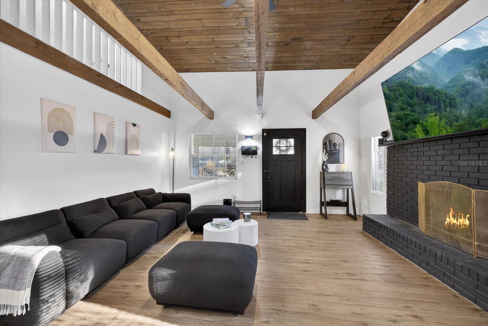 Escape to your own private sanctuary in North Lakeland. Tucked away on nearly an acre of land, this completely renovated 3-bedroom, 2-bathroom eclectic home offers a rare blend of tranquil country living and modern design. Step inside and be captivated by the dramatic high ceilings, accented by solid wood beams that exude rustic charm. The heart of this home is the expansive great room, anchored by a magnificent brick fireplace. The massive, open-concept kitchen and dining area is an entertainer's dream, featuring sleek stainless steel appliances and stunning Quartz countertops. Functionality meets style with a dedicated flex space, perfect for a home office or business. The thoughtful layout includes two guest rooms and a full bath downstairs, while the upstairs is dedicated to a serene primary suite, complete with a private en suite bathroom and a walk-in closet. Enjoy extensive recent upgrades, including a brand-new shingle roof, a newer HVAC system (2024), and updated electrical and plumbing (2024). This property is equipped with an advanced UV water sterilization system for well water and a new shed in the backyard for additional storage. Ultimate privacy and tranquility, with dedicated space for your RV, boat, and other toys offering a blank canvas for your ultimate country-living vision.