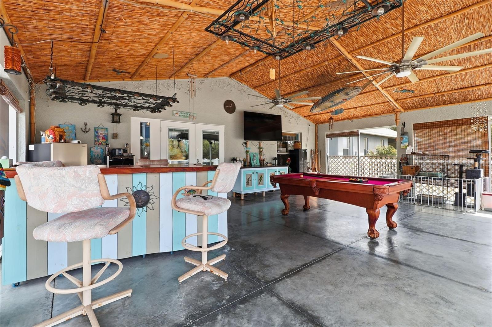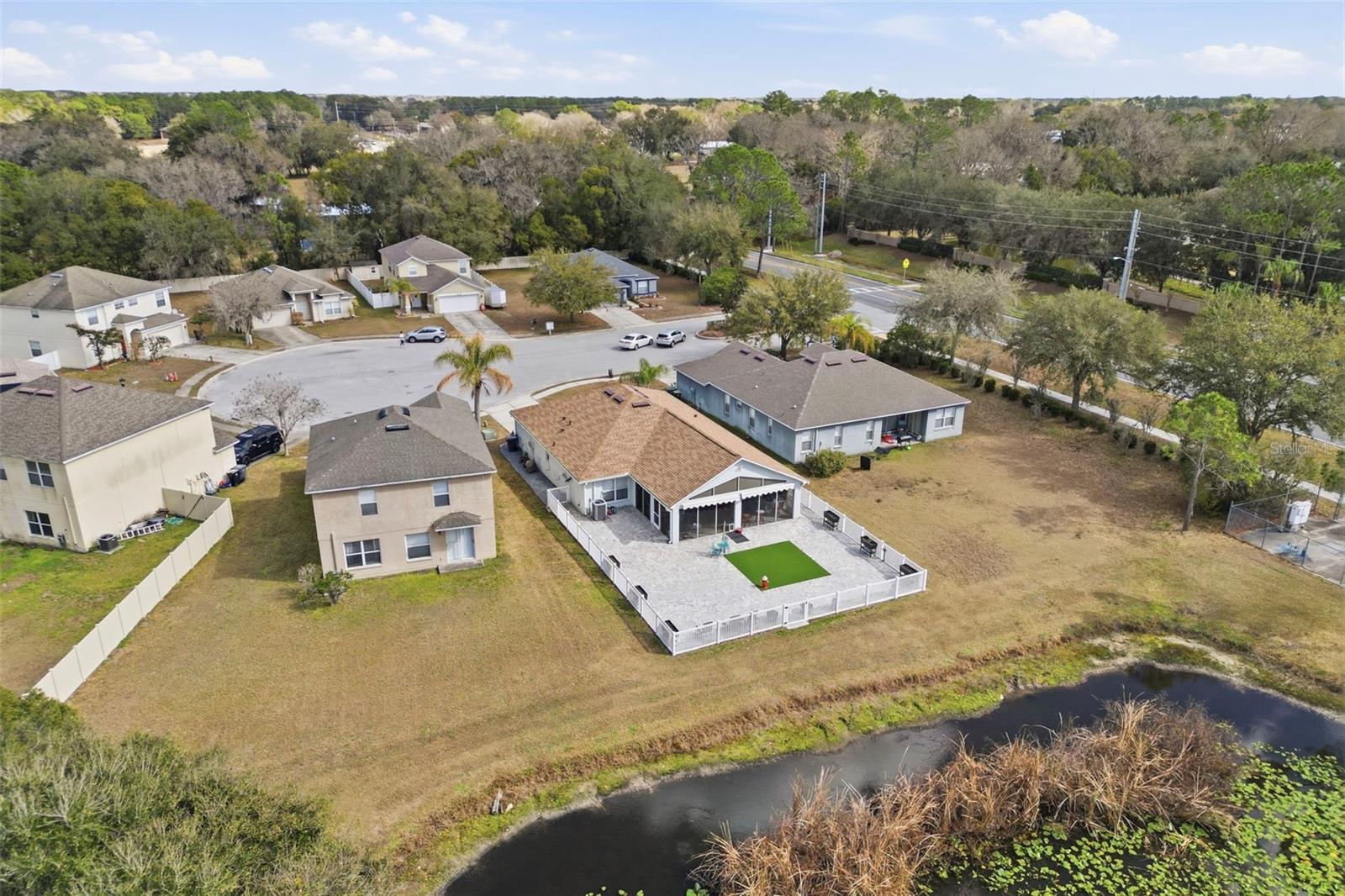 Welcome to 8310 Porch Ct in Lakeland, FL sitting just shy of 1,500 sq ft and on a CUL-DE-SAC — where comfort meets CUSTOM outdoor living! This meticulously maintained home offers major updates and incredible entertaining space, starting with a 2024 roof featuring 50-year shingles for long-term durability and peace of mind. In 2025, brand-new gutters were installed around the entire home, adding both function and protection. The true SHOWSTOPPER is the 580 sq ft enclosed lanai, designed for year-round enjoyment and fully covered with matching roof shingles. This space comes complete with a pool table, all pool table accessories, a custom bar, and custom lighting — all included in the sale. Whether you're hosting game nights, entertaining guests, or relaxing after a long day, this space delivers a one-of-a-kind experience. Step into your private backyard retreat, fully enclosed with vinyl privacy fencing. You’ll find over 1,400 sq ft of pavers throughout the yard, paired with over 250 sq ft of AstroTurf creating a clean, low-maintenance outdoor oasis. Enjoy peaceful pond views with no rear neighbors, offering both serenity and privacy. This property combines smart upgrades, premium outdoor finishes, and true entertainment value — all in a desirable Lakeland location. A rare opportunity to own a move-in-ready home with built-in lifestyle upgrades already done for you.