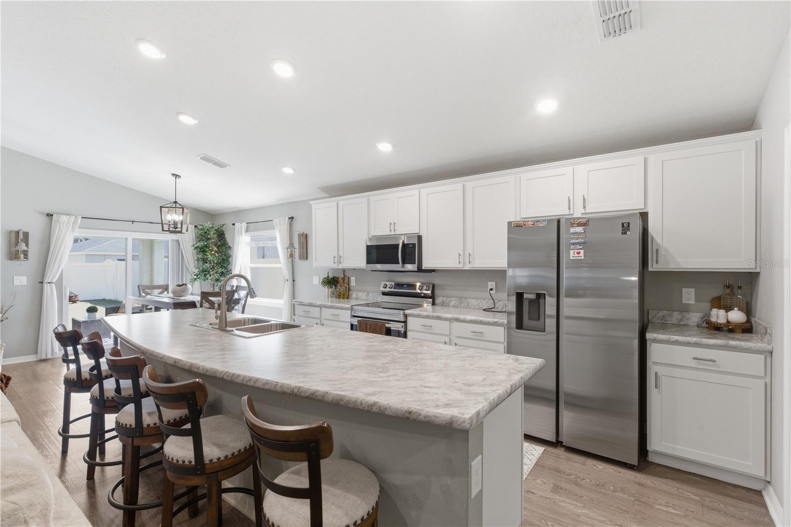 Welcome to this beautifully maintained home located in the highly desirable South Lakeland area. Built in 2021, this move-in ready home features 4 bedrooms, 2 bathrooms, and 1,717 square feet of thoughtfully designed living space. From the moment you step inside, you’ll appreciate the bright, open floor plan, high ceilings, and modern finishes that create a spacious and inviting atmosphere. The heart of the home is the stunning kitchen featuring a large center island, abundant counter space, stainless steel appliances, and ample cabinetry—perfect for cooking, entertaining, or gathering with family and friends. The kitchen flows seamlessly into the expansive living and dining areas, making this home ideal for both everyday living and hosting guests. The thoughtfully designed split-bedroom layout provides privacy, with a spacious primary suite that offers a large walk-in closet and a beautifully appointed bathroom complete with dual vanities, a soaking tub, and a separate glass-enclosed shower. Three additional bedrooms are generously sized and perfect for family, guests, or a home office. You’ll also appreciate the convenience of a dedicated laundry room and a large pantry for extra storage. This home also offers the added benefit of NO CDD fees and a low HOA of just $275 annually, helping keep ownership costs affordable. Step outside to a fully fenced backyard with a covered patio—perfect for outdoor dining, grilling, pets, or simply relaxing while enjoying Florida’s beautiful weather. Located in the heart of South Lakeland, this home offers convenient access to major highways including the Polk Parkway (approximately 10 minutes) and I-4 (about 20 minutes), making commuting to Tampa or Orlando easy. You’ll also be close to shopping, dining, and everyday conveniences, including Lakeside Village (about 10 minutes), as well as nearby parks, schools, and medical facilities. This home combines comfort, space, and a fantastic location—schedule your showing today and see everything this South Lakeland gem has to offer.