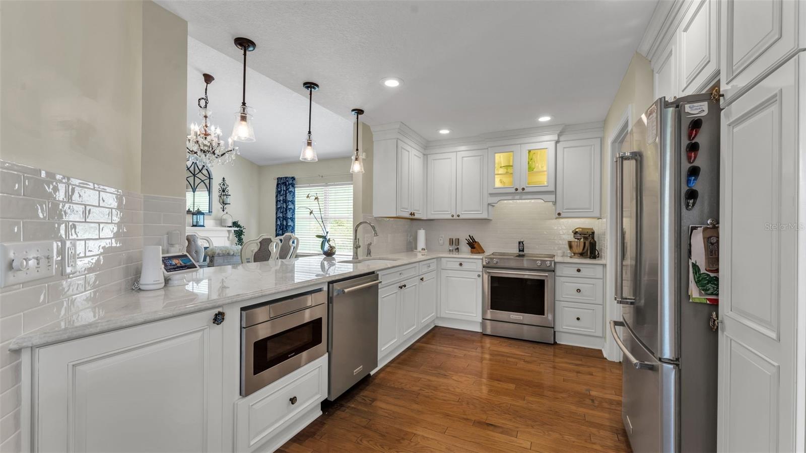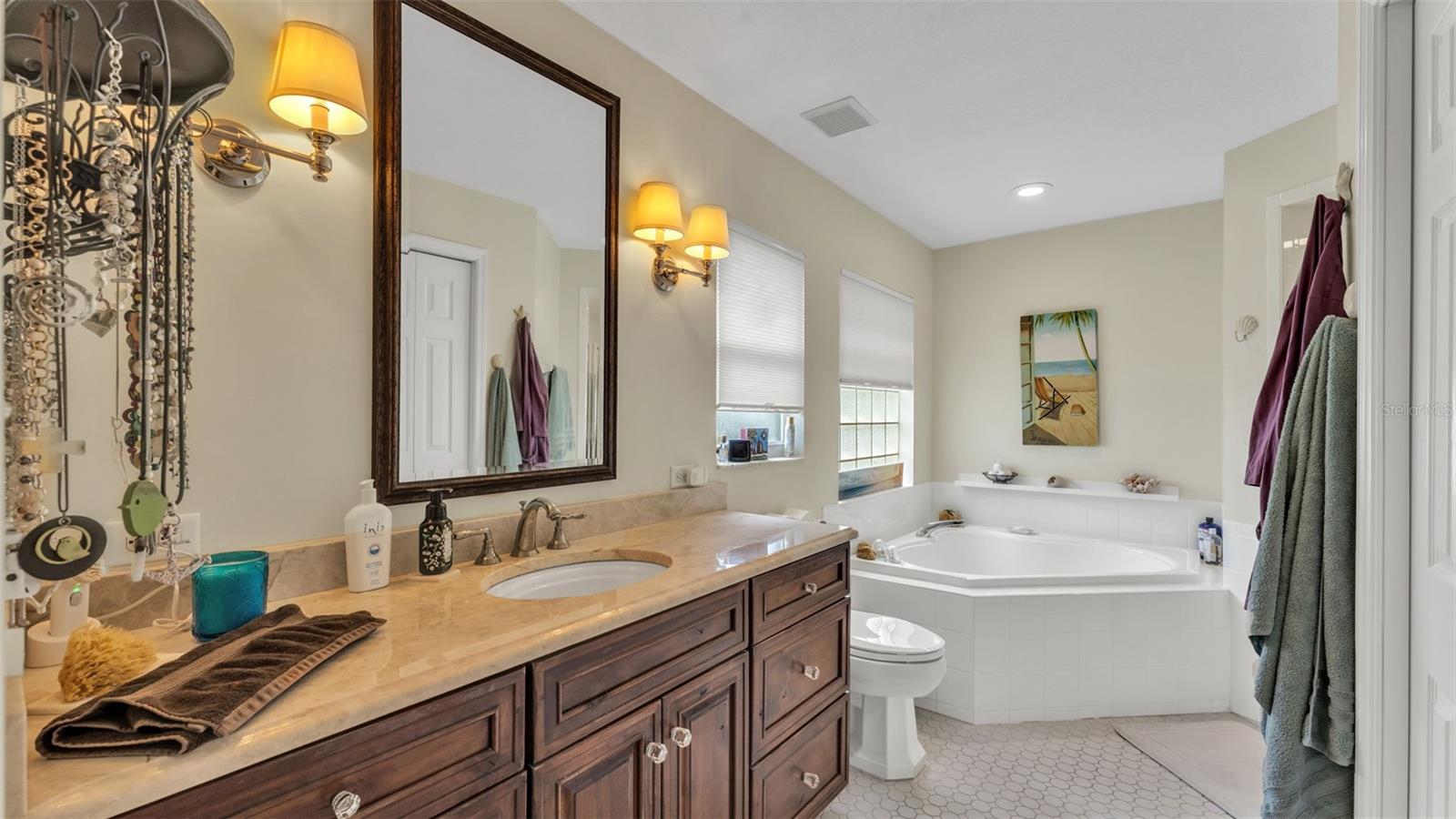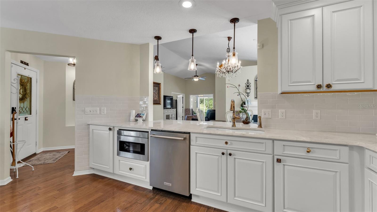 Motivated Seller for this Beautiful home located in the 24 hour guard gated community of Eaglebrooke, at the 11th green of this 4.5. star awarded golf course. Easy living with almost no maintenance needed. I did not even have to mulch! In the past 4 years we added gutters, water softner, new paver patio, new screens on lanai, new a/c condenser, and lots of loving touches. This golf course home offers fabulous amenities! Updated, bright, custom kitchen ($35,000 REMODEL - 2017) featuring quartzite countertops, stainless Kitchenaid appliance package with electric/convection oven, breakfast bar, plenty of storage w/ pull out shelves and a separate kitchen nook! NEW ROOF 2021. A fully renovated 2nd bath delights with granite countertops and tastefully selected tile and fixtures. Relax in the spacious en-suite primary bedroom and bathroom featuring a vanity w/granite countertop, sink and lighting. Plenty of natural light, plantation blinds, wood floors throughout main living areas and 2nd bedroom, study/3rd bdrm has newly added french doors, 2 car garage with lots of storage, including an air conditioned closet to store wine or valuables out of the heat, and inside laundry. Recently painted exterior and new whole home water softner. Lawn and shrubs maintained by contract as HOA requirement for less than $100 a month. Large screened patio w/ new pavers offers wonderful views of the award winning golf course and the perfect place to relax and watch active play on the course! The Club at Eaglebrooke (additional fees required) offers an exceptional 18 hole course, dining, fitness, pool, tennis, pickleball, and more! Seeing is believing. You can live in this beautiful neighborhood ... easily maintained golf course living!