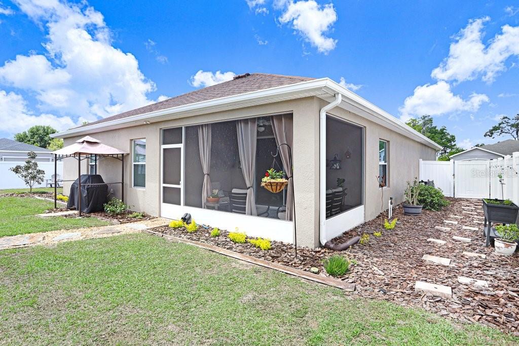 Welcome to the beautiful community of Wilder Oaks in Lakeland, Florida. When arriving at the property, you will notice the updated stone design on the home with newly planted trees and beautiful landscape that features plant borders on an over-sized premium lot so that when you have extra guests over, parking is a breeze. This 2019 better than new 4 bedroom /2.5-bathroom home features tall ceilings and crown molding with even newer recent upgrades. Upon entering, you are greeted with a spacious foyer as well as a half bath that has been recently upgraded with new mirror, lighting and an accent wall. Bedrooms 2 and 3 are past the foyer and one has a featured wooden slat wall that has been freshly painted, and both are connected by a Jack and Jill bathroom that offers granite countertops, double vanity and a tub/shower combo. Next, you will notice the open living room with a recently updated kitchen that includes a new backsplash, farm sink, dishwasher and soft close cabinets and drawers! The massive kitchen island has plenty of room for bar stools for extra seating as well as the open dining room give you ample space for gatherings with family and friends. Don't forget the Massive walk-in pantry for even more storage. The primary bedroom boosts double doors upon entry with fresh paint and carpet, tray ceiling, massive walk-in closet, double sinks with granite countertops, jacuzzi jetted tub, over-sized tile shower with new glass door and enclosure with a private closeted toilet. Bedroom 4 is currently being used as an office, and it has new carpet as well. The laundry room has plenty of room for all your washing needs as well as new granite on the folding table. The 2-car garage has plenty of room for your vehicles or toys. A sliding glass door off the dining room leads to your own personal outdoor oasis with a large screened in patio/lanai that's perfect for sipping your morning coffee and listening to the birds sing. You will notice the backyard is over-sized with white vinyl fencing, beautiful landscape, paver area (15 x 15) and a new shed for all of your lawn equipment. Other upgrades include energy efficient radiant barrier, gutters, an internal pest control system, Doorbell with Camera, irrigation system and a Kinetico water softener system. This property is conveniently located off of 98 N and offers plenty of shopping and restaurants nearby as well as Tampa and Orlando are less than an hour away. Call today for a private tour of this well-maintained home.