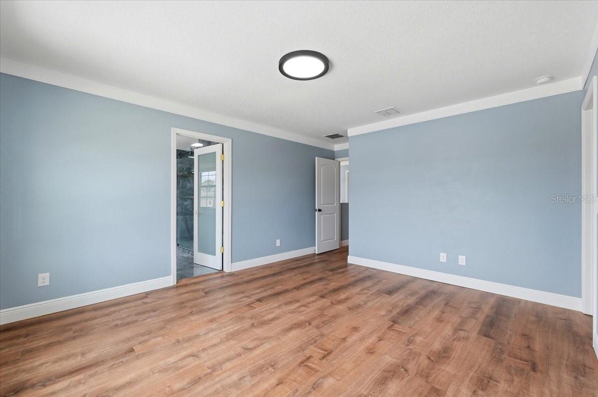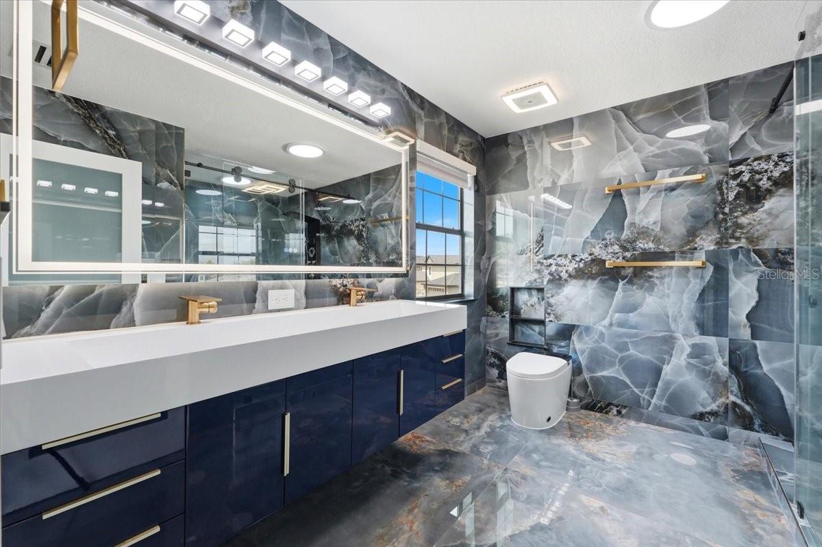 Immaculate and fully upgraded, this move-in ready corner-lot home in Bridgewater offers a level of finish and detail that immediately stands out—qualities not often seen in this price range. The home showcases a recent refresh completed in 2025, along with porcelain tile flooring (2024) throughout the main living areas, complemented by updated interior paint, baseboards, and crown molding for a clean, cohesive, and modern feel. The kitchen features LG stainless steel appliances (approximately 1 year old), ample cabinetry, and an open layout that flows seamlessly into the main living space. From both the kitchen and living areas, enjoy peaceful water views, adding a sense of openness and everyday tranquility. A true highlight of the home is the fully renovated primary bathroom, thoughtfully designed with a spa-inspired aesthetic that elevates the entire space. Features include dramatic custom tilework, a frameless glass shower with a multi-function rainfall system and body jets designed to deliver a true spa-like experience, upgraded lighting, and a built-in sound system that connects to your phone—perfect for creating a personalized, relaxing atmosphere. Both bathrooms are equipped with ECO smart toilets with bidet functionality and remote controls, offering a modern level of comfort and convenience. Additional enhancements include LED backlit mirrors with adjustable ambiance settings, as well as motorized/remote-controlled blinds and shades throughout the first floor and primary bathroom, blending style with everyday functionality. Upstairs, the entire second level—including the staircase—has been upgraded with laminate plank flooring, creating a seamless and contemporary look throughout. A Culligan whole-house water treatment system with drinking water filtration (2025, fully paid off) adds further value and peace of mind. Positioned on a corner lot with added yard space, this home is located within the Bridgewater community, where residents enjoy access to amenities including a pool, fitness center, tennis courts, fishing pier, and scenic surroundings, all with convenient access to major roadways, shopping, and dining.