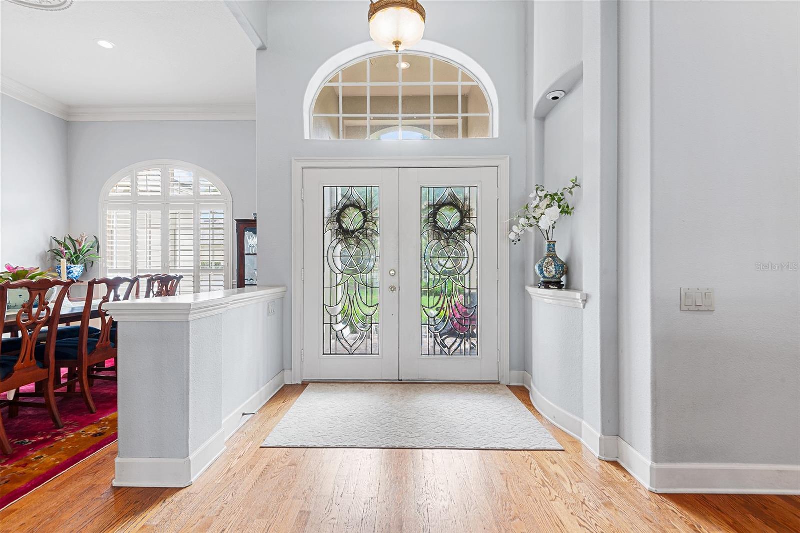 Located in the highly desirable gated community of Hamilton South, this beautifully maintained South Lakeland pool home stands out with its combination of space, upgrades, and lifestyle features. From the moment you arrive, you’re welcomed by a beveled glass front door, soaring 15-foot vaulted ceilings, and beautiful wood flooring throughout the main living areas, creating a warm and inviting first impression. Inside, custom wood trim, built-ins, and expansive windows fill the home with natural light, enhancing the open and functional layout. The beautifully updated kitchen showcases stunning white cabinetry, elegant quartz countertops, sleek black stainless steel appliances, and a gas range, making it a true centerpiece for both everyday living and entertaining. The home is also equipped with a tankless hot water system, providing energy efficiency and endless hot water. This spacious 5-bedroom split plan home offers both privacy and flexibility, with a secluded primary suite and multiple living areas. Luxury vinyl plank flooring extends through the bedrooms, and one bedroom is currently used as an office—ideal for remote work, a study, or guest space. Step outside to your private, fully fenced backyard retreat, complete with mature landscaping, an extended patio, and a screened-in pool with outdoor kitchen—designed for year-round Florida living and effortless entertaining. Ideally positioned next to the community tennis courts, you’ll enjoy convenient access to recreation just steps from your door. Homes with this combination of condition, layout, and location in Hamilton South are rare—don’t miss your opportunity to see it in person.
