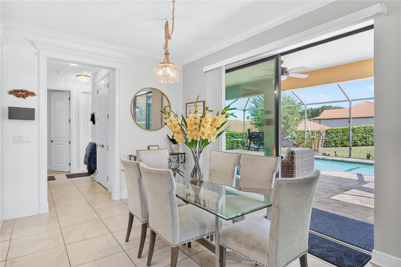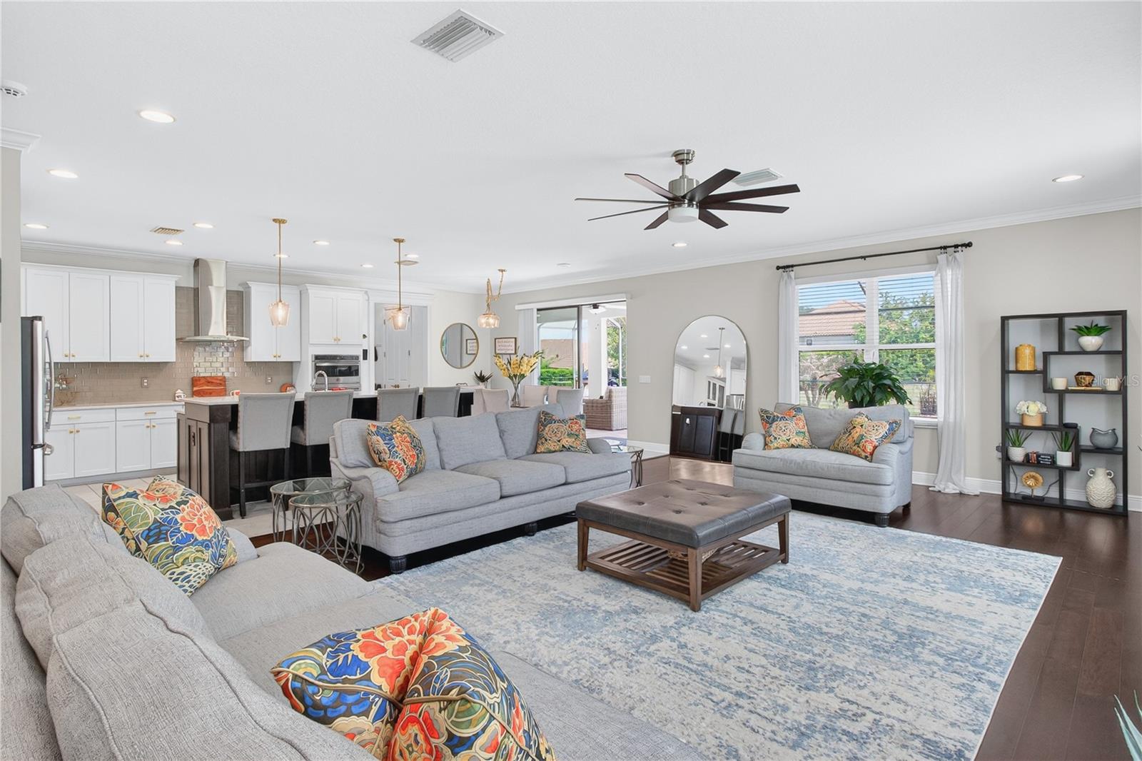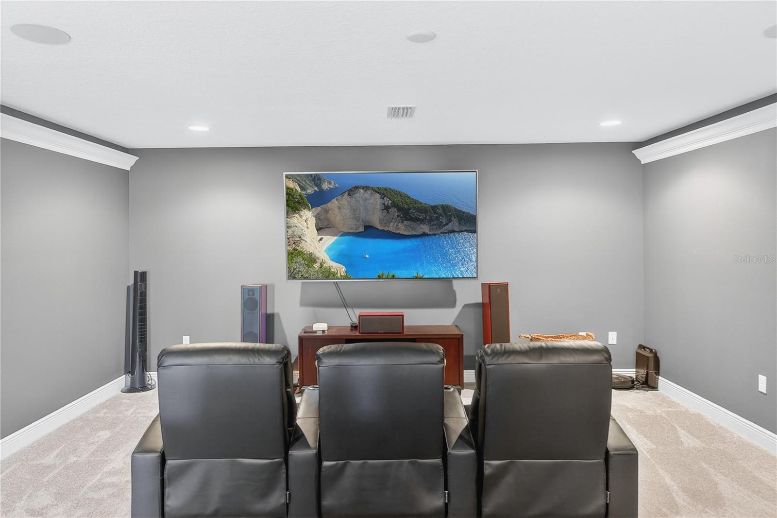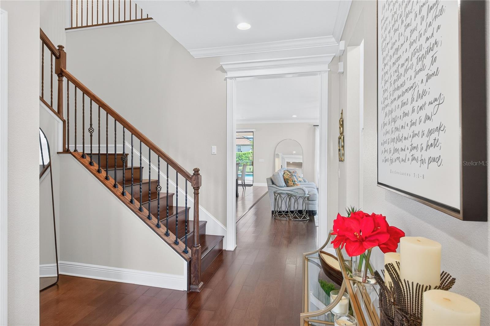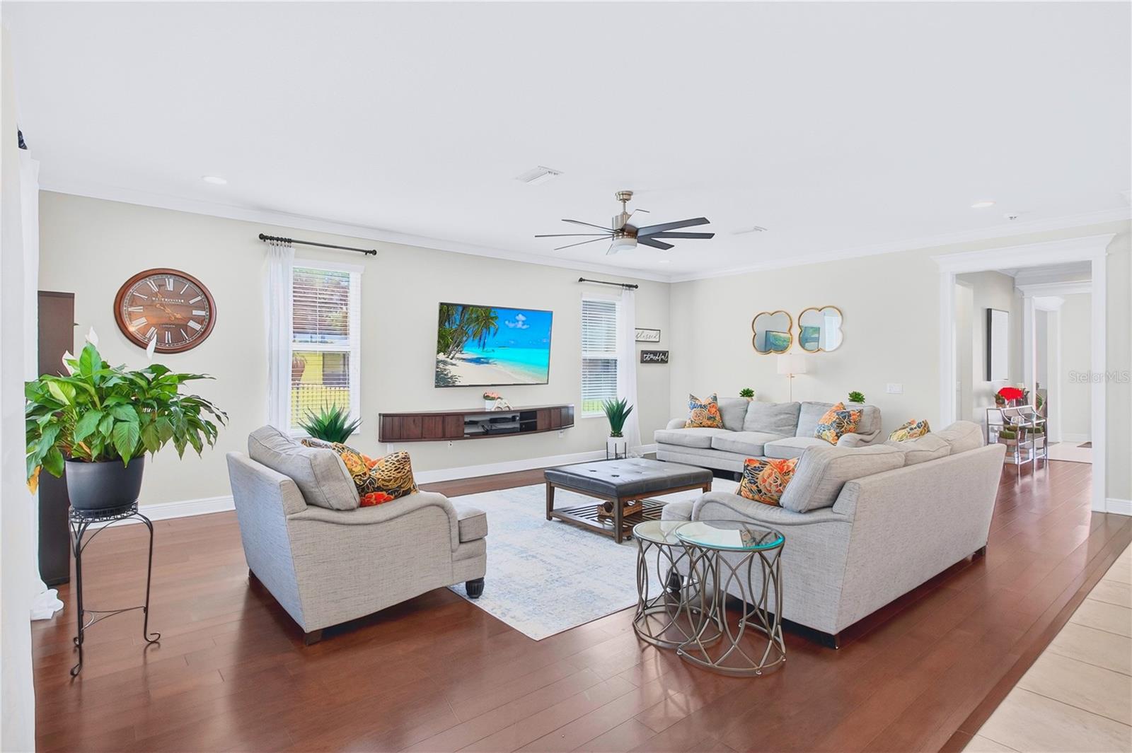 Welcome to luxury living in the highly sought-after gated community of Terra Largo, perfectly positioned in the heart of Lakeland. Nestled on a quiet cul-de-sac, this expansive 5-bedroom, 4.5-bathroom pool home offers nearly 4,900 square feet of thoughtfully designed space, ideal for growing or multi-generational families who value comfort, functionality, and style. From the moment you step inside, you’re greeted by elegant engineered hardwood flooring and an open, inviting layout designed for both everyday living and entertaining. The gourmet kitchen is a standout feature, complete with quartz countertops, stainless steel appliances, and a separate prep area, perfect for hosting and creating memorable meals. The home features a true owner’s retreat with dual walk-in closets and a spacious ensuite bath, offering a private sanctuary to unwind. In addition, two secondary bedrooms include their own ensuite, one conveniently located on the first floor and another upstairs, providing flexibility and privacy for guests or extended family. Upstairs, enjoy a generous loft and dedicated media room, creating the ultimate space for movie nights, game days, or relaxation. Step outside to your private backyard oasis featuring a screened, covered lanai, resort-style pool, and an oversized yard, perfect for outdoor living year-round. Additional highlights include a 3-car tandem garage, storm shutters, water softener system, smart switches, pool heater, electric-vehicle charger, and solar panels for enhanced energy efficiency. This home truly offers the space, upgrades, and lifestyle today’s buyers are looking for, all within one of Lakeland’s most desirable communities.