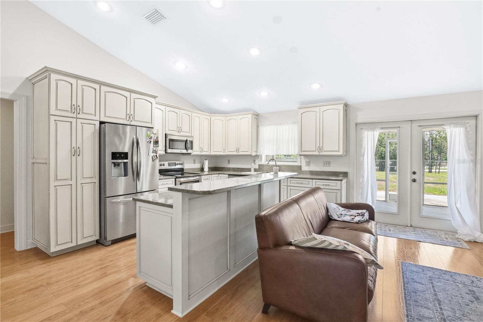 Tucked away on nearly six private acres in the desirable Lakeland Highlands area, this rare estate offers the flexibility and space that’s becoming increasingly hard to find. Featuring two full residences on one property, it’s ideal for multi-generational living, extended stays, or those seeking additional private living space without sacrificing privacy. A rare opportunity also exists to purchase an adjacent parcel featuring a 1920s two-story farmhouse—creating a unique option for a multi-property or family compound. The main residence spans over 3,400 square feet and welcomes you with a grand vaulted great room anchored by a fireplace, creating an inviting space for both everyday living and entertaining. A spacious eat-in kitchen overlooks the private pool courtyard and is complemented by a formal dining room and a convenient butler’s pantry, offering both function and flow. The home also features two enclosed porches—one at the front and another along the side, with the side porch offering a more private, tucked-away setting positioned for added privacy from the main living areas, ideal for quiet mornings or a peaceful retreat. The primary suite is located on the main level and opens directly to the secluded pool courtyard through French doors—your own outdoor retreat surrounded by classic brick walls for added privacy and charm. Adjacent to the main home is a separate two-bedroom, two-bath residence built in 2014—a true second home with its own utilities, ideal for extended family, guests, or flexible living arrangements. With no HOA, ample land, and a long private drive positioning both homes toward the center of the property, this estate offers a rare combination of space, versatility, and seclusion—while still being conveniently located near shopping, dining, and major roadways. The adjacent farmhouse parcel is available separately, offering additional flexibility for those looking to expand, invest, or create a truly unique multi-home setting.