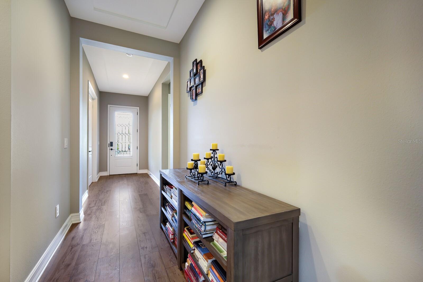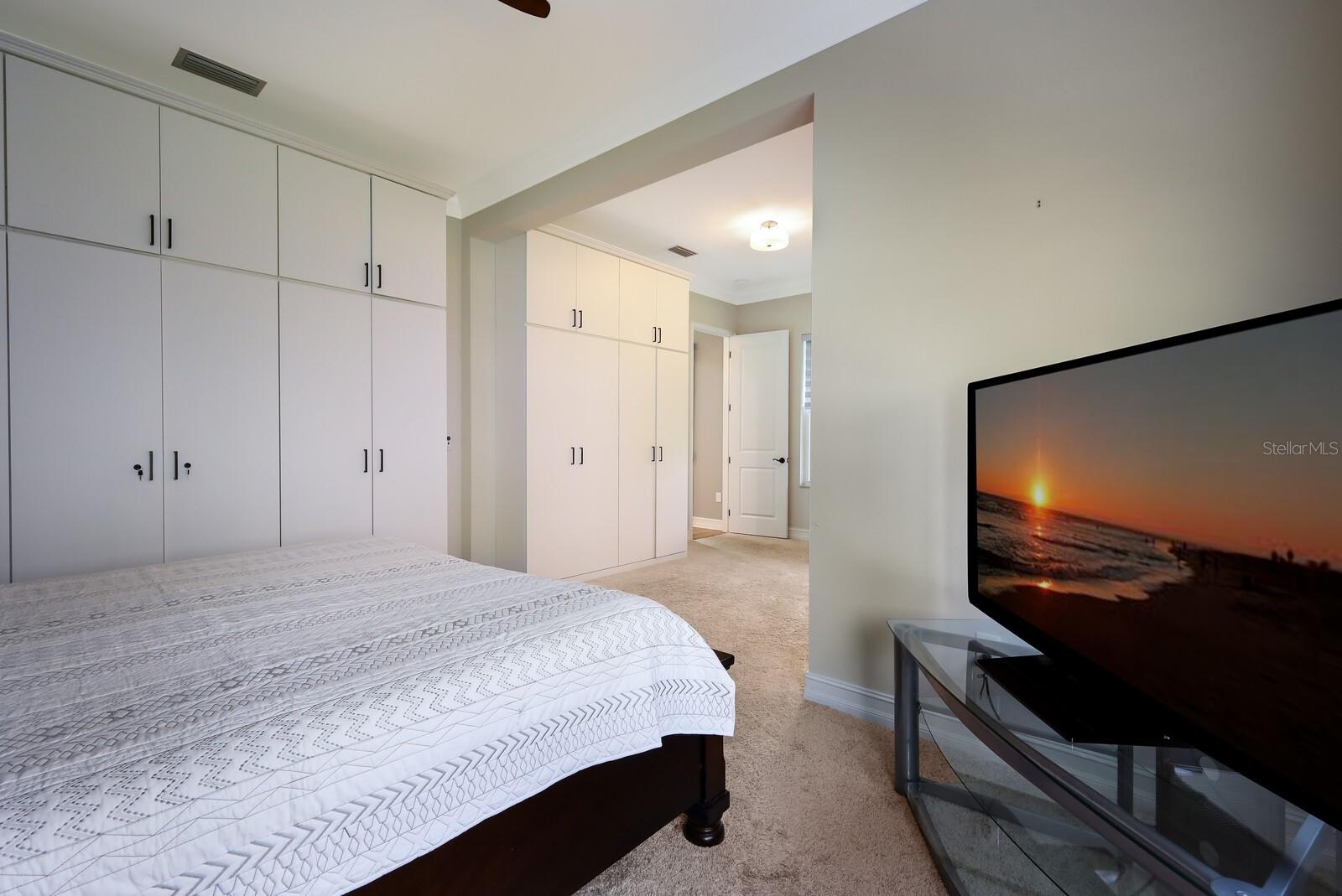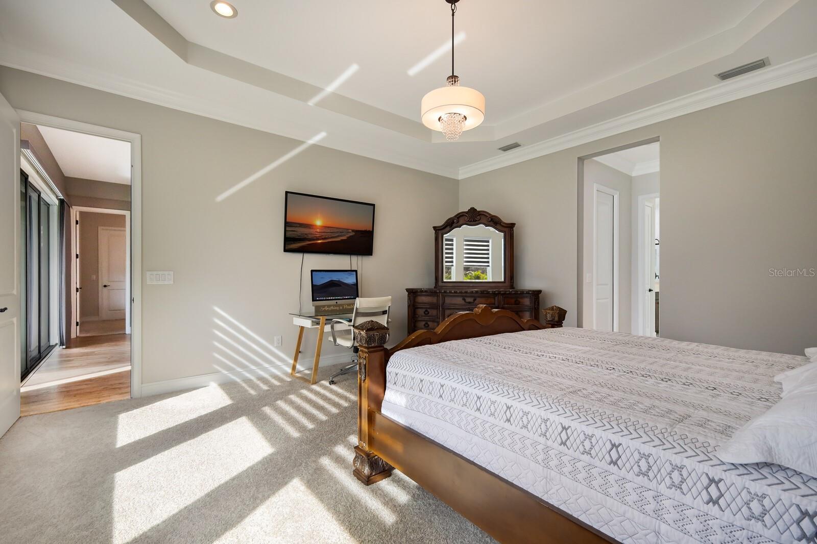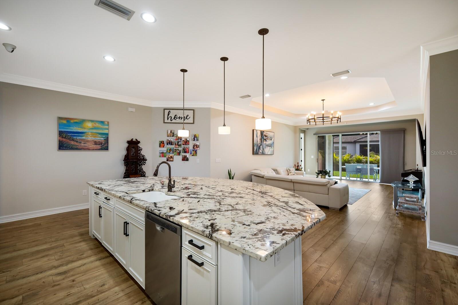 HIGHLY DESIRABLE ARBOR GRANDE! OWNER FINANCE AVAILABLE! PRISTINE CUSTOM BUILT CALATLANTIC HOME ON CUL-DE-SAC WITH BOB GARDNER PARK ACCESS! This 4 bedroom PLUS office, 3.5 bath, 3 CAR TANDEM GARAGE home is light and bright with STUNNING wood laminate floors throughout all of living areas. Upon entering the leaded glass front door you will step into a high ceiling entry, and immediately to your right is a spacious den with front window and french doors for privacy-the perfect home office with a view of green space and attractive landscaped amenities. Across the hall, are 2 Jack and Jill bedrooms plus a full bath. This home offers a 3 way bedroom split. Just down the hall, the designer kitchen is truly the WOW factor of this home, with an IMPRESSIVE oversized quartz countertop island-and it is MASSIVE-an entertainers DREAM! Built in stainless KICHENAID appliances (NATURAL GAS community) and elegant solid wood 42 inch white cabinets compliment the stunning countertops and back-splash in this gourmet kitchen with walk in custom pantry and wood shelving. High trayed ceilings throughout, and 8 foot doors add to the overall airy and elegant feel of this custom home. A wide open cheerful living and spacious dining combo looks out to the screened lanai and a fully fenced backyard with mature ARECA PALMS surround for complete privacy. Lanai also has pull down privacy shades already installed. Just off the living area is the interior IN-LAW SUITE with bedroom PLUS sitting area, en suite bath and walk-in closet with a pleasant view to the backyard. This bedroom also has a wall of additional custom built in storage units. The primary bedroom suite is oversized with large wall-to-wall windows, and double closets. Primary bath has soaking tub with window, a shower and 2 separated sink areas. An upgraded monitored whole house surveillance system brings added peace of mind for safety and security. The 3 car tandem garage has custom built ins with 2 desk areas and custom built-in storage. Home is fully equipped with a Tesla charging station too! This floor plan is perfect for any family, and additionally anyone seeking a MULTI-GENERATIONAL EN SUITE. Arbor Grande is a boutique sized, resort styled community of both single family and villa homes (305 total) with architectural character, attractive color schemes, and individual designer mailboxes .This amenity rich community offers its residents a beautifully appointed clubhouse, (available for private events) an interior waterfront park, heated beach entry pool with a covered seating area, an immaculate fitness center, bocce ball and sand volleyball. Our onsite management, along with various volunteer committees plan and host frequent social, recreational and holiday events for all ages. Lakewood Ranch boasts beautiful parks, golf, tennis and pickle ball facilities, and is the #1 fastest selling community in the country. The adjacent Bob Gardner Park (1 door down) has 3 private gated access points from Arbor Grande. This park includes, a soccer field, frisbee golf course, 2 wet and dry dog parks, 2 playgrounds with gravity swings, and a mile of lush scenic walking and biking trails. We are also situated less than an hour away from our world famous BEACHES and magnificent sunsets. Pack your bags and bring your shades, come join us here, where others only dream to visit!