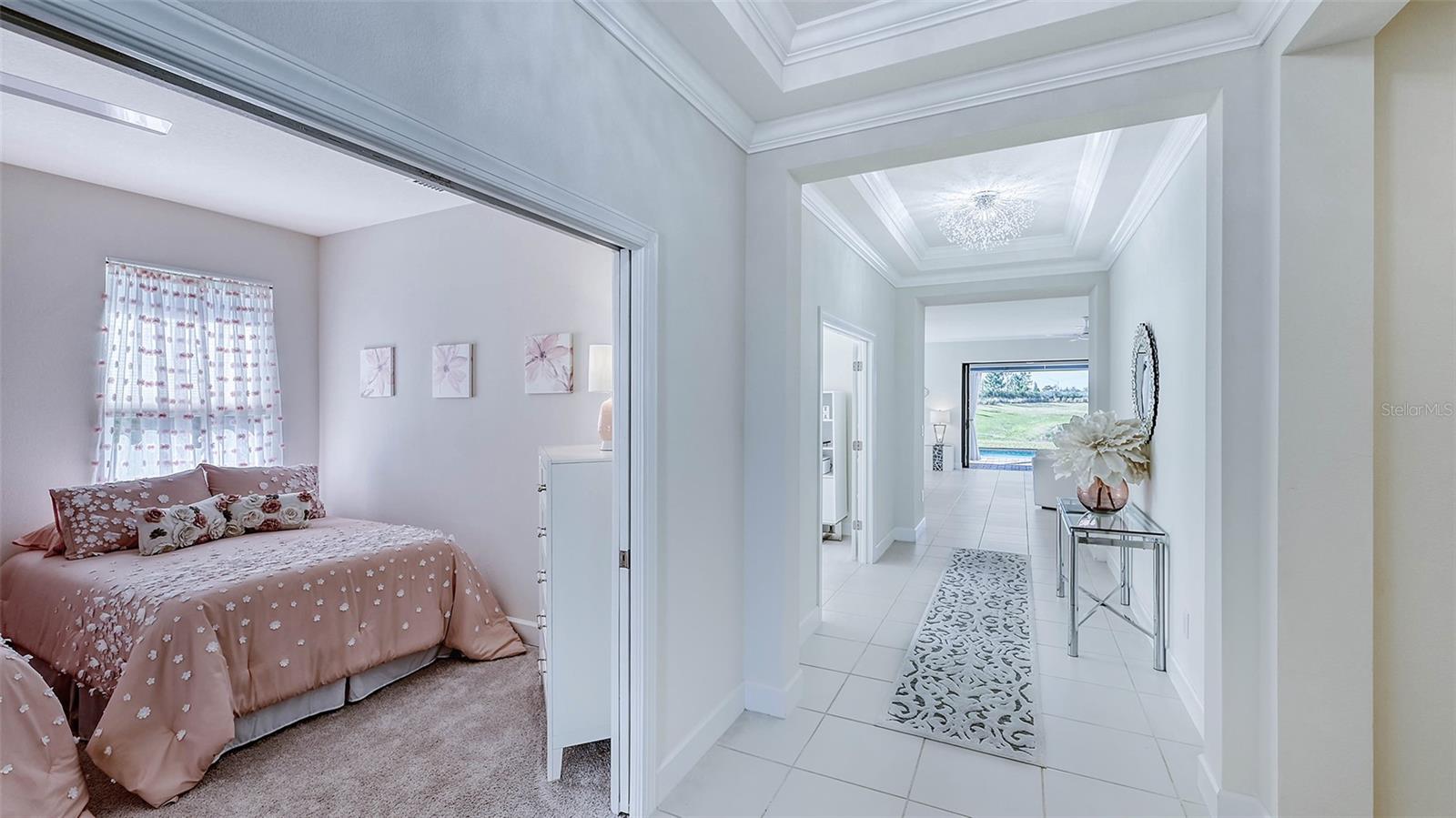 Welcome to Florida resort living in this fabulous Farnese plan 3 bedroom home in Azario. This beautiful pool home is move-in ready. THIS IS A NON-GOLF DEEDED LOT With LOW FEES. Golf membership may be purchased on an annual basis. Why wait to build (12-18 months), and then wait again to have a pool built, when you can start enjoying this beautiful community NOW? This is Taylor Morrison's newest sought after resort community in beautiful Lakewood Ranch, Fl. Azario boasts an array of amenities including golf, pickleball, tennis, bocci ball, a poolside Tiki bar, spa, fitness center, exercise classes, and now the upscale culinary center. There are several beautiful pools for swimming and a hot tub for relaxing those muscles. This Non-Golf home is a Farnese floor plan with 3 large bedrooms, 2 full baths, and a half bath. There is a large laundry room with built-in cabinets, and a den/office with glass French doors. The current office could also work as a formal dining room. This bright modern open floorplan has a kitchen, dining and great room which opens to an extra--large lanai and pool deck. This is a true Florida home, designed to bring the outside....inside! The beautiful pool is enclosed by a panoramic no-see-um picture frame cage which shows off the expansive side and backyard and lake. This home has incomparable sunsets. The home is situated on a private cul de sac lot with an extra-long driveway, that easily holds up to 5 cars. It is private and quiet with a neighbor on one side only. The home is 3 years old in model-like condition. The community is gated, there are 2 dog parks and you can apply to put in a fence. The capital contribution is $5000-paid by the buyer at close. The culinary fee is a $500 food and drink minimum. Call today to schedule your private showing. Proof of Funds or Mortgage Pre-Approval required with an offer. Room Feature: Linen Closet In Bath (Bedroom 2).