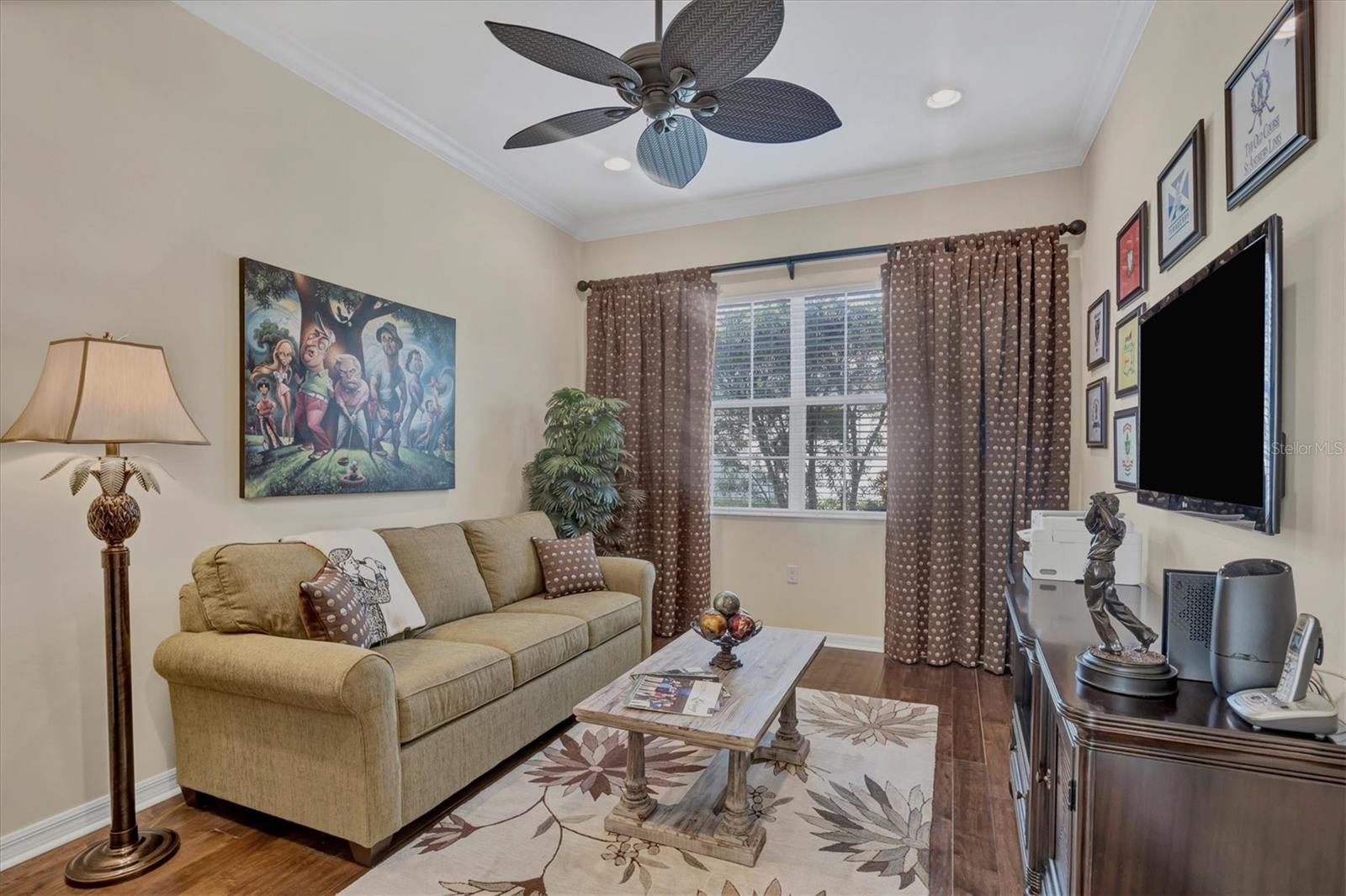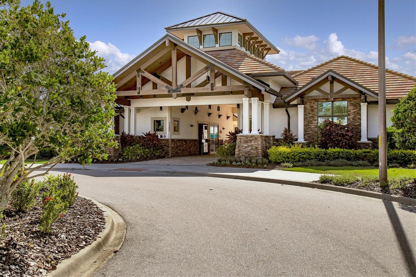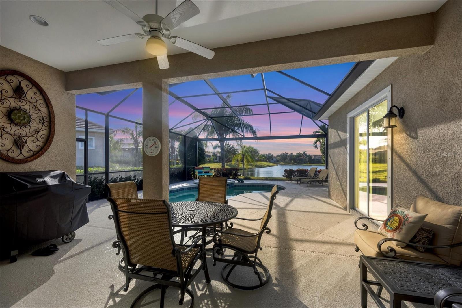 Welcome to Country Club East, one of the most desirable gated golfing communities in Lakewood Ranch. This lovely 3-bedroom plus den, 2.5-bath, 2-car garage home sits on a premium pie-shaped lot that offers stunning west-facing water views for beautiful sunsets. As you enter the foyer, your eyes immediately go to the beautiful pool, spa, panoramic screen and stunning pond view. Two guest rooms upfront with a guest bath in the middle provide privacy and quiet for your guests. The den can be used as an office or a reading nook. The primary is very spacious with sliding doors out to the pool and spa. Dual walk-in closets. Dual sinks and a large walk-in shower. The open floor plan allows for the dining room, great room and kitchen to all be open for entertaining. The great room has coffered ceilings, crown molding, recessed lighting, and surround sound. The kitchen, which is the heart of the home, has a one-level island with sink, recessed, lighting granite counters, tiled backsplash and wood cabinets. The pool bath is off the kitchen, so your guests do not have to come through the house. Extras to be noted that top off special features of this home: rain gutters around entire home and natural gas line to the BBQ in the lanai. Belleisle has its own community center, clubhouse, game room and park. Country Club East is home to The Lodge which is available to club members for dining and fun-filled social activities. Membership to the Lakewood Ranch Country Club is optional at an additional fee. Lakewood Ranch has been ranked as one of the best selling master-planned communities in the nation.
