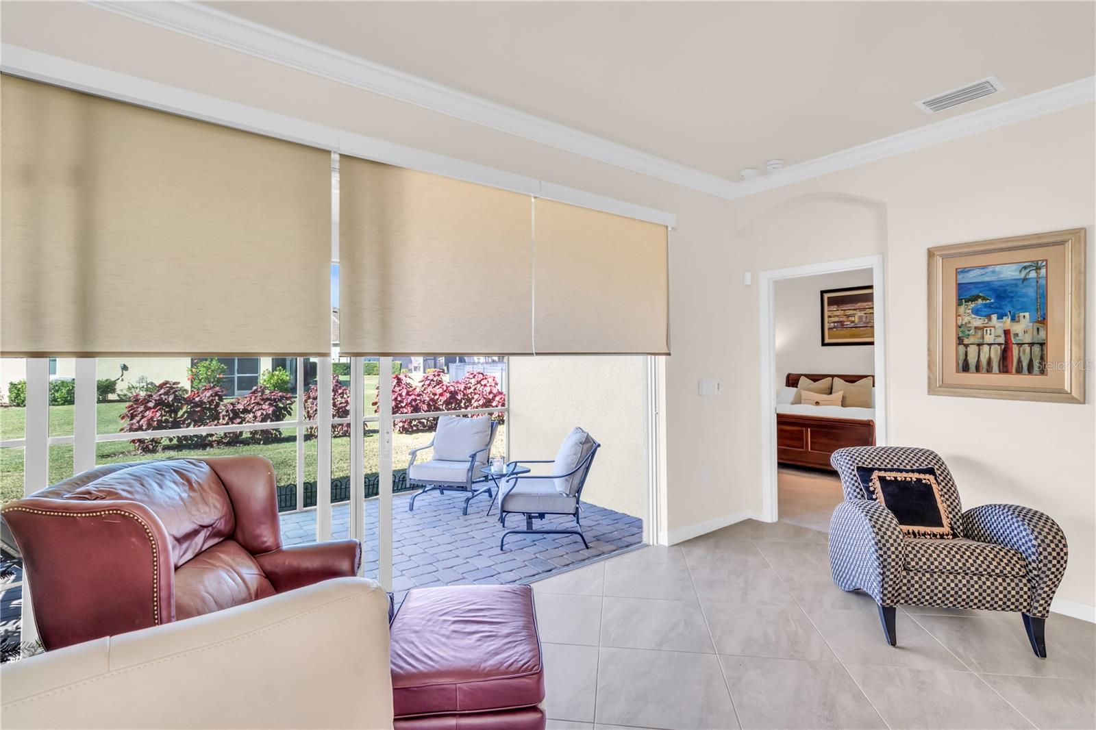 PRICE IMPROVEMENT!!! LOCATION, LOCATION, LOCATION!!! Nestled in the heart of LAKEWOOD RANCH, this Jasmine floor-plan is one of the LARGEST villas available in the area, offering almost 2,000 Sq. Ft. of living space! MAINTENANCE FREE, GATED, partial WATERVIEW, and walkable to the beautiful BOB GARDNER PARK! As you step into this villa you are welcomed with an abundance of natural light, beautiful crown molding and porcelain tiled floors! This 2 BED, 2 BATH with a DEN offers spacious living with with an elegant open concept. The luxurious master suite features a private bedroom, 2 WALK-IN closets, an ensuite bath with dual vanities, water closet and walk in shower. On the opposite side of the home, an additional bedroom and a guest bathroom provide plenty of space for family and visitors. The gourmet kitchen is a chef's dream, featuring stainless steel appliances, 42” cabinetry and granite countertops. With ample counter space and a large center island, it's the perfect place to prepare gourmet meals or entertain guests with ease. Adjacent to the kitchen, you'll find a spacious den with glass french doors that can be used as a home office, media room, or additional living space to suit your needs. Just off the living room, is the screened-in lanai – a tranquil haven that seamlessly extends the living space into the outdoors. UPGRADES include: crown molding in living areas, master bedroom and master bath, pavers on driveway and walkway, professional landscaping, Fanimation lighting, plantation shutters, motorized window shades, epoxy flooring in garage, a 250 V electric vehicle outlet and much more! HUGE BONUS..directly across the street, Villa residents have their own private, salt water, resort style pool and spa with pickle ball courts and a dog park. Arbor Grande Village also offers additional amenities such as a first class fitness center, gorgeous community clubhouse, a second resort style pool, bocce ball and volleyball courts. The community has a full time property manager/lifestyle director on site so there is no lack of activities and fun for all ages! You’ll enjoy a hassle-free lifestyle where all exterior maintenance tasks are taken care of for you! In Arbor Grande there are 3 ACCESS POINTS directly into BOB GARDNER PARK, which offers serene walking trails, a large dog park with a swimming lake, frisbee disc golf course, playground and a picnic pavilion. Did I mention that both Arbor Grande and Bob Gardner Park are GOLF CART friendly? Don’t miss the opportunity to experience a lifestyle of comfort and natural beauty in this stunning villa. Schedule your private tour today and make this exquisite LAKEWOOD RANCH property your new home!