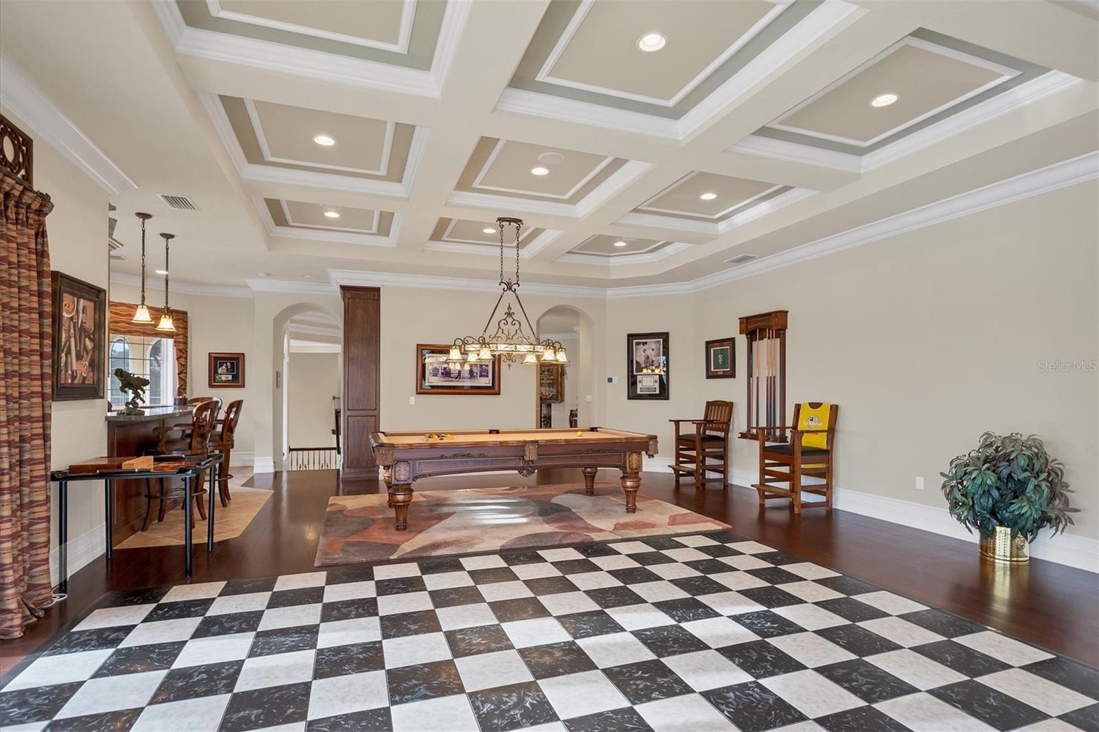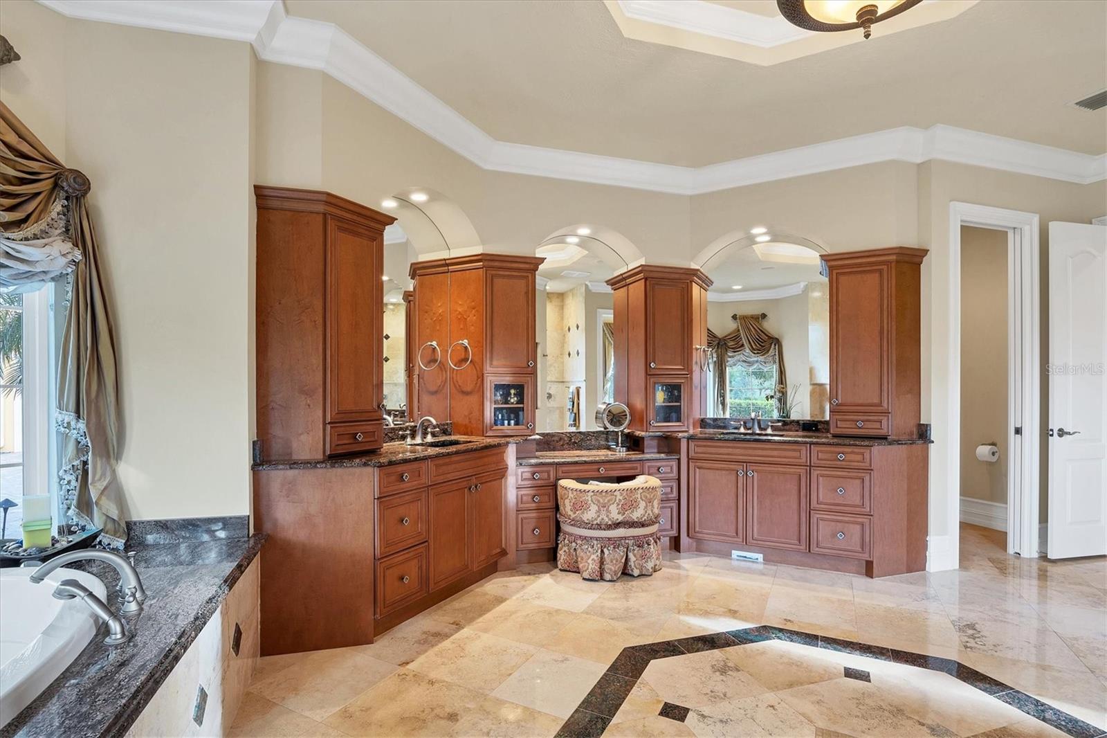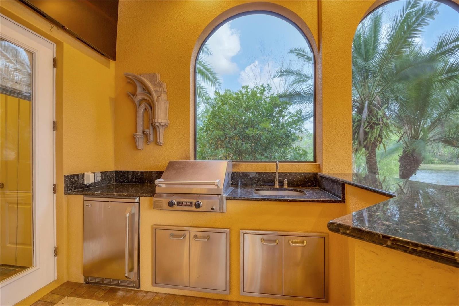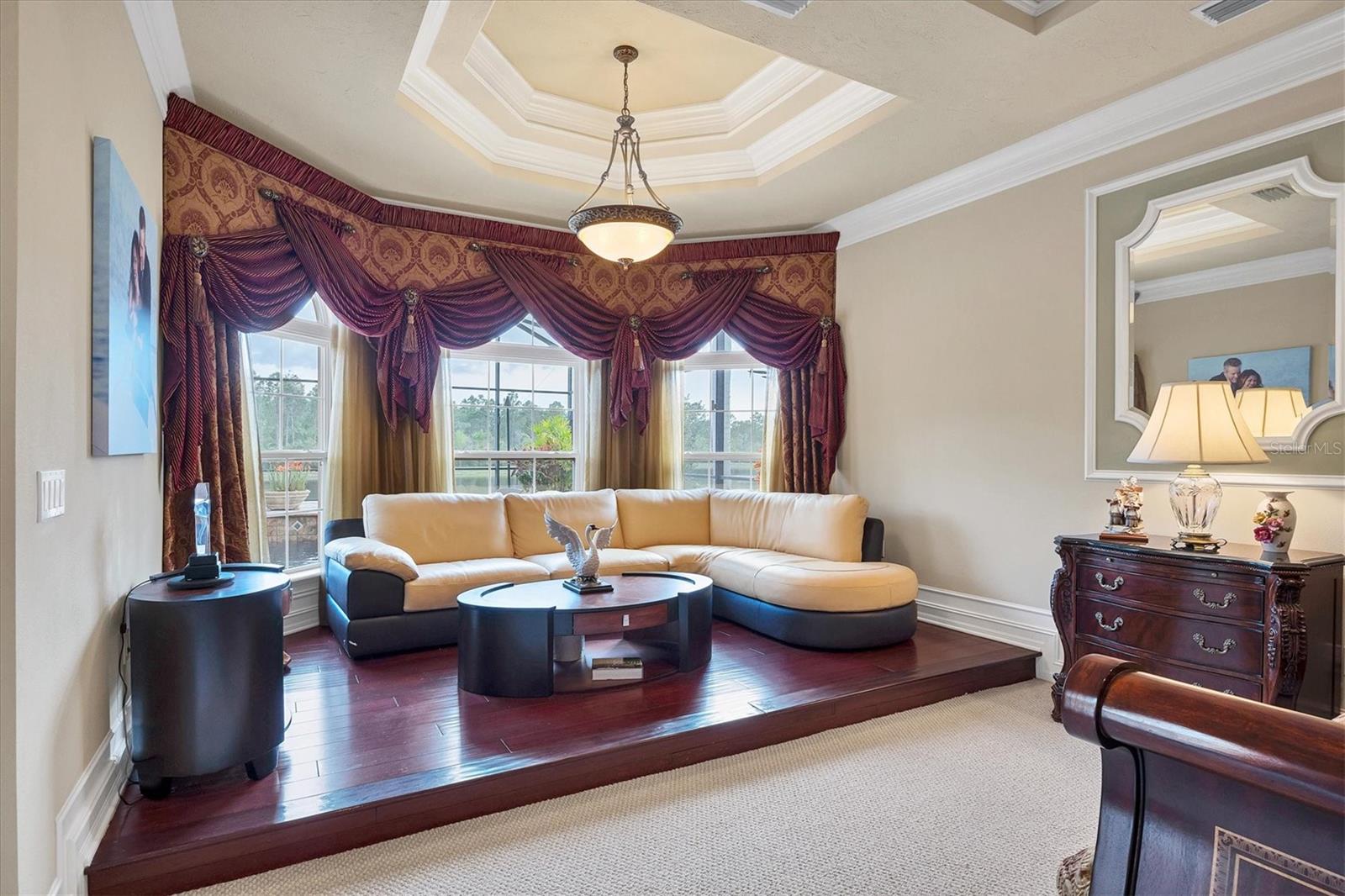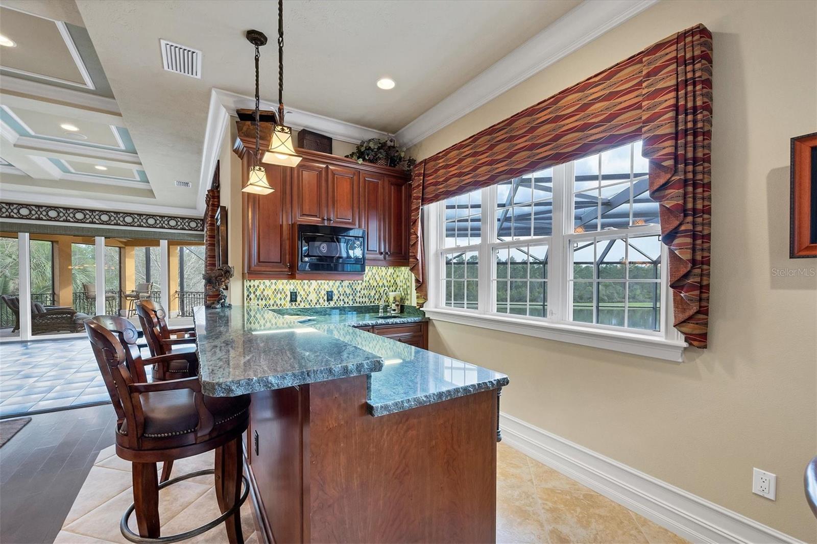 Located behind the gates of The Concession, 8341 Farrington Court embodies luxury living at its finest. This exceptional estate rests on an oversized lakefront lot, offering unparalleled water and sunset views. The residence spans over 8,000 square feet, boasting six bedrooms and six and a half baths, all meticulously crafted by Pruett Custom Homes. From the moment you step inside, a grand foyer welcomes you with a double iron door, travertine flooring, and elegant granite art shelves. The living room exudes sophistication with its arched pillared entry and intricate ironwork, and the luxurious staircase, featuring slate tile risers and a gold leaf iron and wood banister, adds a touch of grandeur. The kitchen is a culinary masterpiece, featuring custom wood cabinetry, thick granite countertops, and top-tier stainless steel appliances. Adjacent to the kitchen, the breakfast area offers a serene setting with an aquarium window overlooking the picturesque waterfront and landscape. The primary bedroom and adjacent office make a lavish retreat, boasting a raised seating area, a wall of windows with motorized shear panels, and an exceptional closet with custom wood cabinetry. The primary bath is equally inviting, featuring travertine flooring, a jacuzzi tub, and a Roman shower with multiple shower heads. The outdoor living space is a haven of relaxation, highlighted by a resort-style saltwater heated pool and spa, a covered entertainment area with a gas fireplace, and an outdoor kitchen. The lanai offers unobstructed lake views, providing a serene backdrop for outdoor gatherings. The second story of the home showcases a multitude of options for entertainment and relaxation. The bar area features travertine flooring, bar seating with a granite countertop, and elegant cabinetry. Adjacent to the bar, the bonus room is a versatile space with hardwood flooring, a coffered ceiling, and a built-in arched niche for a TV. It also boasts zero-corner sliding glass doors leading to a second-story terrace with iron rails, offering breathtaking views of the surroundings. The residence includes five guest bedrooms, as well as an upstairs office and movie theatre connected by an interior balcony with hardwood flooring, a wood and gold leaf iron railing, and custom bookcases. Other upgrades include a new roof in 2020, three new HVAC systems in 2023, upgraded garage doors, a new water heater in 2024, two new pool pumps in 2023, entire lanai re-screening in 2023 and so much more. The Concession is one of the most prestigious golf communities in the area and was the venue for the 2021 PGA Tour World Golf Championship and the 2023 PGA World Champions Cup. Truly a serene and tranquil setting for the golf enthusiast or those who enjoy a plethora of green space. With its impeccable design, attention to detail, and unparalleled location, this home is a true masterpiece that offers the ultimate luxury living experience.
