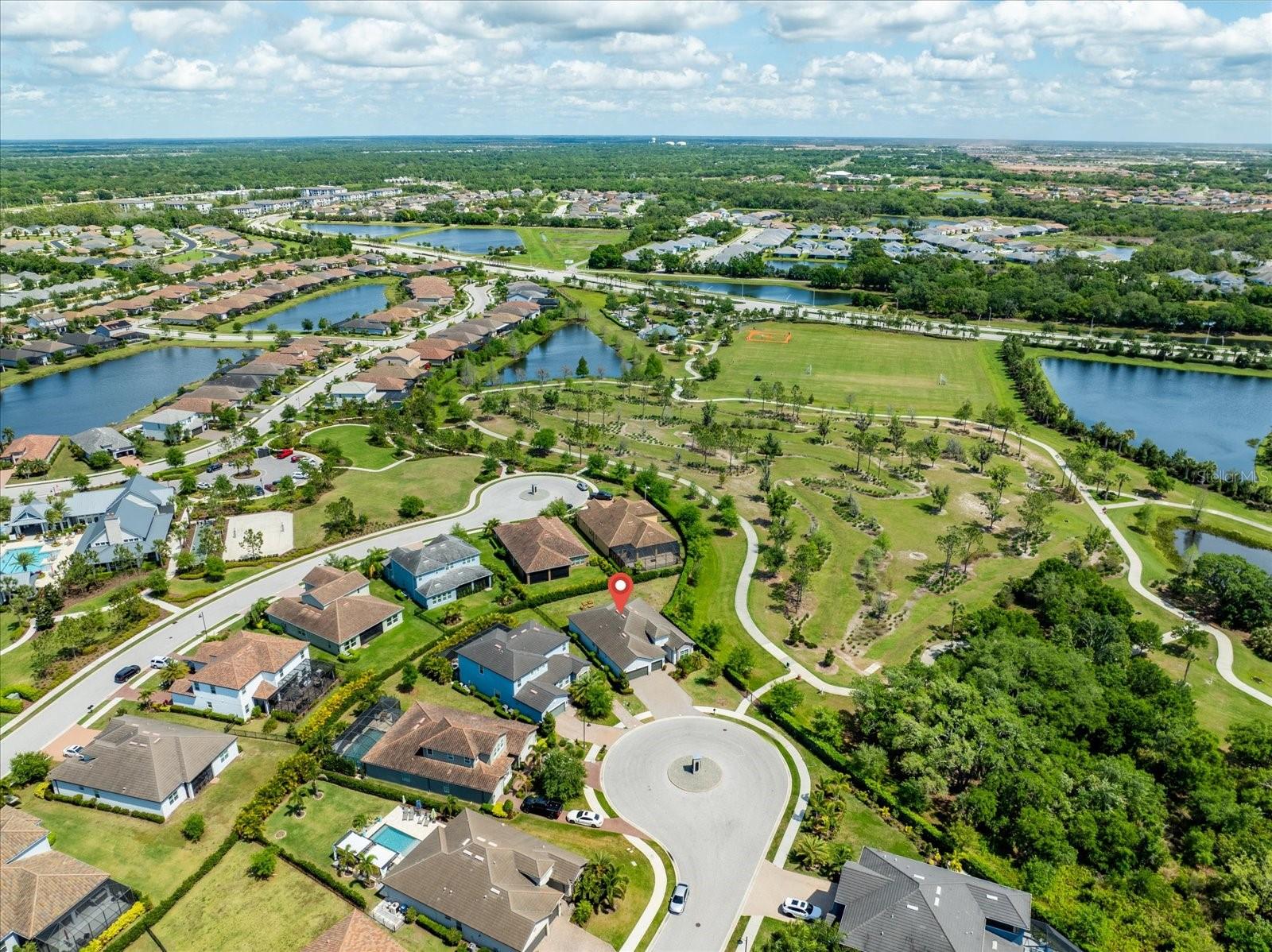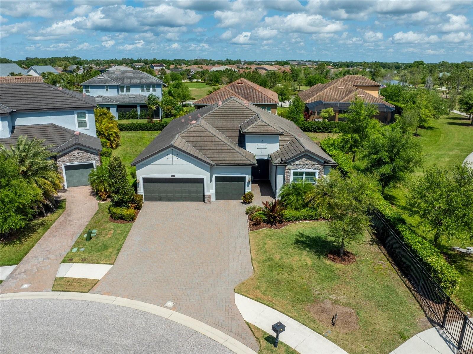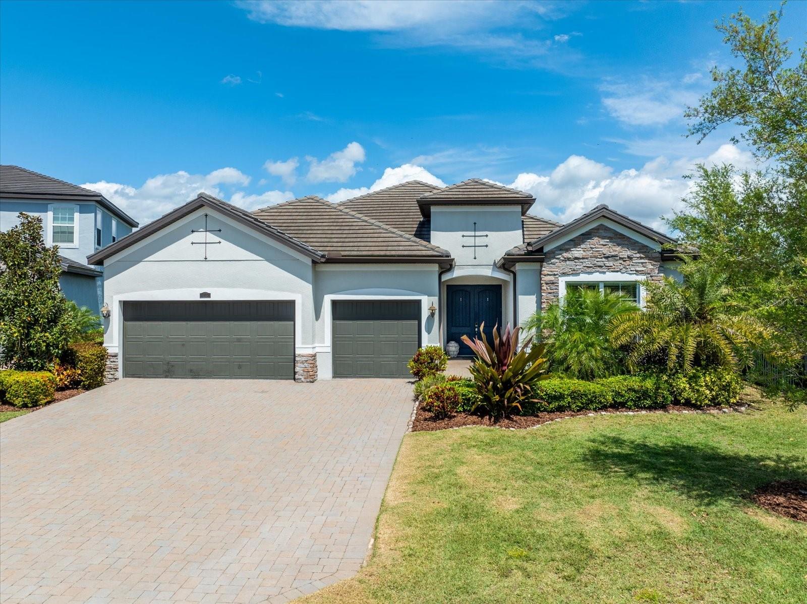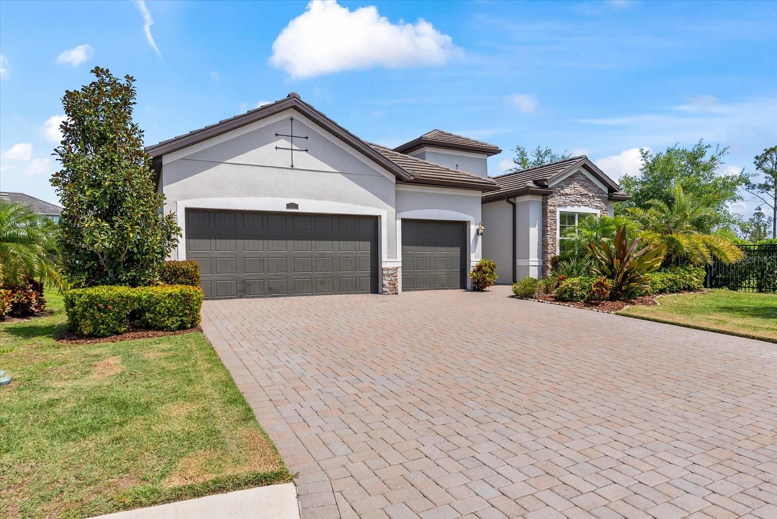 POPULAR SUMMERVILLE FLOORPLAN! 3 BED/ 3 BATH/ PLUS DEN AND 3 CAR GARAGE ON A CUL DE SAC WITH PARK!! OWNER FINANCE AVAILABLE! FRESHLY PAINTED INTERIOR AND ALL BRAND NEW LAMINATE WOOD FLOORING! DOUBLE front doors open to a wide entry foyer and a pleasant office with french doors for privacy. This SUMMERVILLE has an amazing OPEN floor plan with a bright kitchen/dining/family room combo. The 10 foot ceilings and 8 foot doors throughout create a modern and contemporary feel. The generous living area looks directly out to triple sliders with a view of the FULLY FENCED backyard. A crisp white kitchen with oversized granite island opens to a sunny and spacious dining room. The three-way split bedrooms all have their own bath for function and added privacy. The gourmet kitchen features lots of storage, 42 inch solid wood cabinets, neutral granite countertops and a walk in pantry. Stainless steel appliance package includes, built-in NATURAL GAS cooktop, microwave, and wall oven. The primary bedroom opens into double walk in closets with en suite bath, large shower, and a soaking tub. Structural features in this home also include 10 foot ceilings, 8 foot doors, 5 inch baseboards and crown molding. Primary bedroom and living room also have higher trayed ceilings. Living areas have low maintenance durable ceramic tile throughout. This home is light, bright and perfect for entertaining. Backyard has privacy hedge with ample room to build your new custom pool. This exceptional homesite is ideally located on a cul-de-sac directly next-door to BOB GARDNER PARK with a secured gate for direct resident access. Bob Gardner Park offerings include a soccer field, disc golf course, 2 playgrounds and both wet and dry dog parks. Additionally, Arbor Grande has exceptional amenities-a nicely appointed Clubhouse, state of the art fitness center, a heated zero entry, pool, bocce ball, and sand volleyball court. The on-site community manager, along with resident committees plan and maintain a robust monthly calendar of social events and recreational activities. Arbor Grande is situated in Lakewood Ranch, the #1 fastest selling multigeneration community in the country. Lakewood Ranch continues to grow with excellent schools, shopping, restaurants, and sporting facilities. Golf, tennis, and pickleball are just a few of the most popular sporting activities found here. This boutique sized community is comprised of just 183 single family homes and 122 villas. This charming enclave of homes boasts architectural detail along with varied color schemes. This golf cart friendly community has everything on your new home wish list! Your next destination is close to all of our world famous beaches, many area attractions, and amazing sunsets! Start packing, and don't forget your swimmers and sunnies!