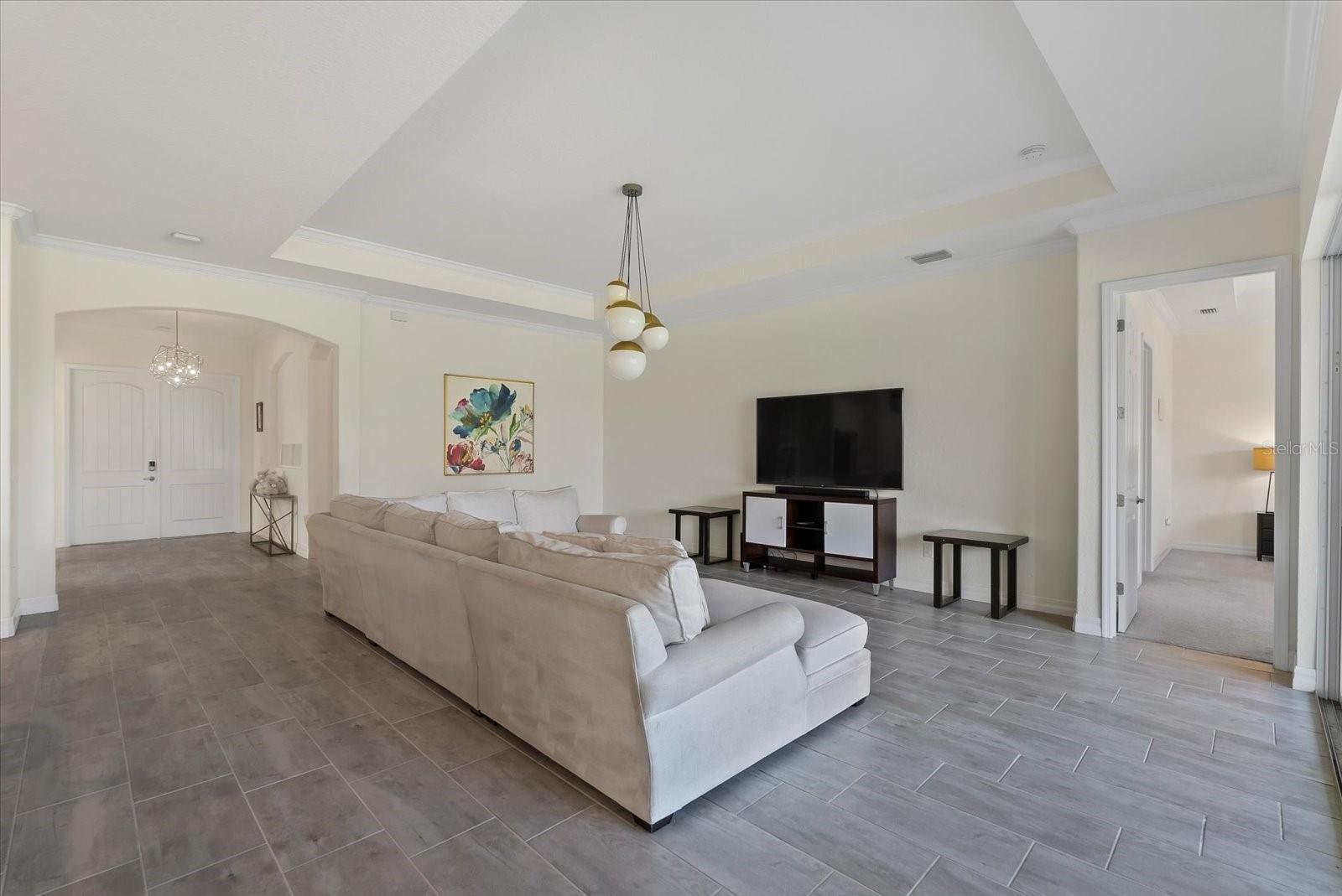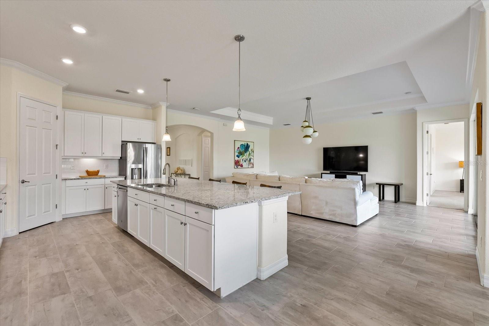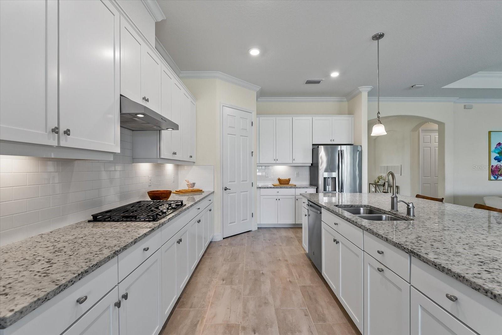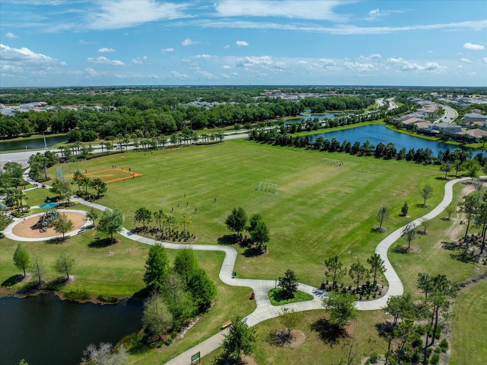 POPULAR SUMMERVILLE FLOORPLAN! 3 BED/ 3 BATH/ PLUS DEN AND 3 CAR GARAGE ON A CUL DE SAC WITH PARK!! OWNER FINANCE AVAILABLE! FRESHLY PAINTED INTERIOR AND ALL BRAND NEW LAMINATE WOOD FLOORING! DOUBLE front doors open to a wide entry foyer and a pleasant office with french doors for privacy. This SUMMERVILLE has an amazing OPEN floor plan with a bright kitchen/dining/family room combo. The 10 foot ceilings and 8 foot doors throughout create a modern and contemporary feel. The generous living area looks directly out to triple sliders with a view of the FULLY FENCED backyard. A crisp white kitchen with oversized granite island opens to a sunny and spacious dining room. The three-way split bedrooms all have their own bath for function and added privacy. The gourmet kitchen features lots of storage, 42 inch solid wood cabinets, neutral granite countertops and a walk in pantry. Stainless steel appliance package includes, built-in NATURAL GAS cooktop, microwave, and wall oven. The primary bedroom opens into double walk in closets with en suite bath, large shower, and a soaking tub. Structural features in this home also include 10 foot ceilings, 8 foot doors, 5 inch baseboards and crown molding. Primary bedroom and living room also have higher trayed ceilings. Living areas have low maintenance durable ceramic tile throughout. This home is light, bright and perfect for entertaining. Backyard has privacy hedge with ample room to build your new custom pool. This exceptional homesite is ideally located on a cul-de-sac directly next-door to BOB GARDNER PARK with a secured gate for direct resident access. Bob Gardner Park offerings include a soccer field, disc golf course, 2 playgrounds and both wet and dry dog parks. Additionally, Arbor Grande has exceptional amenities-a nicely appointed Clubhouse, state of the art fitness center, a heated zero entry, pool, bocce ball, and sand volleyball court. The on-site community manager, along with resident committees plan and maintain a robust monthly calendar of social events and recreational activities. Arbor Grande is situated in Lakewood Ranch, the #1 fastest selling multigeneration community in the country. Lakewood Ranch continues to grow with excellent schools, shopping, restaurants, and sporting facilities. Golf, tennis, and pickleball are just a few of the most popular sporting activities found here. This boutique sized community is comprised of just 183 single family homes and 122 villas. This charming enclave of homes boasts architectural detail along with varied color schemes. This golf cart friendly community has everything on your new home wish list! Your next destination is close to all of our world famous beaches, many area attractions, and amazing sunsets! Start packing, and don't forget your swimmers and sunnies!