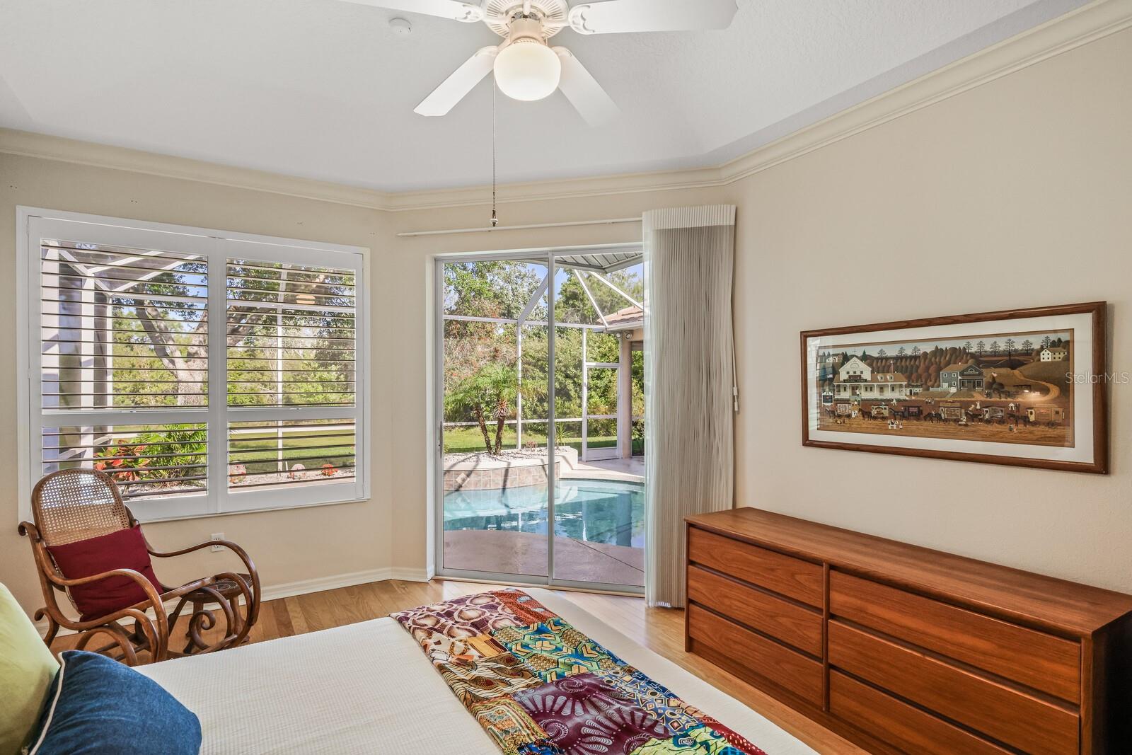 AMAZING OPPORTUNITY and EXCEPTIONAL VALUE! Now priced significantly lower than the most recent sales in Riverwalk Ridge, makes this home an incredible value with incredible potential and is the perfect canvas, ready for your personal touch and vision! Charming traditional Florida-style home offering a serene retreat with picturesque lake and preserve views. This home is in the heart of Lakewood Ranch in one of the first communities built featuring generous size lots, barrel-tile roofs and with close proximity to LWR amenities. Boasting 3 bedrooms and 3 full bathrooms, this Lee Wetherington-built gem features an open floor plan with split bedrooms, perfect for both privacy and togetherness. The open floor plan seamlessly blends the living areas, creating a perfect space for hosting gatherings and showcasing picturesque views from nearly every room. A den and bonus room provide additional spaces for working, crafting, or enjoying quiet moments. Hardwood floors grace the bedrooms, while tile floors flow elegantly throughout the living areas. Crown molding and plantation shutters add a touch of timeless elegance. The spacious kitchen features a breakfast bar, closet pantry, alcove area with desk and extra cabinets, and all appliances were replaced in 2017 for a modern touch. The adjoining eating area features an aquarium window overlooking the tranquil lanai with pool, creating the perfect backdrop for your morning coffee or evening meal. The primary suite is a peaceful retreat, featuring a slider with direct access to screened lanai, walk-in closets, and bath with walk-in shower and soaking tub. Outside is an oasis of tranquility offering serene lake and nature views and pool with a sun deck and water feature and is ideal for relaxing or entertaining friends. Perks include the lowest HOA fees ($92 annually) in Lakewood Ranch, pavers installed on driveway (2021) and transfer switch for portable generator installed in 2023. Additional upgrades include PGT wind-resistant sliding doors in family room (2015), tankless water heater, surge protector, and security system. The prime location places you at the heart of it all with easy access to parks, walking trails, and Lakewood Ranch Main Street a vibrant hub of shopping, dining, and entertainment. You are also near the hospital, UTC Mall, the future Mote Aquarium, and the new town center at Waterside. Don’t miss this opportunity to own a piece of paradise and live the Florida lifestyle in the number one best-selling, master-planned community in the nation.
